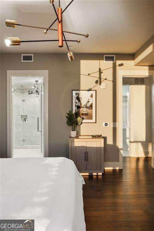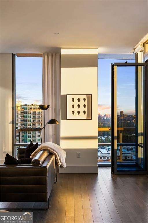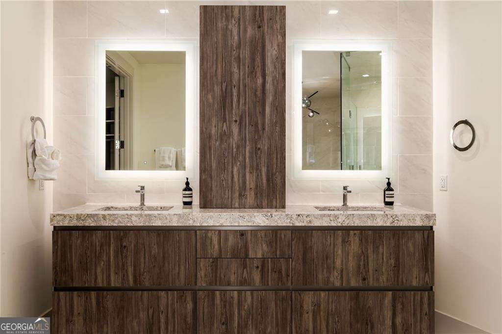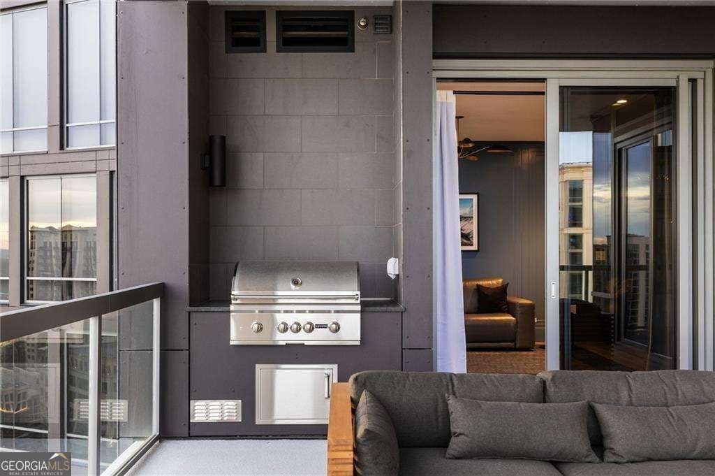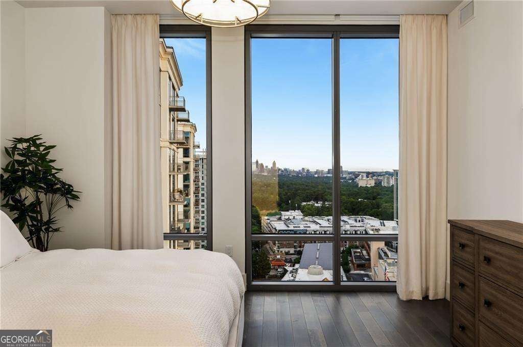 Welcome to The Charles, Buckhead's premier boutique high-rise, where sophistication meets modern luxury. This exceptional condo redefines opulent living with its two bedrooms plus a versatile den, ideal for a home office or flex space. Enjoy the luxury of parking for FOUR vehicles, breathtaking unobstructed south-facing downtown views, soaring 10' ceilings, and beautiful oak hardwood flooring throughout. From the moment you step inside, you're greeted by designer lighting fixtures that illuminate the meticulously designed interiors. Custom window treatments, including elegant draperies and automated shades, offer effortless control over natural light and privacy. The gourmet kitchen is a culinary masterpiece featuring waterfall countertops, a stunning stone slab backsplash, and sleek flat paneled cabinetry. Elevate your cooking experience with an integrated professional appliance package, including a dual-zoned wine tower. Entertain with flair at the wet bar, equipped with an additional dual-zoned wine tower and beverage refrigerator. Experience seamless indoor-outdoor living with nano accordion-folding doors that open to an oversized covered corner terrace. This space is perfect for dining or relaxation, complete with a built-in grill and breathtaking views. The owner's suite is a tranquil retreat, boasting a spa-inspired marble-clad bathroom with a frameless glass walk-in shower and a freestanding soaking tub. A custom floating vanity with a storage tower and a large walk-in custom closet add to the suite's luxurious ambiance. Guests will enjoy a spacious suite with a beautifully designed bathroom, custom vanity, and frameless glass walk-in shower. Living at The Charles offers unparalleled convenience with valet parking and 24-hour concierge services. The state-of-the-art amenity level includes a large fitness studio, club room with a catering kitchen, dog park, and secured bike storage. A hotel-quality guest suite is available for out-of-town visitors. Don't miss the rare opportunity to own a piece of Buckhead's most exclusive high-rise. Experience the pinnacle of luxury living, located in the heart of Atlanta's premier shopping and dining district. Indulge in the epitome of high-rise elegance and make this luxurious residence your new home.