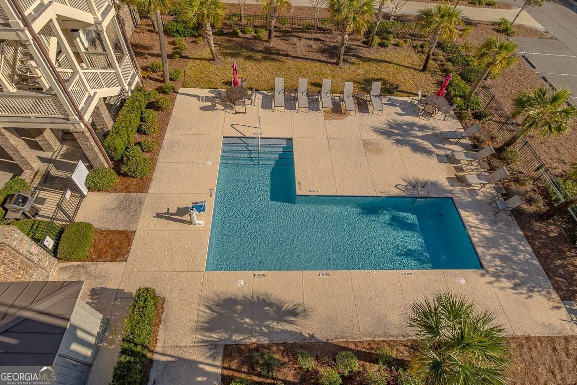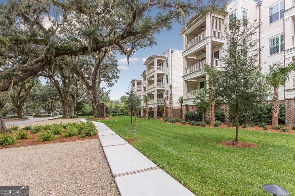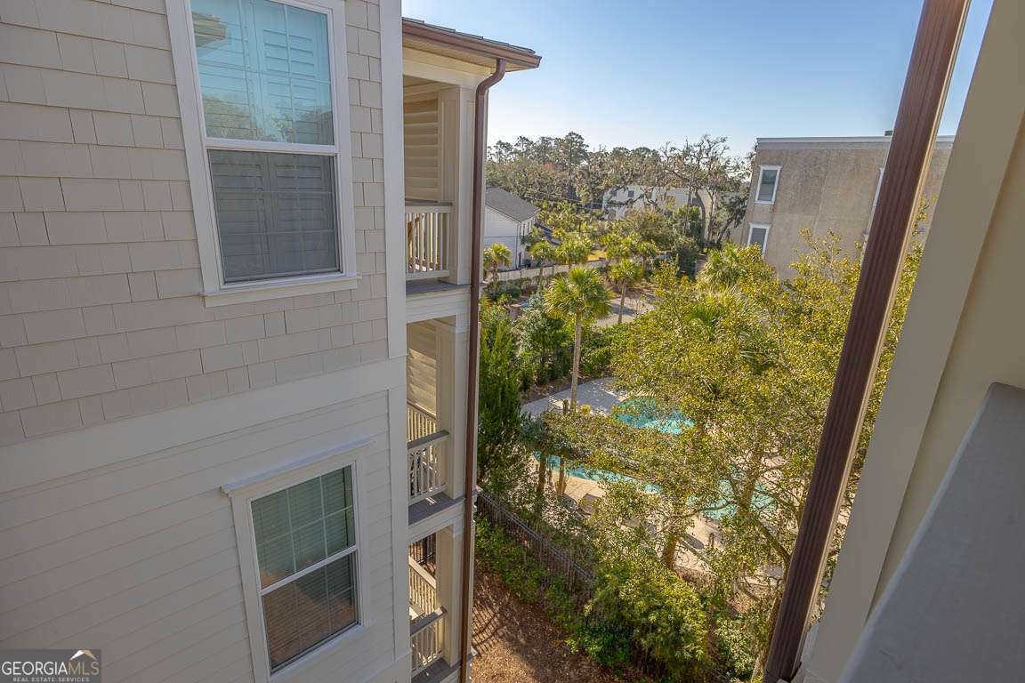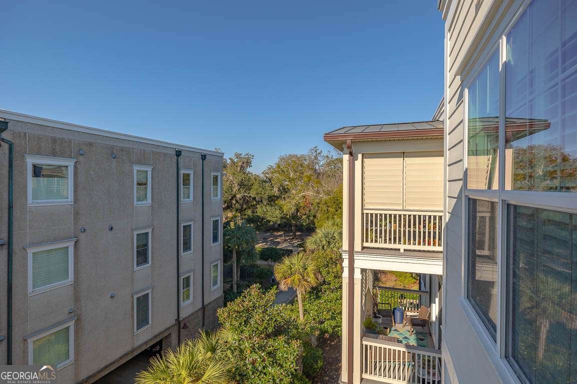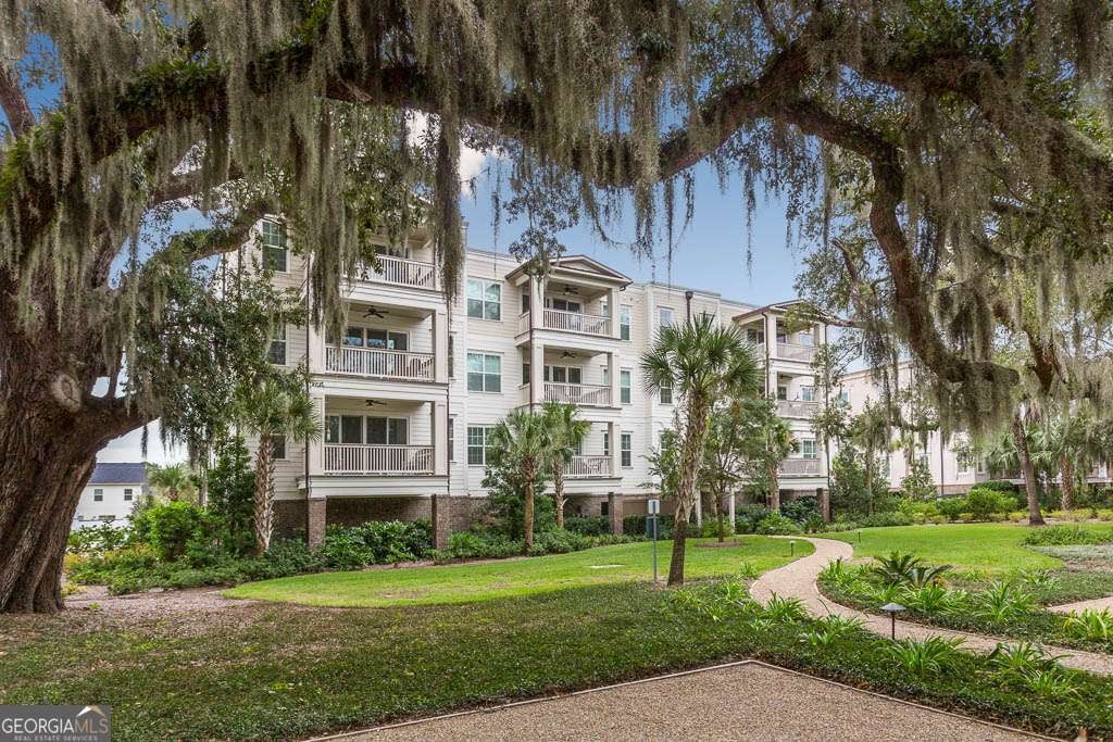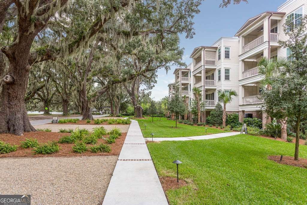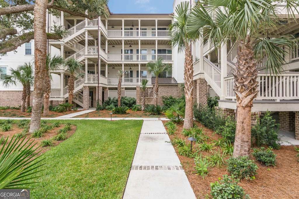 This beautifully furnished 3-bedroom, 2-bath luxury villa is located in a highly desirable gated community, offering both comfort and privacy. Situated on the top floor, this home features an open floor plan with hardwood floors and plantation shutters throughout, providing a stylish and inviting atmosphere. The spacious primary bedroom boasts an ensuite bathroom with dual vanities and a large, tiled shower for a touch of elegance. The gourmet kitchen is perfect for entertaining, equipped with an island that includes a breakfast bar, a wet bar, and upgraded KitchenAid appliances, including a dual-fuel commercial-style range, all complemented by sleek quartz countertops. A convenient laundry room with a laundry sink and ample cabinet storage adds to the home's functionality. The main living area showcases coffered ceilings, enhancing the space's character and charm. Step outside onto your private balcony and enjoy peaceful views. The complex offers exceptional amenities, including a lovely courtyard, two pools, and gas grills for outdoor relaxation. Additional perks include assigned covered parking, a personal storage closet, and an excellent location on south St. Simons Island.