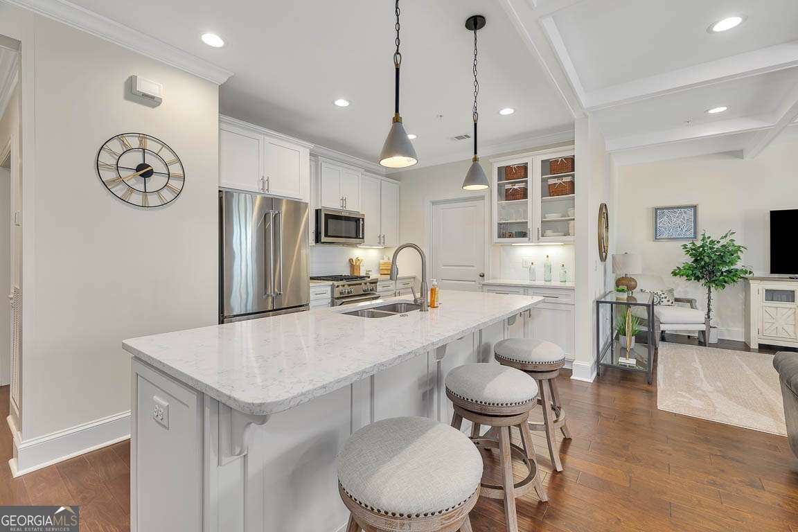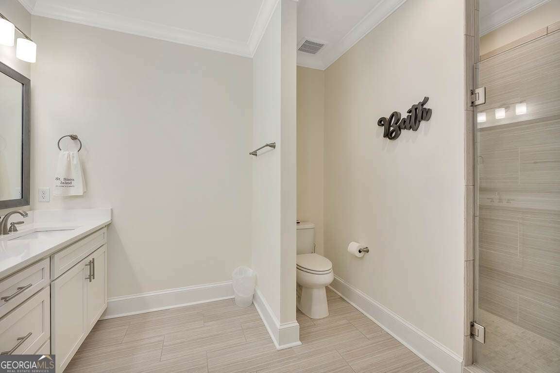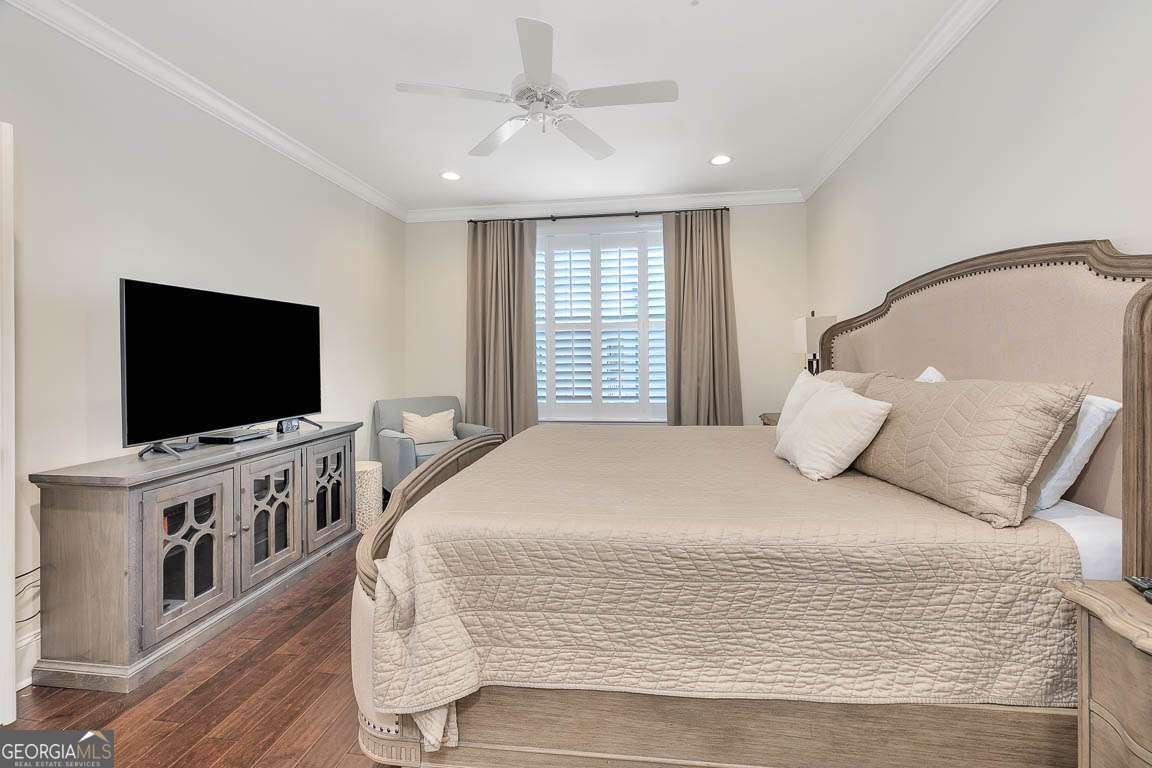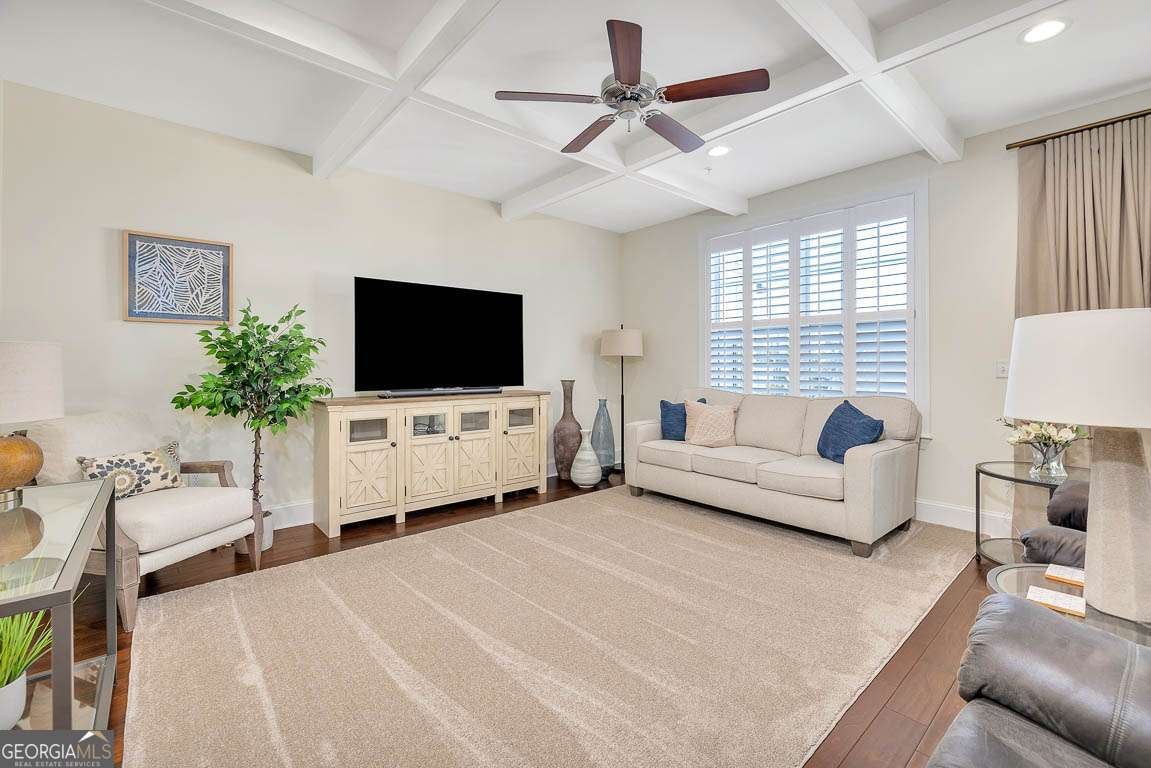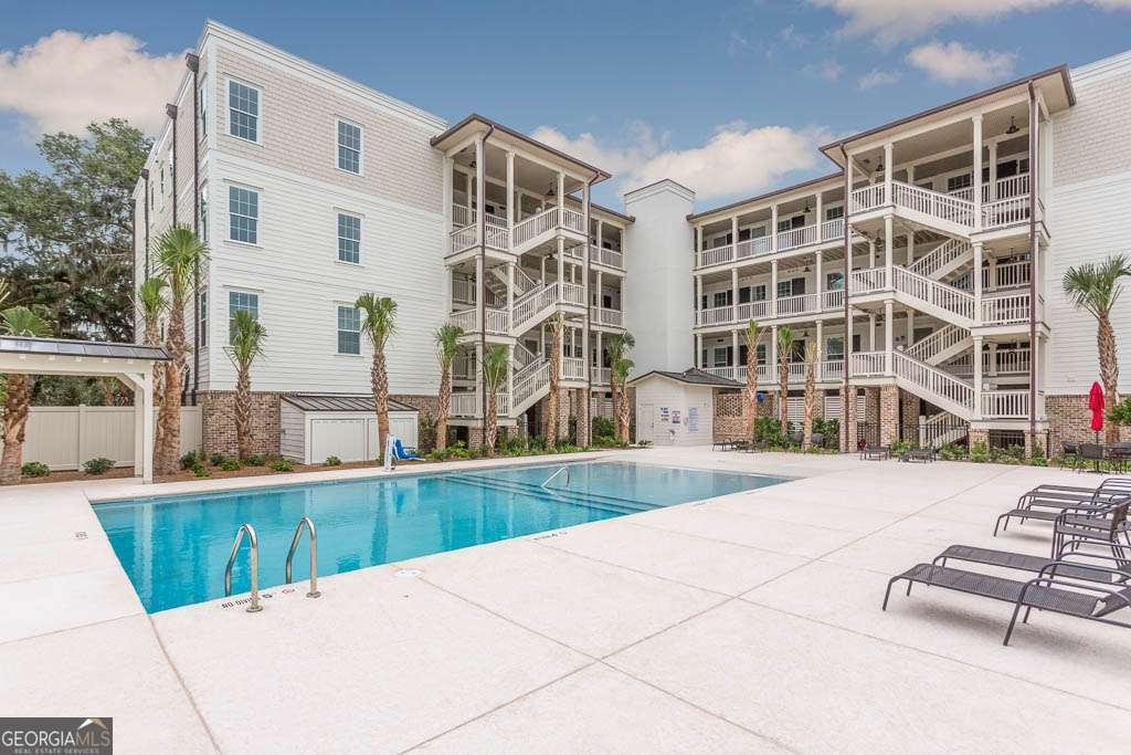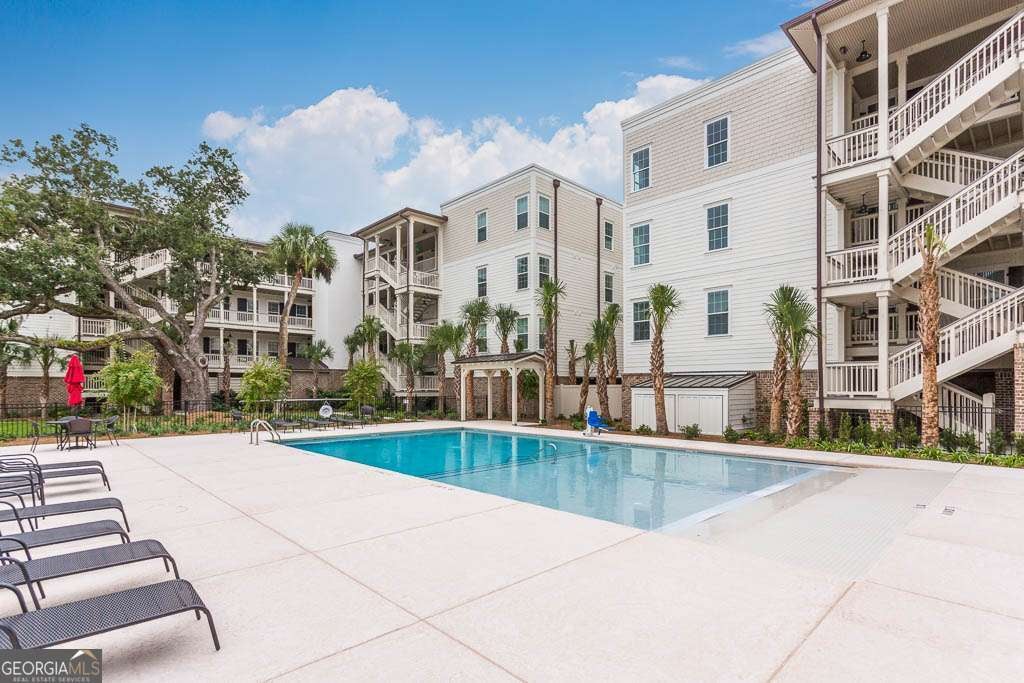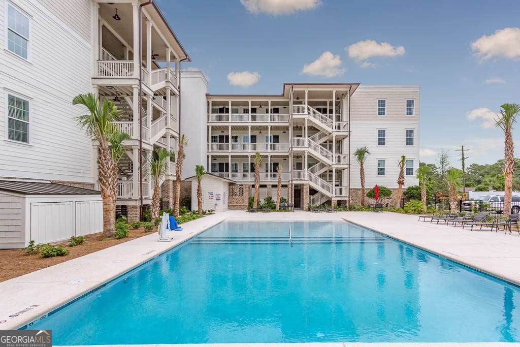 This beautifully furnished 3-bedroom, 2-bath luxury villa is located in a highly desirable gated community, offering both comfort and privacy. Situated on the top floor, this home features an open floor plan with hardwood floors and plantation shutters throughout, providing a stylish and inviting atmosphere. The spacious primary bedroom boasts an ensuite bathroom with dual vanities and a large, tiled shower for a touch of elegance. The gourmet kitchen is perfect for entertaining, equipped with an island that includes a breakfast bar, a wet bar, and upgraded KitchenAid appliances, including a dual-fuel commercial-style range, all complemented by sleek quartz countertops. A convenient laundry room with a laundry sink and ample cabinet storage adds to the home's functionality. The main living area showcases coffered ceilings, enhancing the space's character and charm. Step outside onto your private balcony and enjoy peaceful views. The complex offers exceptional amenities, including a lovely courtyard, two pools, and gas grills for outdoor relaxation. Additional perks include assigned covered parking, a personal storage closet, and an excellent location on south St. Simons Island.