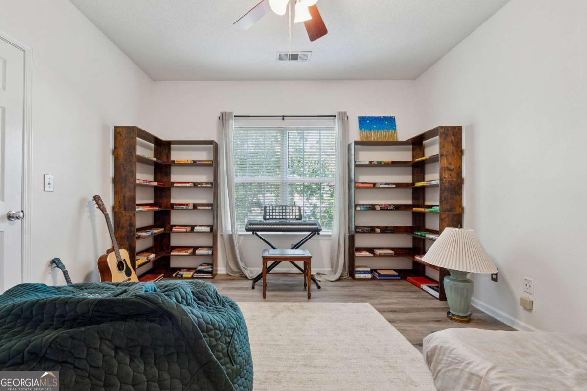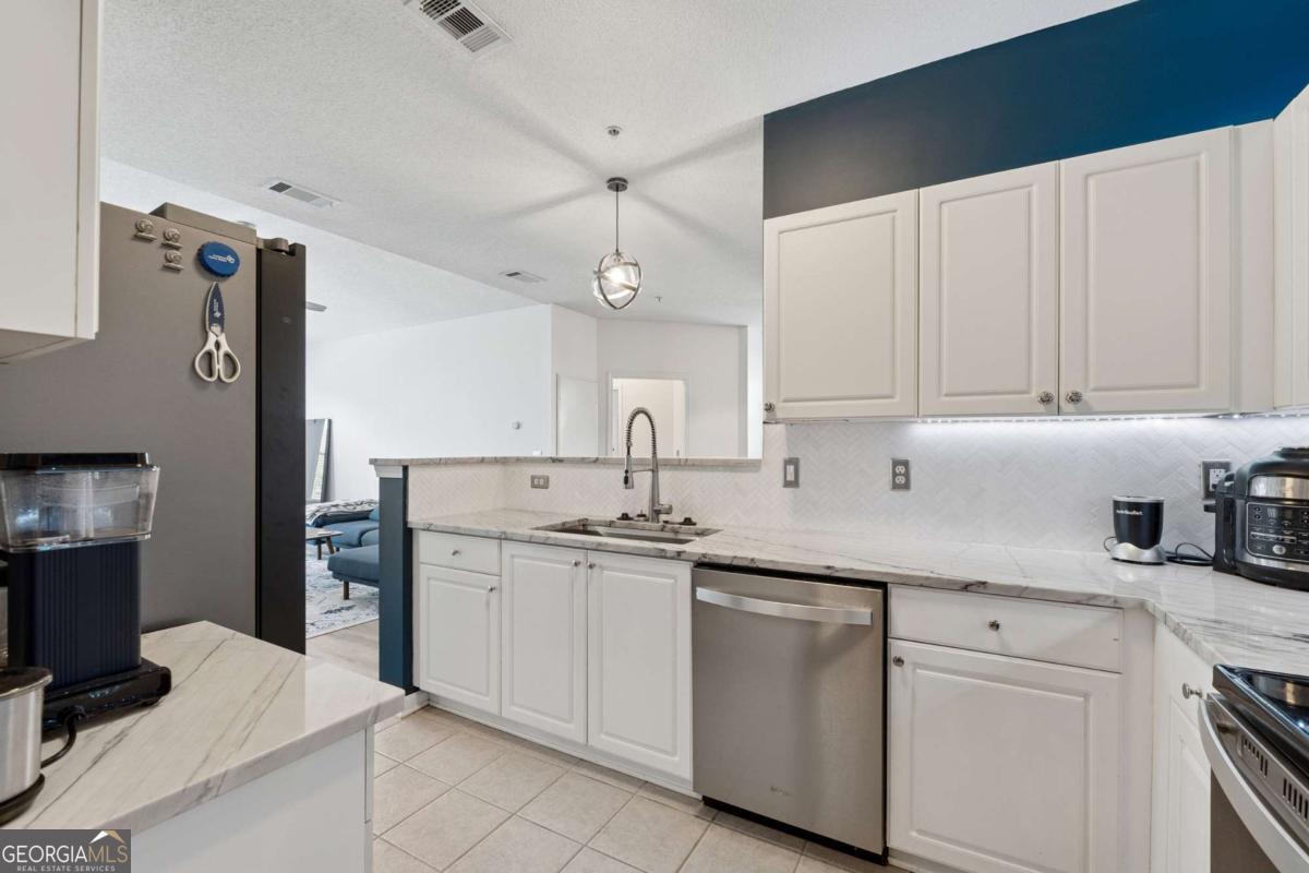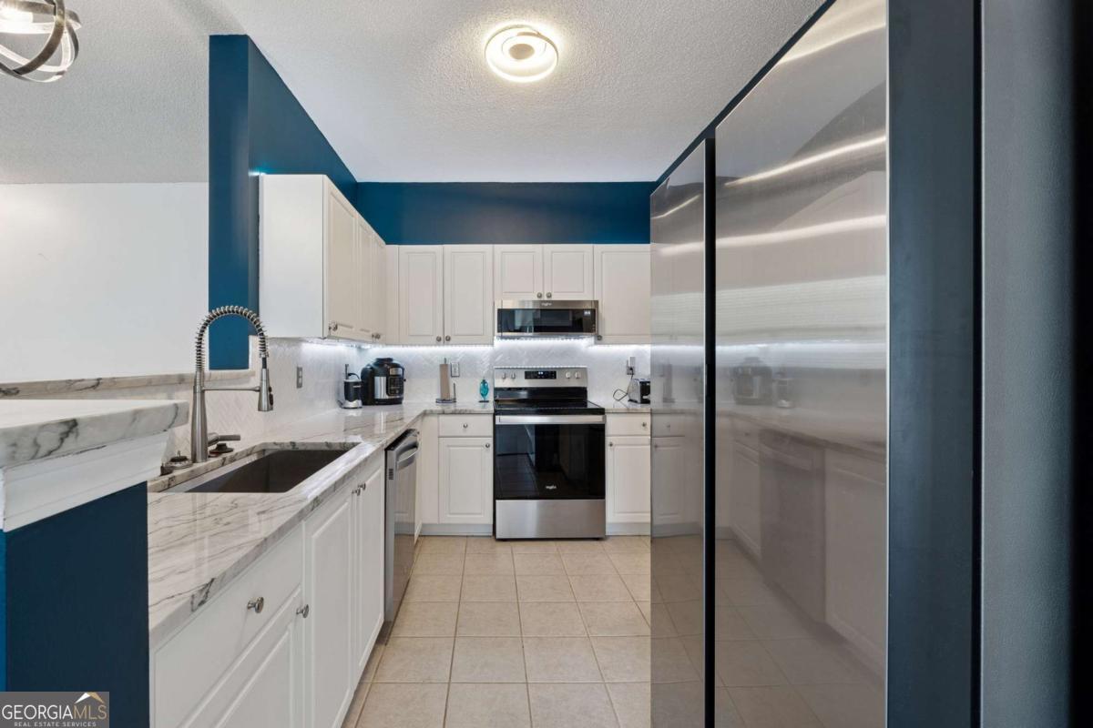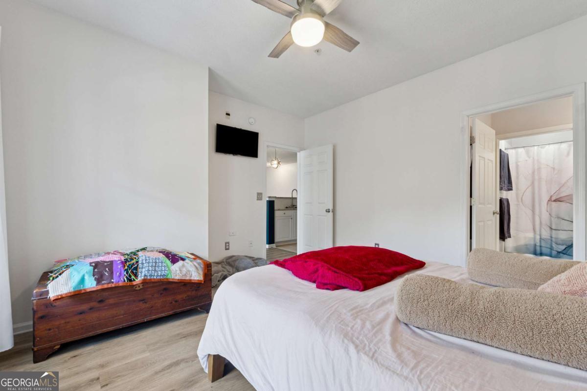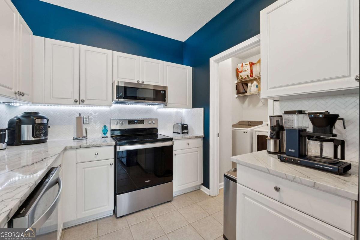 Welcome to your DREAM home nestled in the serene, gated Woodlands At Webb Bridge community. This beautifully updated condo sits in an unbeatable location, just steps from DOWNTOWN Alpharetta and AVALON. Enjoy upscale living at an affordable price in one of North Fulton's most sought-after neighborhoods! Thoughtful split-bedroom floor plan ensures privacy, with a PRIMARY suite featuring custom walk-in closets and romantic French doors opening to a private balcony. Newly installed hardwood-like floors, quartzite countertops, stylish backsplash, and stainless steel appliances create a sophisticated and inviting atmosphere. A NEWER HVAC unit and roof add peace of mind. The fireside family room flows seamlessly into an open-concept dining area and a sleek white kitchen with a breakfast bar, perfect for entertaining guests or COZY nights in. Savor morning coffee on the covered front porch or unwind on the PRIVATE balcony with tranquil wooded views. Additional storage off the patio keeps things organized. Enjoy GATED security, a clubhouse, sparkling pool, and pet-friendly walking paths, including a charming trail to Avalon. Perfect for those who love both city vibrancy and outdoor escapes. Includes a 1-car GARAGE, driveway, and ample unassigned parking spaces nearby for guests or roommates. Located just minutes from Avalon's upscale shopping, dining, and entertainment, and a short stroll to Downtown Alpharetta's vibrant farmer's market, concerts, and Alpha Loop trails, this condo offers the best of both worlds. Explore the nearby Greenway Trail for biking or hiking, or enjoy the quiet charm of this gated community with serene, wooded surroundings. With EASY access to GA-400, you're perfectly positioned for work or play. This meticulously maintained condo is move-in ready, offering affordable luxury with modern upgrades and low-maintenance living. Ideal for professionals, small families, or roommates, it's a rare opportunity to own in a prime Alpharetta location. Don't miss your chance to experience the perfect balance of urban excitement and suburban tranquility!