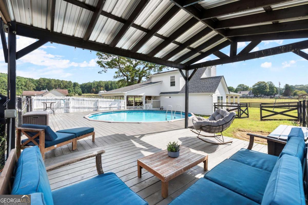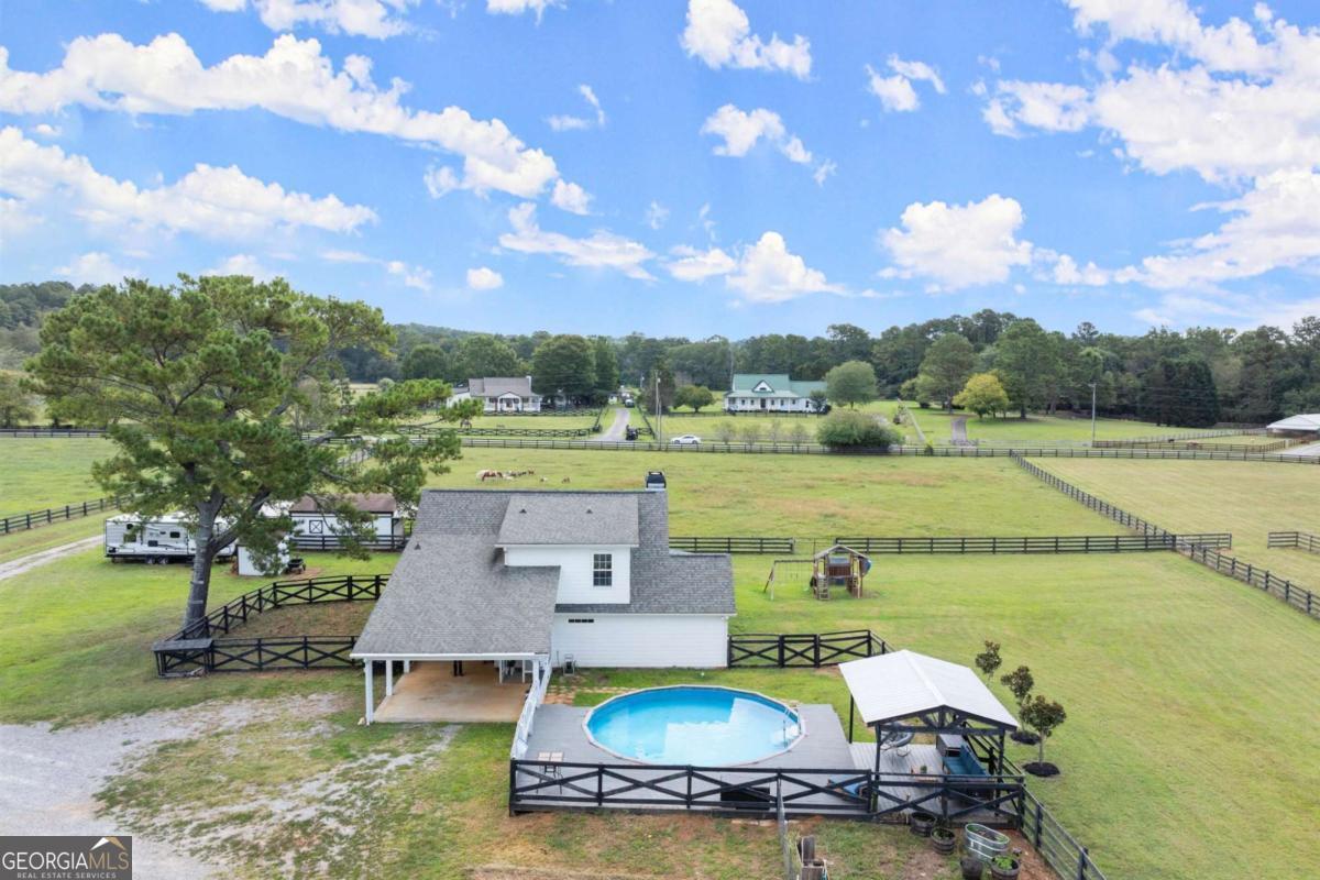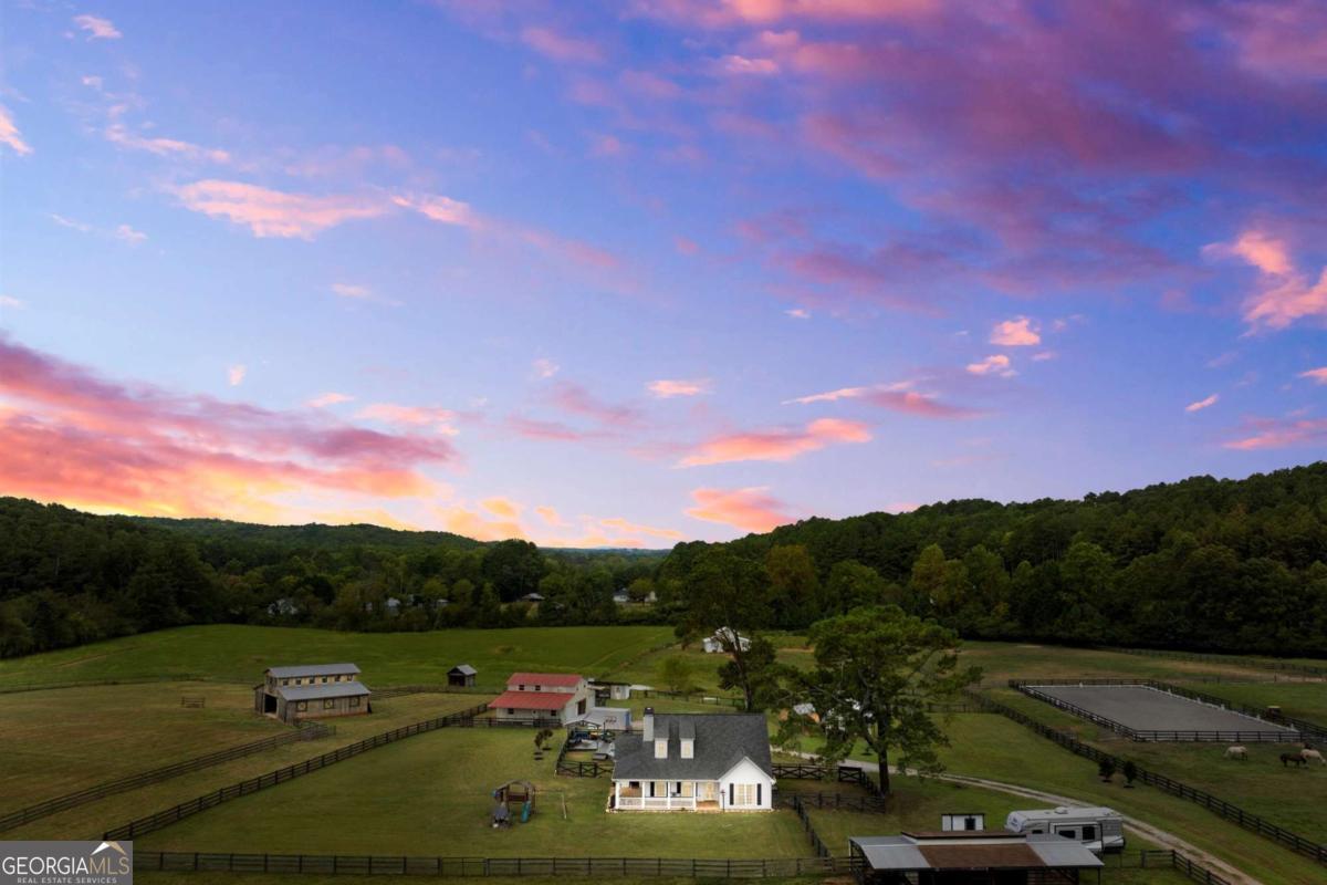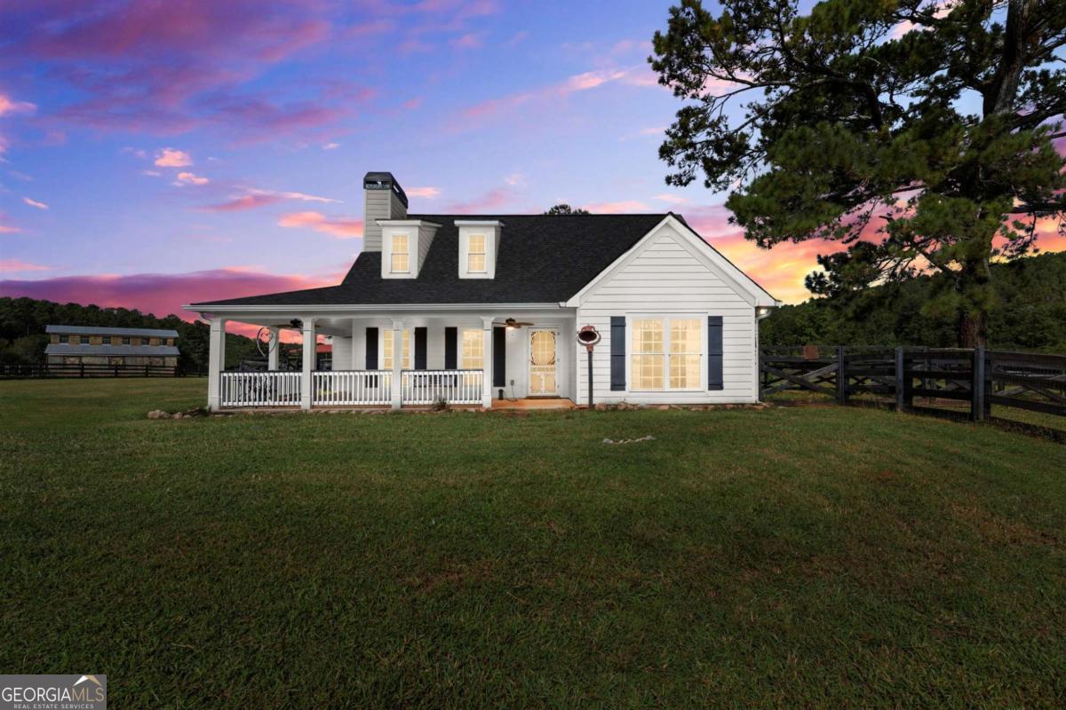 Set on 5.7 acres, this fully fenced estate is a dream for equestrians or those seeking a bit of space and freedom. The custom-built modern farmhouse features a chef's kitchen with granite countertops, stainless steel farm sink, and bar nook. The interior has been freshly painted in soft neutral tones, creating a bright and inviting atmosphere. The main-level primary suite offers a spa-like ensuite with a newly renovated shower and a walk-in closet. Upstairs, two additional bedrooms share a full bath. GUEST COTTAGE: 23' 5"x17' 6" with a loft bedroom, and full bath provides additional living space, a great space to have guests stay or make it your work-from-home office retreat! The main barn includes a RENOVATED LOFT APARTMENT 29' 2" x 19' 4", a separate laundry room, and garage space currently used as storage. A separate, pinterest perfect, white 2-stall barn, arena, run-in shelter, and chicken coop complete the farm amenities. There's also plenty of room for RV parking! The outdoor space is perfect for both relaxation and entertaining, with a pool area surrounded by Trex decking and a cabana, all overlooking the pastures. No HOA and located on a quiet, upscale street, this property offers both privacy and luxury. Schedule a tour of Painted Sky Farm today!