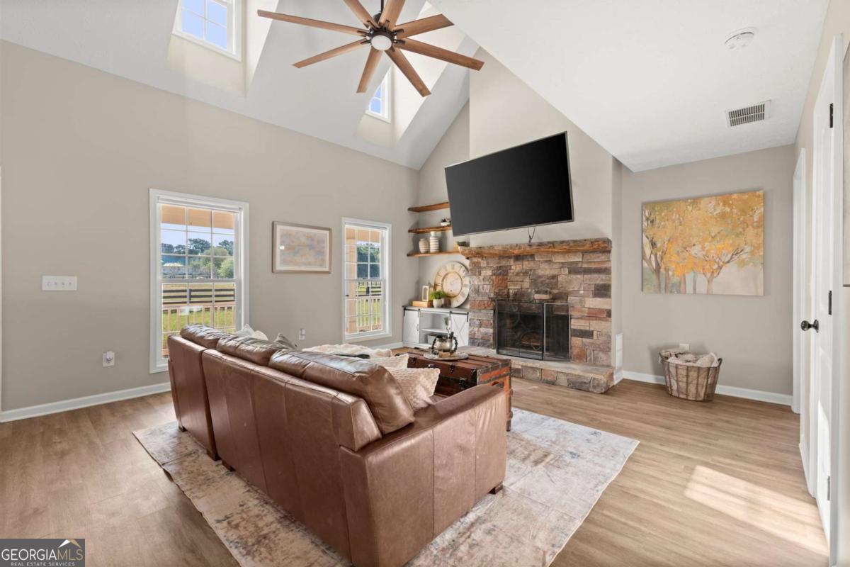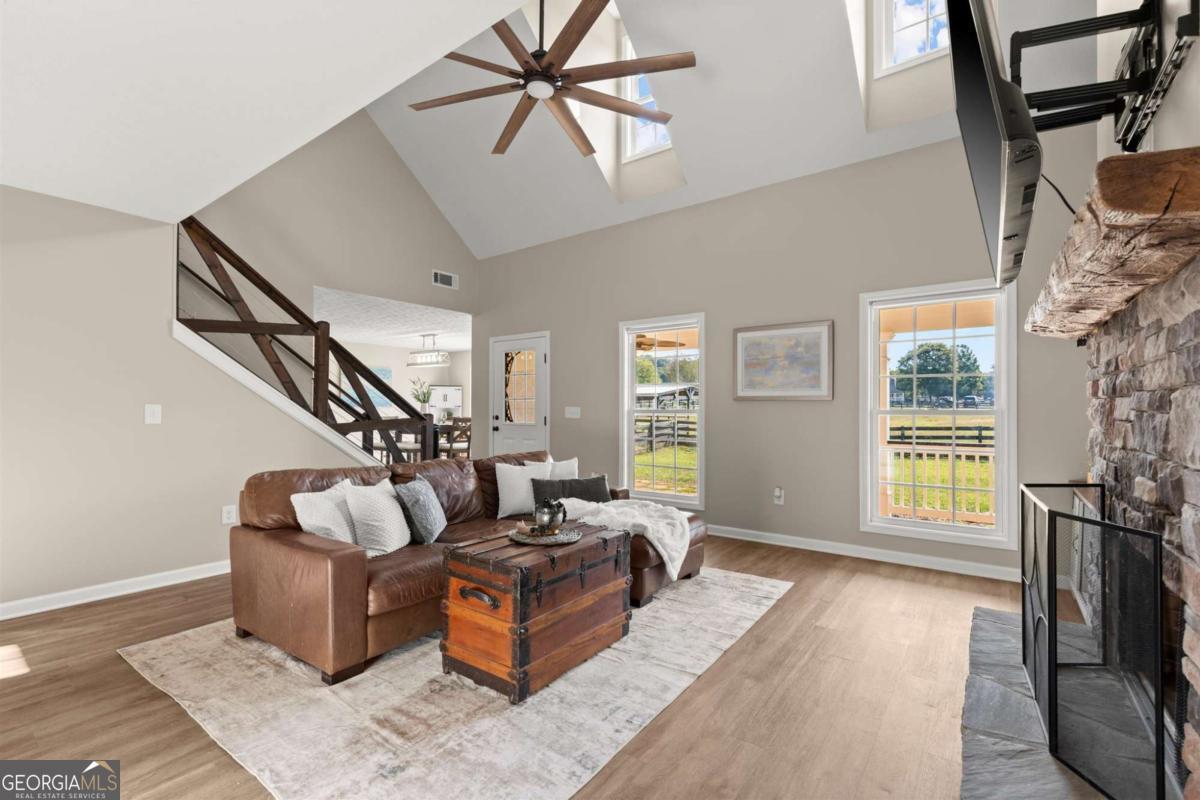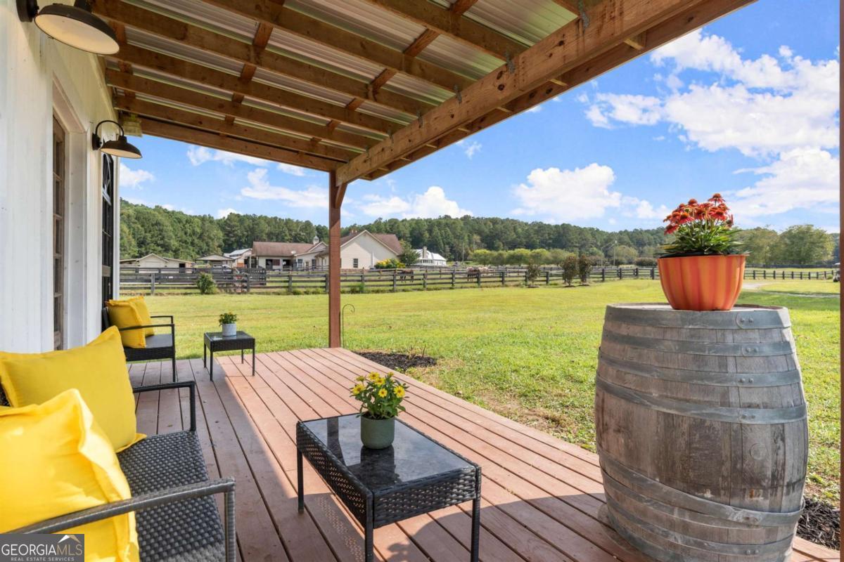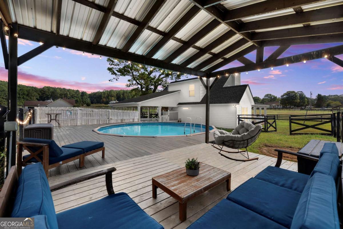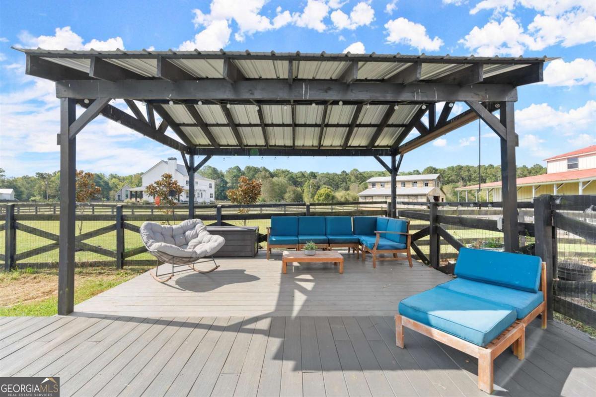 Set on 5.7 acres, this fully fenced estate is a dream for equestrians or those seeking a bit of space and freedom. The custom-built modern farmhouse features a chef's kitchen with granite countertops, stainless steel farm sink, and bar nook. The interior has been freshly painted in soft neutral tones, creating a bright and inviting atmosphere. The main-level primary suite offers a spa-like ensuite with a newly renovated shower and a walk-in closet. Upstairs, two additional bedrooms share a full bath. GUEST COTTAGE: 23' 5"x17' 6" with a loft bedroom, and full bath provides additional living space, a great space to have guests stay or make it your work-from-home office retreat! The main barn includes a RENOVATED LOFT APARTMENT 29' 2" x 19' 4", a separate laundry room, and garage space currently used as storage. A separate, pinterest perfect, white 2-stall barn, arena, run-in shelter, and chicken coop complete the farm amenities. There's also plenty of room for RV parking! The outdoor space is perfect for both relaxation and entertaining, with a pool area surrounded by Trex decking and a cabana, all overlooking the pastures. No HOA and located on a quiet, upscale street, this property offers both privacy and luxury. Schedule a tour of Painted Sky Farm today!
