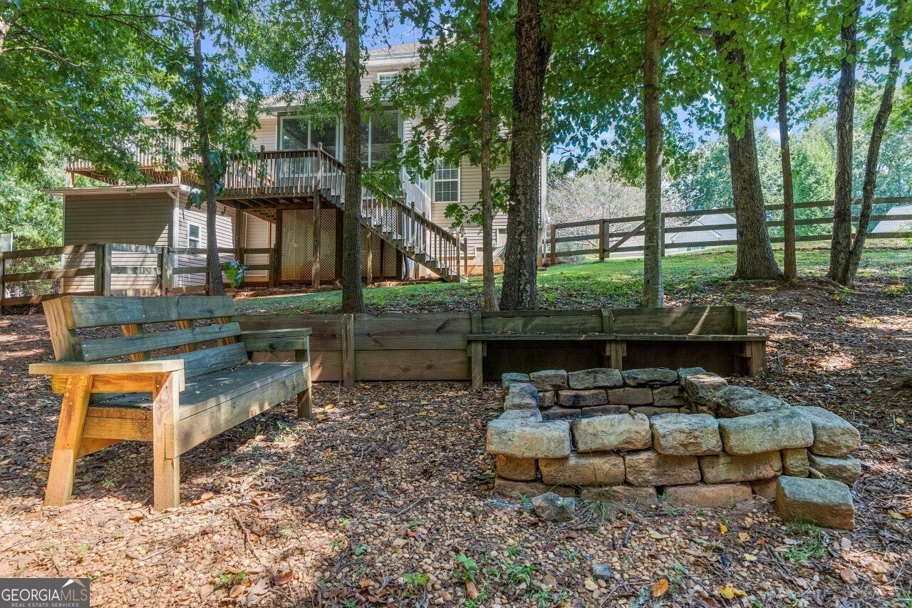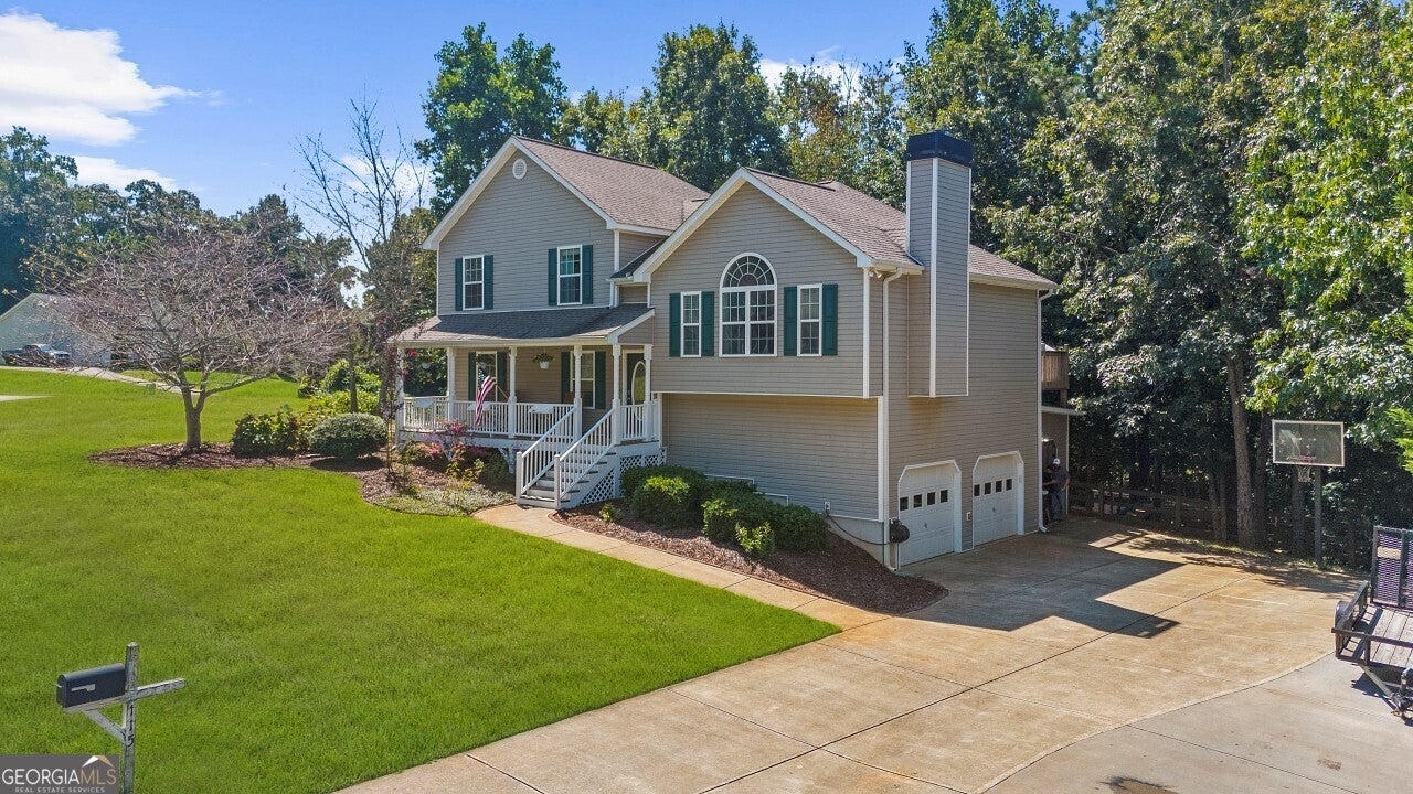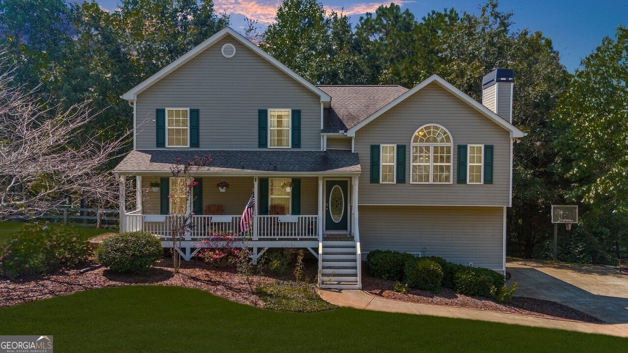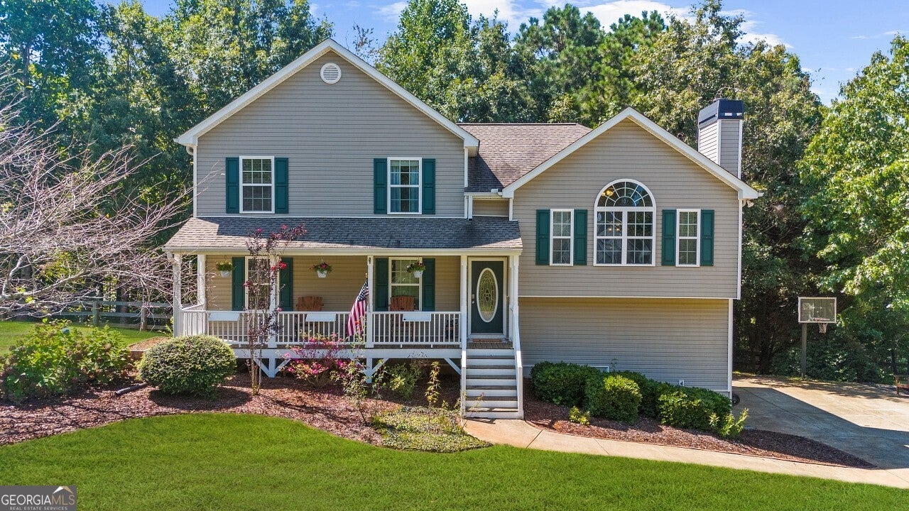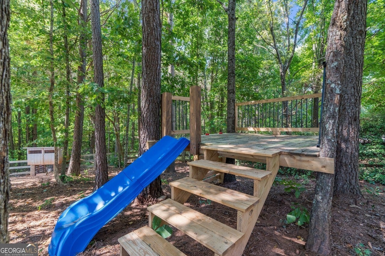 Welcome to this well-maintained 4 bedroom, 3 full bath tri-level home in the desirable Creekview High School district. Tucked into a no-HOA community, this property offers both comfort and freedom with unique features you won't find elsewhere. Freshly painted with brand-new carpet, this home is move-in ready and full of character. Inside, multiple living areas provide flexibility for entertaining or relaxing, while the sunroom brings in abundant natural light year-round. The garage has been thoughtfully designed to include a dedicated man cave and workshop, perfect for hobbies, projects, or extra storage needs. Outside, the home sits on a generous lot with lifestyle amenities for all ages. Enjoy evenings by the fire pit, let kids explore the custom playground, or embrace the homestead life with a ready-to-use chicken coop. Ample storage throughout the property ensures everything has its place. Minutes from I-575 and all that downtown Ball Ground has to offer.