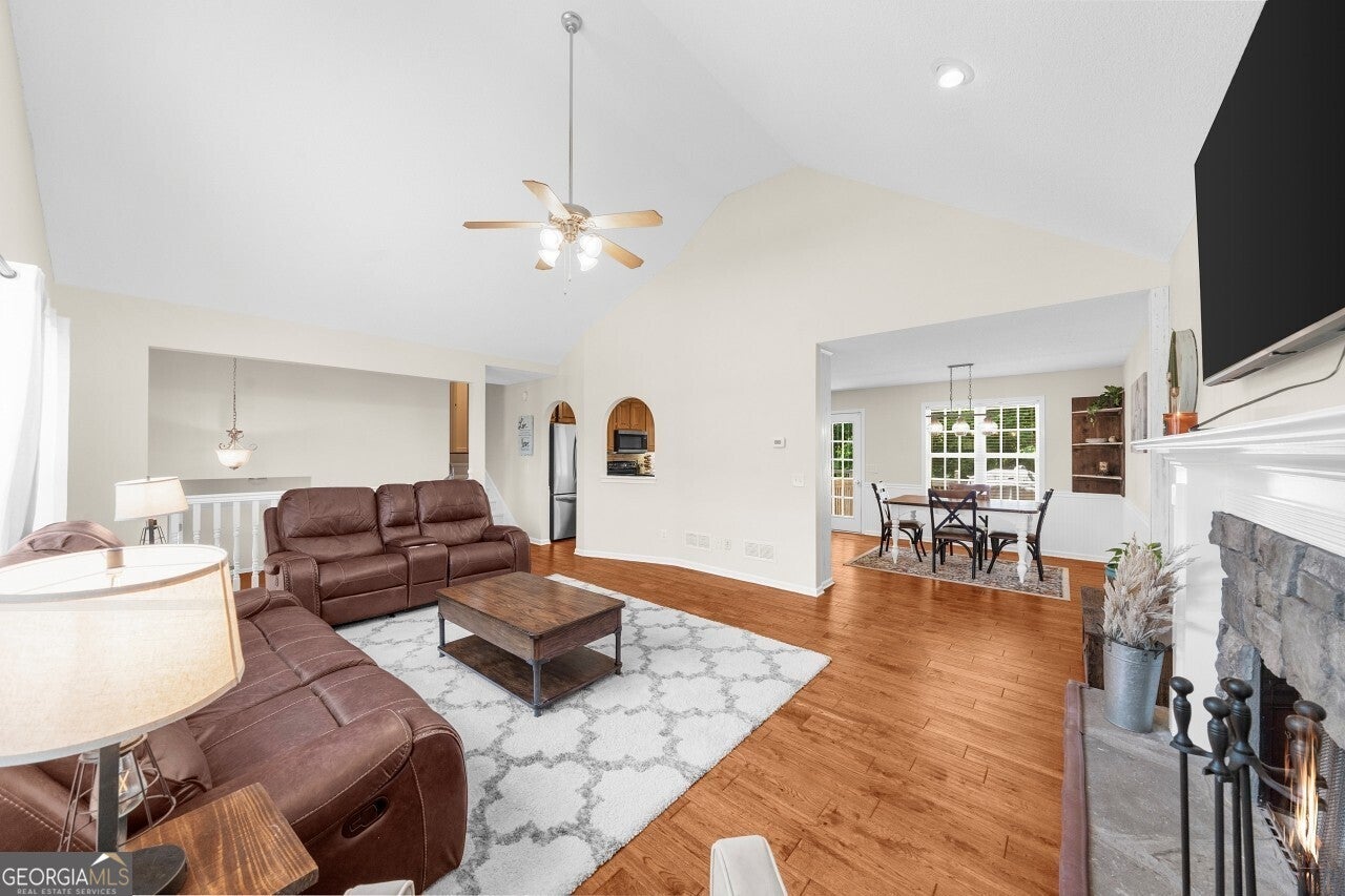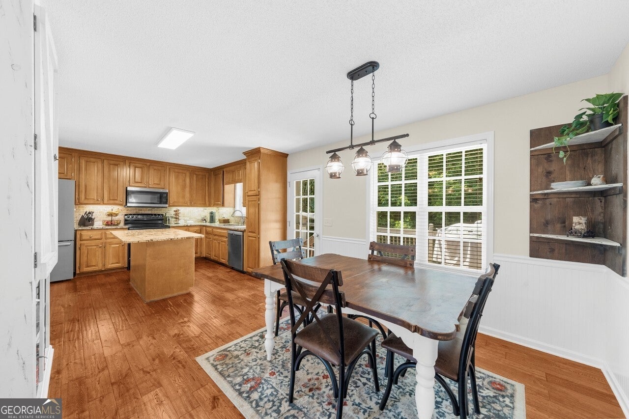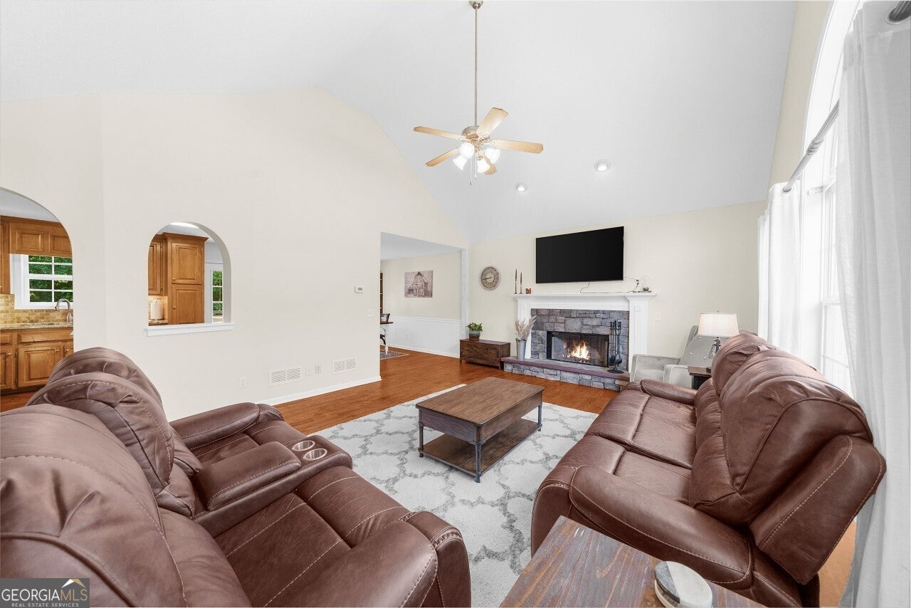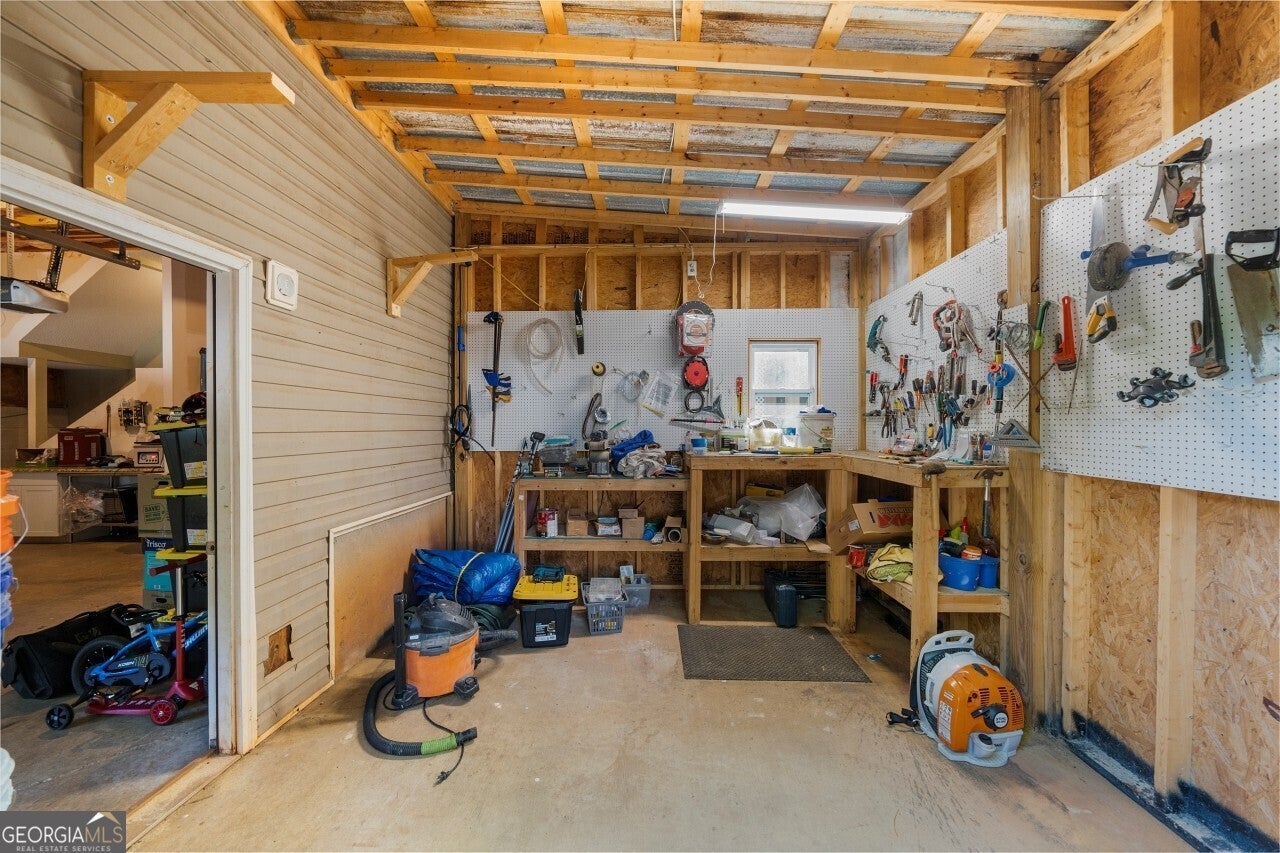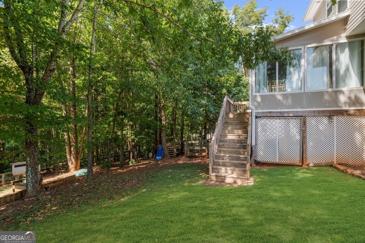 Welcome to this well-maintained 4 bedroom, 3 full bath tri-level home in the desirable Creekview High School district. Tucked into a no-HOA community, this property offers both comfort and freedom with unique features you won't find elsewhere. Freshly painted with brand-new carpet, this home is move-in ready and full of character. Inside, multiple living areas provide flexibility for entertaining or relaxing, while the sunroom brings in abundant natural light year-round. The garage has been thoughtfully designed to include a dedicated man cave and workshop, perfect for hobbies, projects, or extra storage needs. Outside, the home sits on a generous lot with lifestyle amenities for all ages. Enjoy evenings by the fire pit, let kids explore the custom playground, or embrace the homestead life with a ready-to-use chicken coop. Ample storage throughout the property ensures everything has its place. Minutes from I-575 and all that downtown Ball Ground has to offer.
