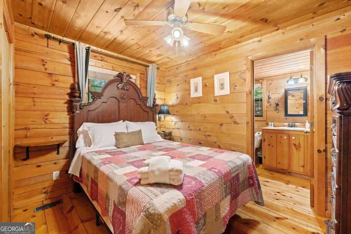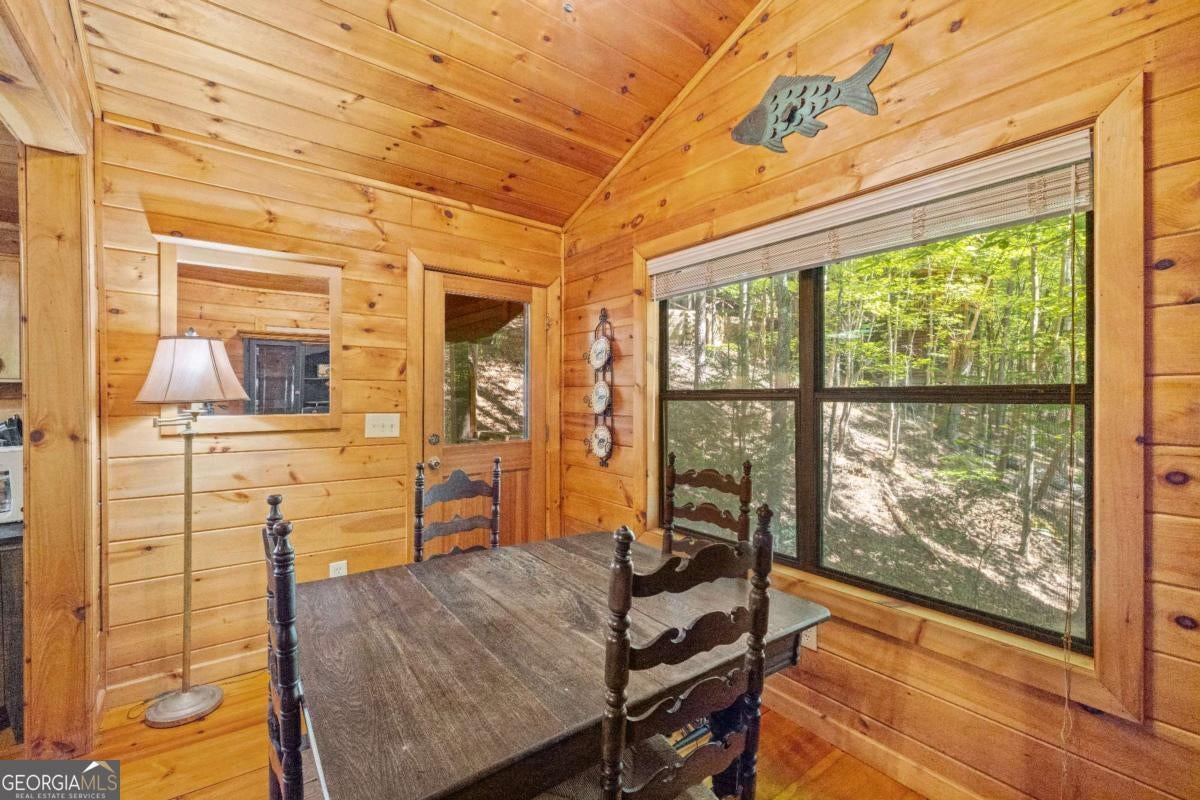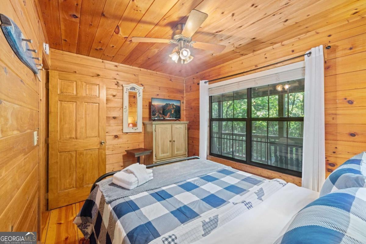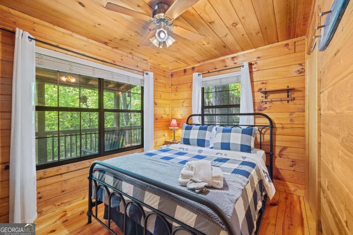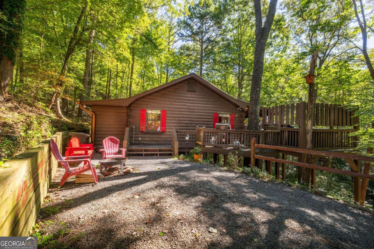 Welcome to your quintessential retreat in the woods! Tucked conveniently between Ellijay and Blue Ridge, this quaint Cherry Log cabin offers easy access and ample parking space, surrounded by the tranquility of peaceful nature. Step onto the wrap-around porch and take in the breathtaking scenery or relax under the stars in the hot tub. Inside, the cabin exudes charm with wide plank real hardwood floors, a beautifully updated kitchen with modern appliances, and a cozy gas stove. Currently a successful rental, this cabin presents a fantastic investment opportunity. It's also perfect as a quick getaway to the mountains or a second home. Coming fully furnished, all you need to bring is your toothbrush! Embrace the serenity and charm of this delightful cabin and make it yours today.