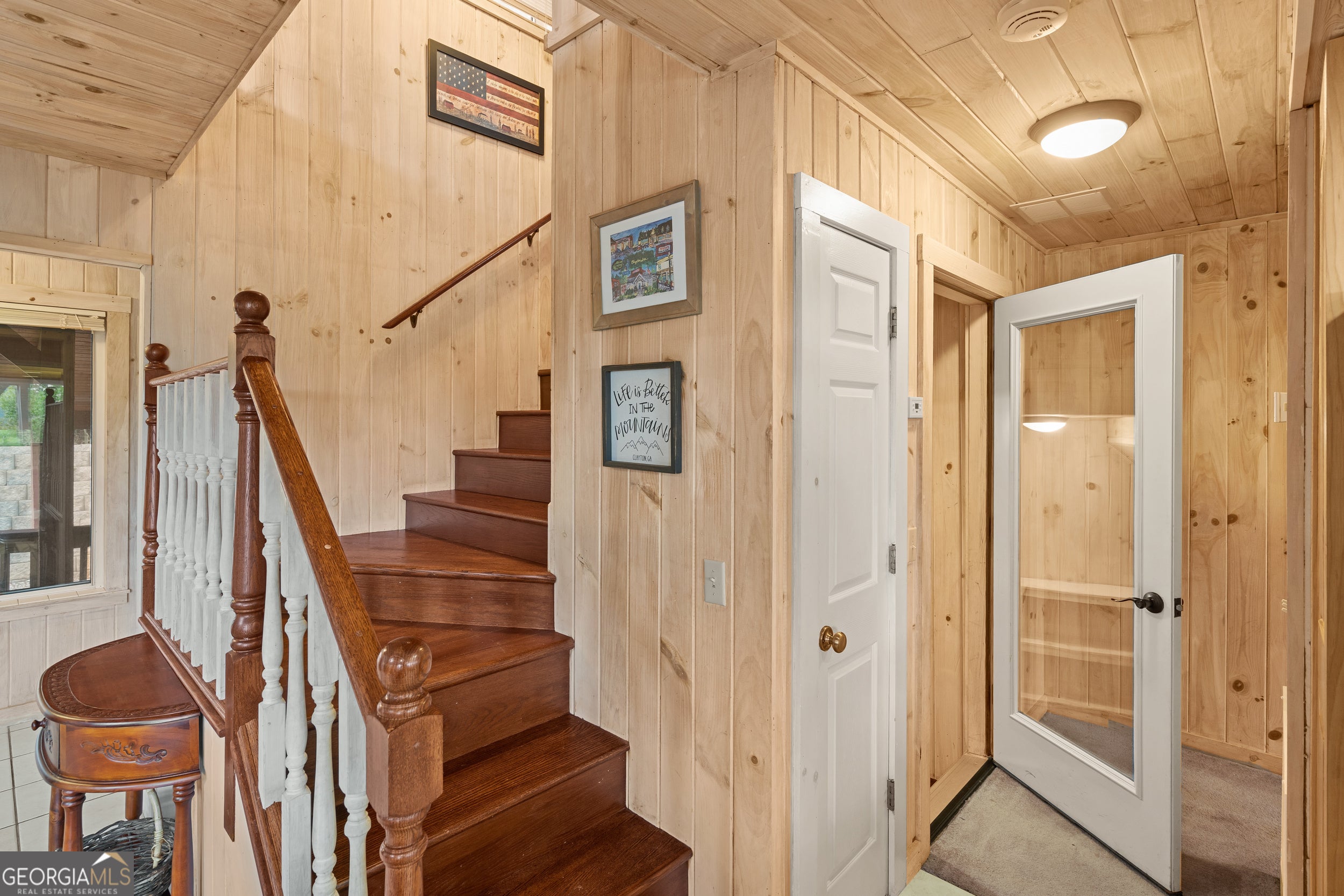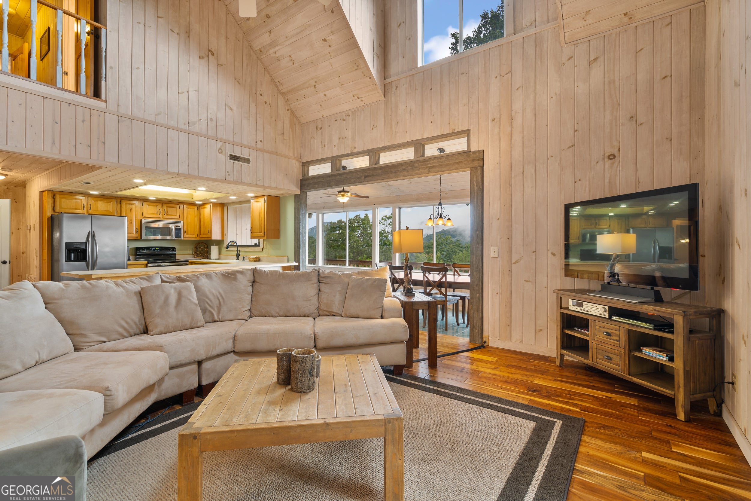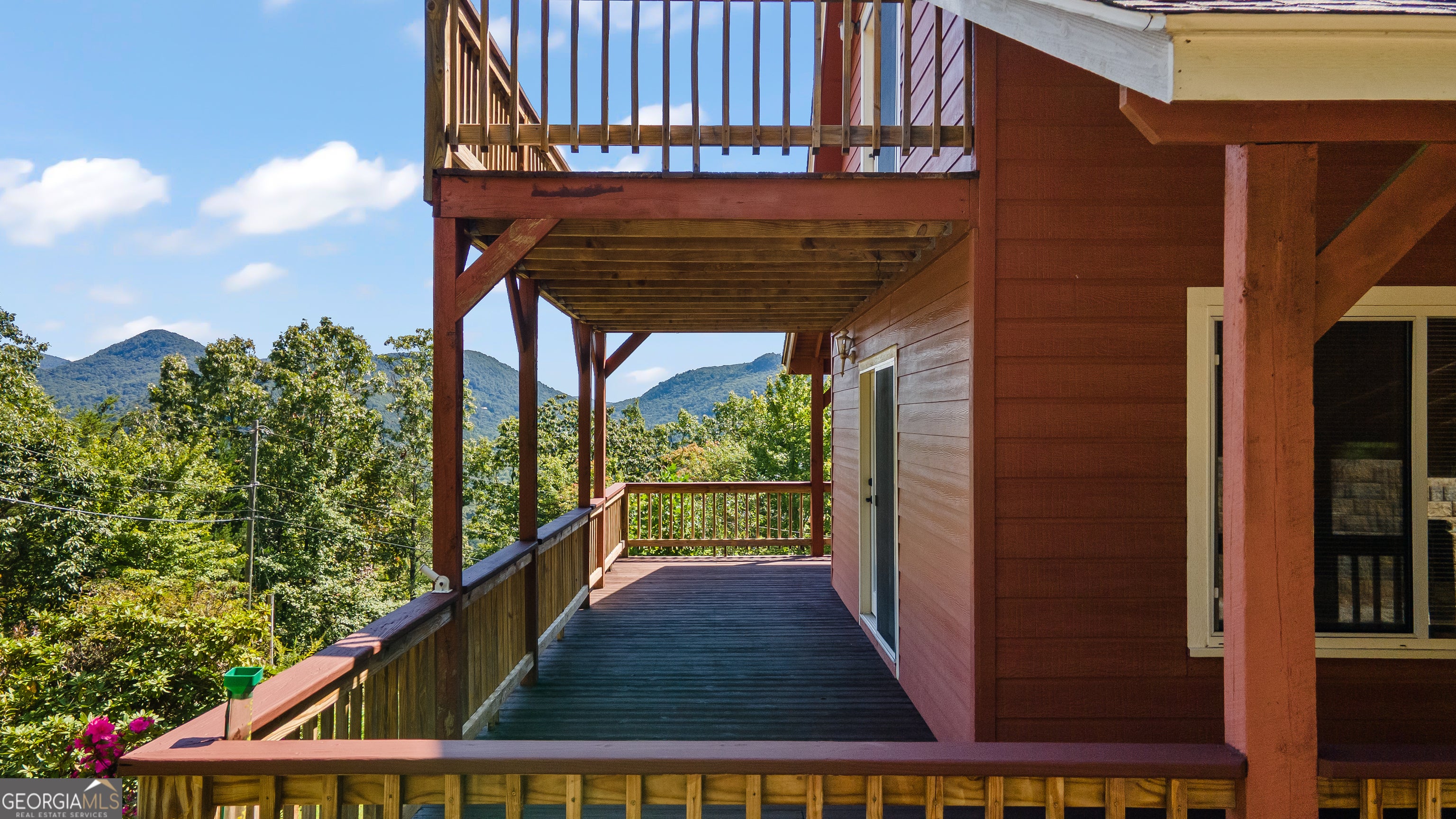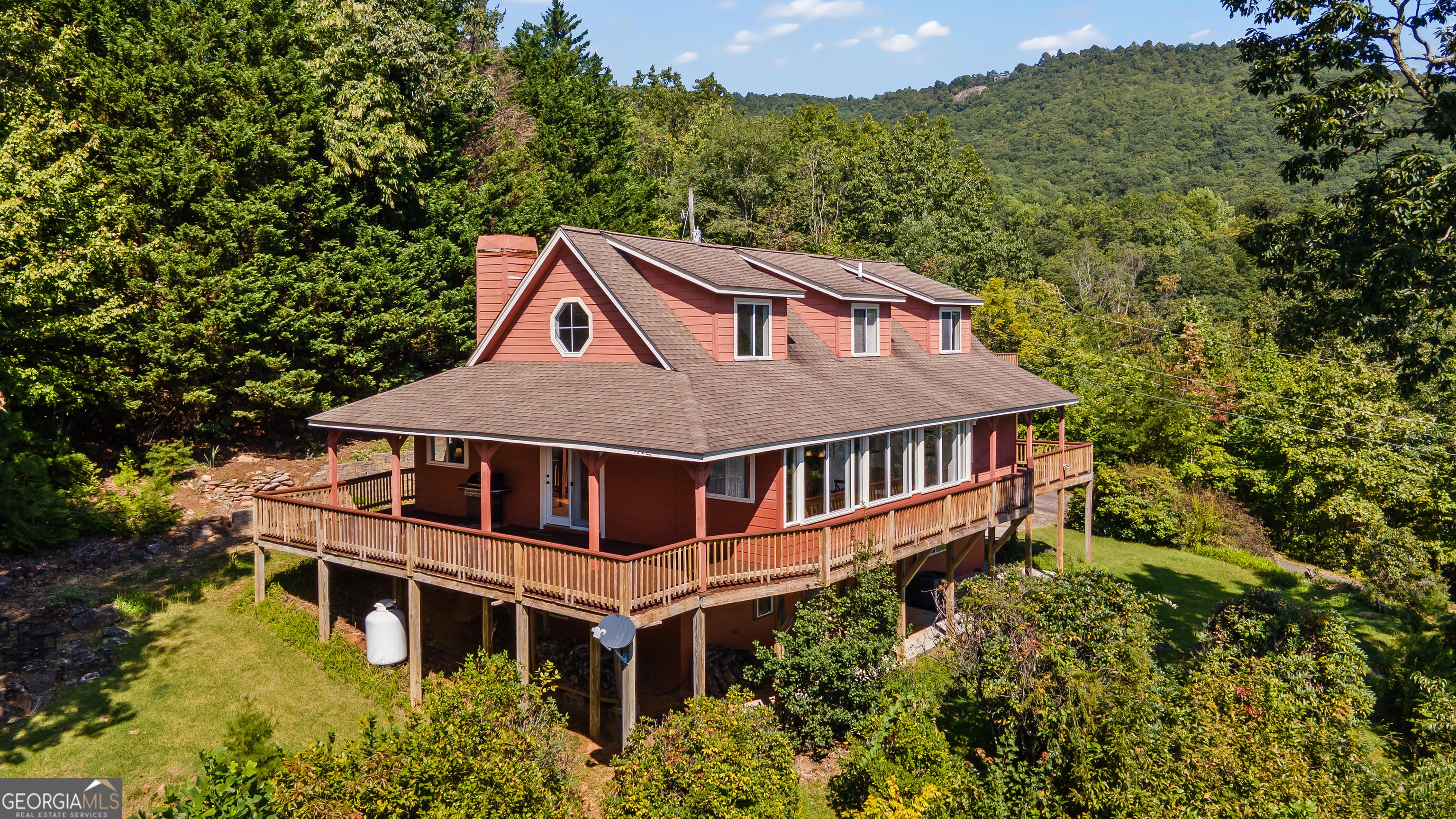 Incredible views just five minutes from the heart of town! Welcome to this beautiful mountain retreat located just above downtown Clayton, Georgia, where the only thing that exceeds the views is your proximity to town. This home features 3 bedrooms and 3 baths, one on each level for ultimate privacy and flexibility. Both the main floor and upper-level feature large decks to take in the outstanding 180-degree views. The partially covered main floor deck is perfect for grilling and dining. The living room soaks in light from the large adjacent sunroom and maximizes your eastern sunrise view. Vaulted ceilings on the main floor with white-washed wood enhance the sense of space while adding a warm, inviting touch. The living area boasts a striking stone gas log fireplace, perfect for cozy evenings, while the open kitchen offers modern appliances and a full breakfast bar. Rounding out the main floor is a small office off the living room, a large bedroom, full bath, laundry closet and pantry. The upper level has a large bedroom, full bath with double vanity and a loft space overlooking the main floor. The terrace level features the third bedroom and bath, a walkout patio with direct access to a small flat yard, a second living room and a one car garage w/ adjacent workshop. Downtown Clayton is a welcoming community focused on outdoor living. The burgeoning town is home to an excellent local dining and shopping scene that may be North Georgia's best kept secret. The surrounding area is rich with hiking trails, waterfalls, and cultural attractions. Black Rock Mountain State Park, the highest state park in Georgia, can be seen from the deck. This home benefits from paved road access right to the front door and is being sold fully furnished.