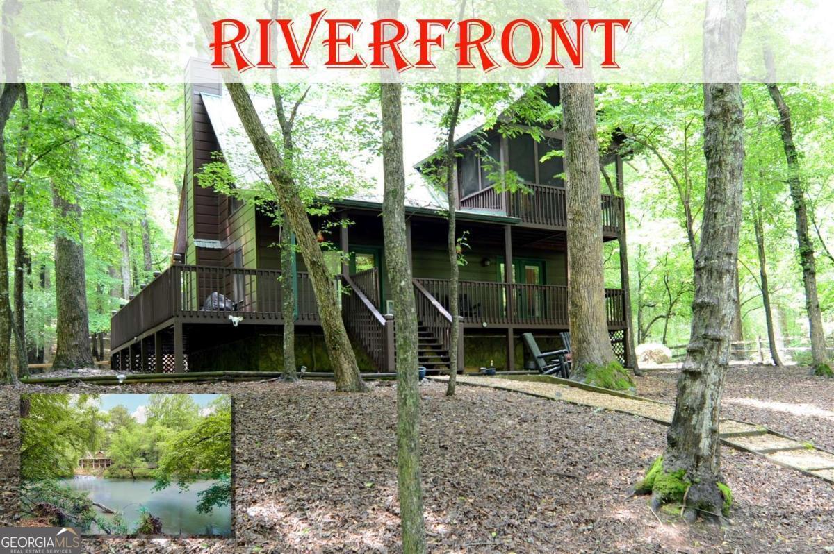 Welcome to your dream getaway in the coveted, gated mountain community of COOSAWATTEE RIVER RESORT! This beautifully rustic RIVERFRONT home offers panoramic views and direct access to the rushing river right from your backyard perfect for fishing, kayaking, or simply soaking in the serenity. Inside, you'll find an OPEN-CONCEPT layout with warm wood finishes, a vaulted ceiling, and a cozy LOFT overlooking the main living area. Two oversized bedrooms provide comfort and privacy, while multiple decks, a SCREENED PORCH, and a wraparound porch invite you to enjoy the outdoors year-round. The FENCED yard is ideal for pets or play, and a whole-house GENERATOR offers peace of mind. Newer HVAC system. This home is equally suited for full-time living, a weekend retreat, or a lucrative SHORT-TERM-RENTAL. Located just minutes from the charming shops and restaurants of downtown Ellijay, yet tucked away enough to feel like your own private mountain escape. Enjoy all that Coosawattee has to offer: multiple clubhouses, pools, tennis courts, stocked fishing lakes, and endless recreational activities. You can see more about the community on the Cossawatee River Resort web site (google it). Don't miss this rare opportunity for RIVERFRONT living in the North Georgia mountains at a great price compared to recent comparable sales. Don't miss the boat: 100K+ discount over previous listing and priced way below other riverfront comps. Make an offer today!