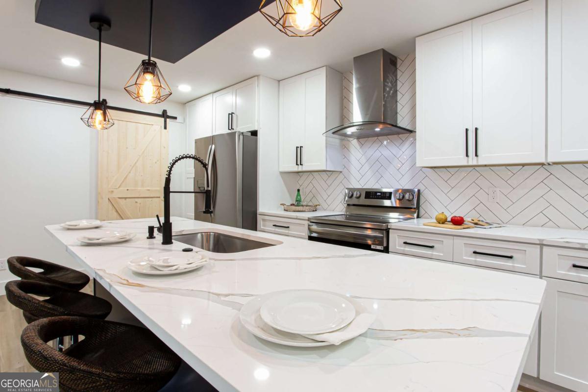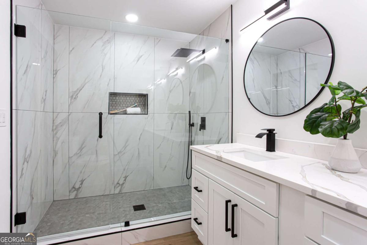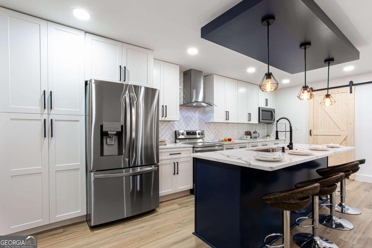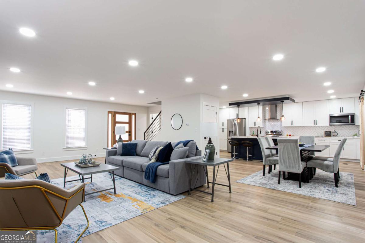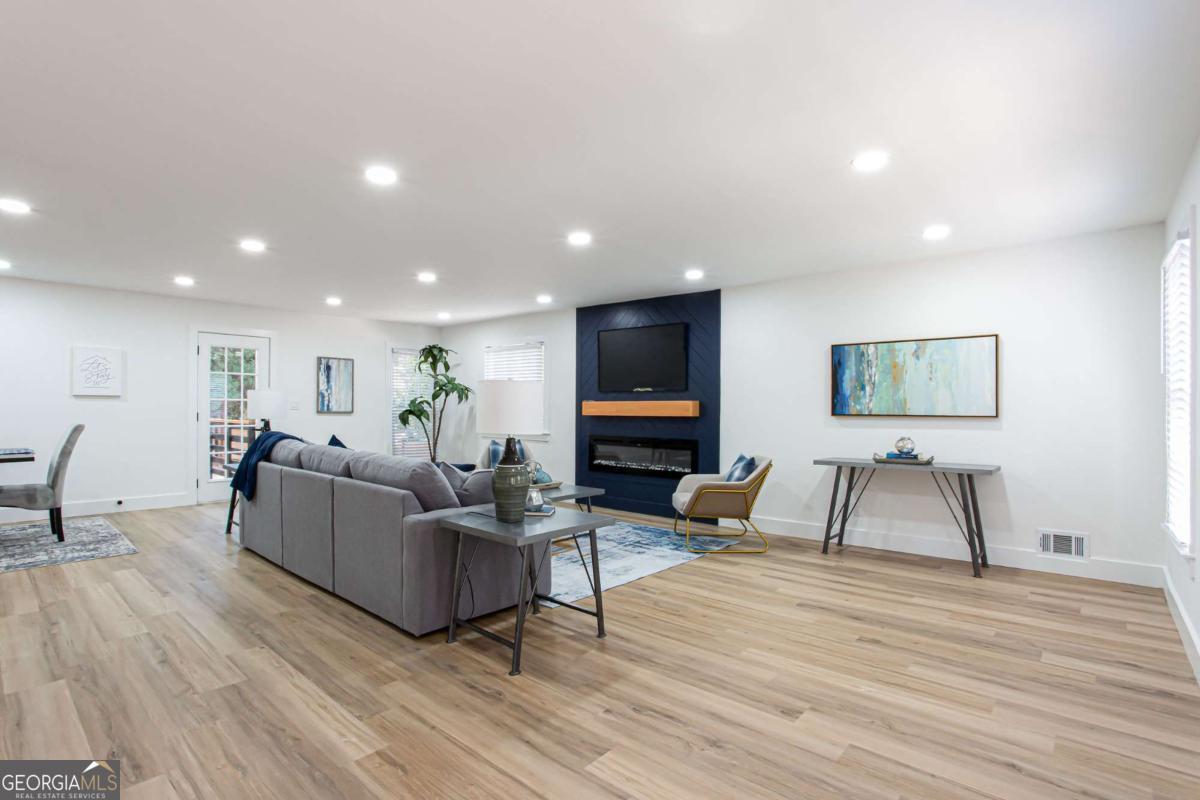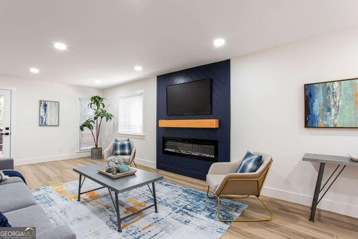 NEW PRICE, SAME BEAUTIFUL HOME! Completely renovated East Cobb gem in the highly desired Pope High School District. This 4-bedroom modern carriage-style home has been updated from top to bottom and is ready for its next owner. Step inside to find new LVP flooring throughout, an open-concept living area filled with recessed lighting, and a sleek electric fireplace that adds a cozy, modern touch. The highlight of this home is the "Superior Kitchen," featuring quartz countertops, high-end stainless-steel appliances, upgraded self-closing cabinets, a spacious island perfect for bar seating, and a walk-in pantry. The adjacent dining area offers plenty of space for entertaining. Upstairs, unwind in the owner's suite with a brand-new spa-like bath boasting a large tiled walk-in shower and double vanity. Secondary bedrooms are generously sized, and all bathrooms have been fully renovated. Enjoy peace of mind with new front and back decks, fresh interior and exterior paint, new energy-efficient windows, new roof, new HVAC/furnace, and new garage door. The garage-level bonus room offers flexible space for a gym or extra storage. The fenced backyard is ideal for kids, pets, or family gatherings. Conveniently located near parks, the Aquatic Center, restaurants, grocery stores, and shopping. This East Cobb dream home won't last long!!