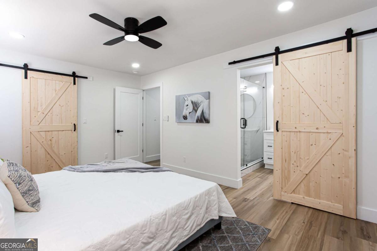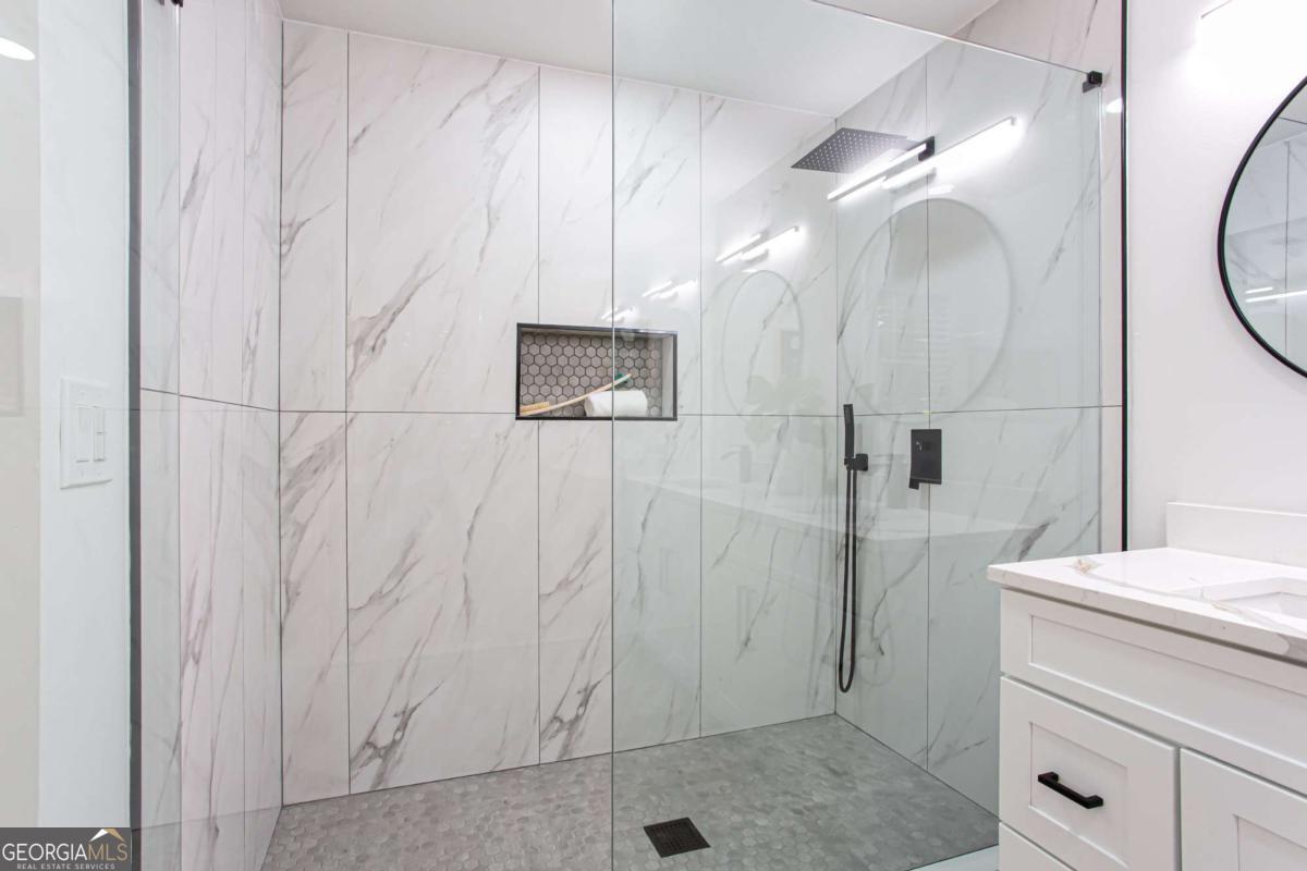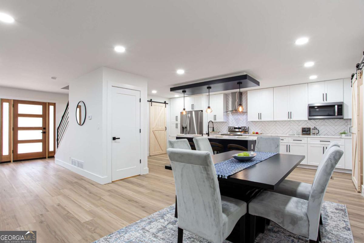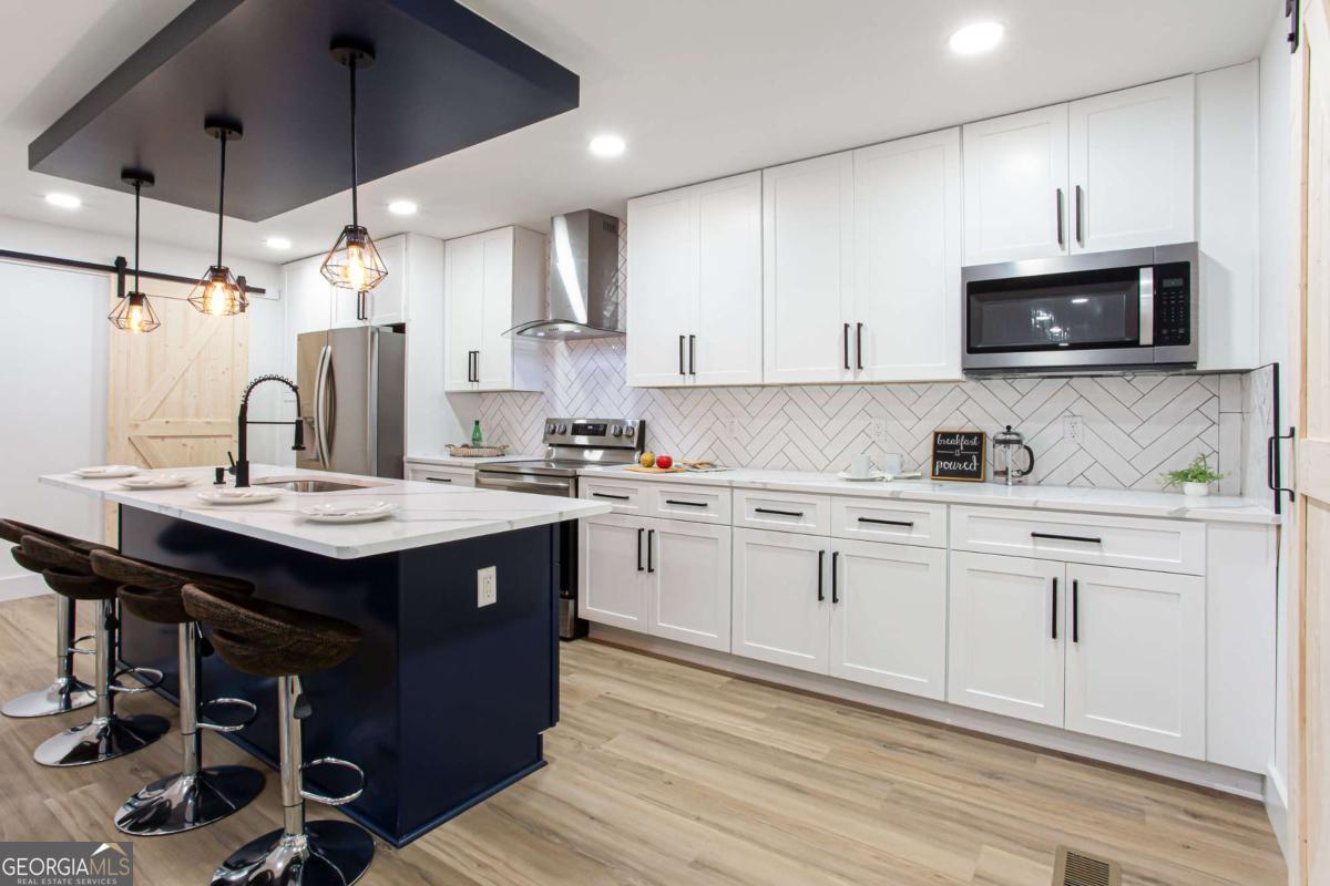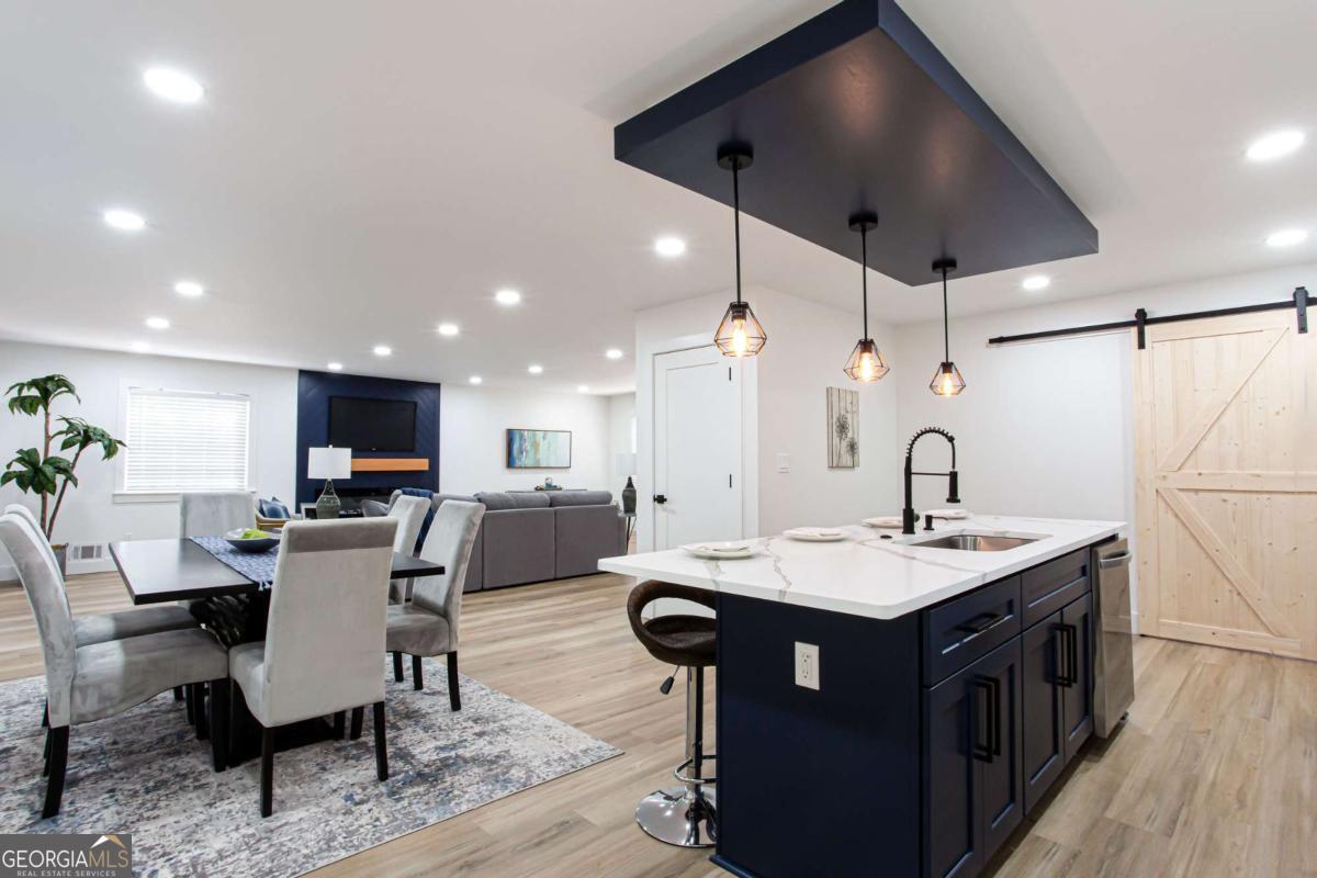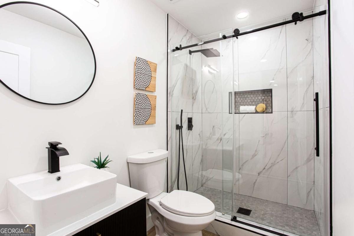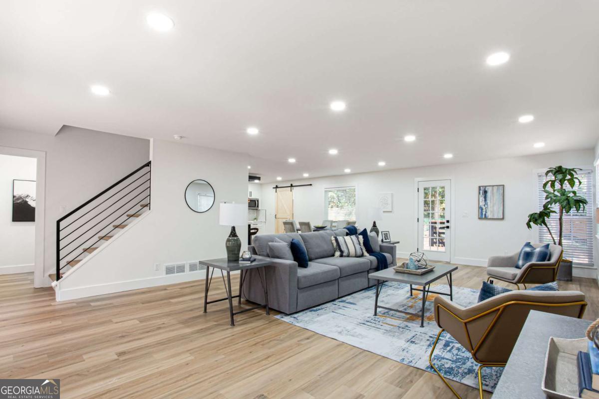 NEW PRICE, SAME BEAUTIFUL HOME! Completely renovated East Cobb gem in the highly desired Pope High School District. This 4-bedroom modern carriage-style home has been updated from top to bottom and is ready for its next owner. Step inside to find new LVP flooring throughout, an open-concept living area filled with recessed lighting, and a sleek electric fireplace that adds a cozy, modern touch. The highlight of this home is the "Superior Kitchen," featuring quartz countertops, high-end stainless-steel appliances, upgraded self-closing cabinets, a spacious island perfect for bar seating, and a walk-in pantry. The adjacent dining area offers plenty of space for entertaining. Upstairs, unwind in the owner's suite with a brand-new spa-like bath boasting a large tiled walk-in shower and double vanity. Secondary bedrooms are generously sized, and all bathrooms have been fully renovated. Enjoy peace of mind with new front and back decks, fresh interior and exterior paint, new energy-efficient windows, new roof, new HVAC/furnace, and new garage door. The garage-level bonus room offers flexible space for a gym or extra storage. The fenced backyard is ideal for kids, pets, or family gatherings. Conveniently located near parks, the Aquatic Center, restaurants, grocery stores, and shopping. This East Cobb dream home won't last long!!