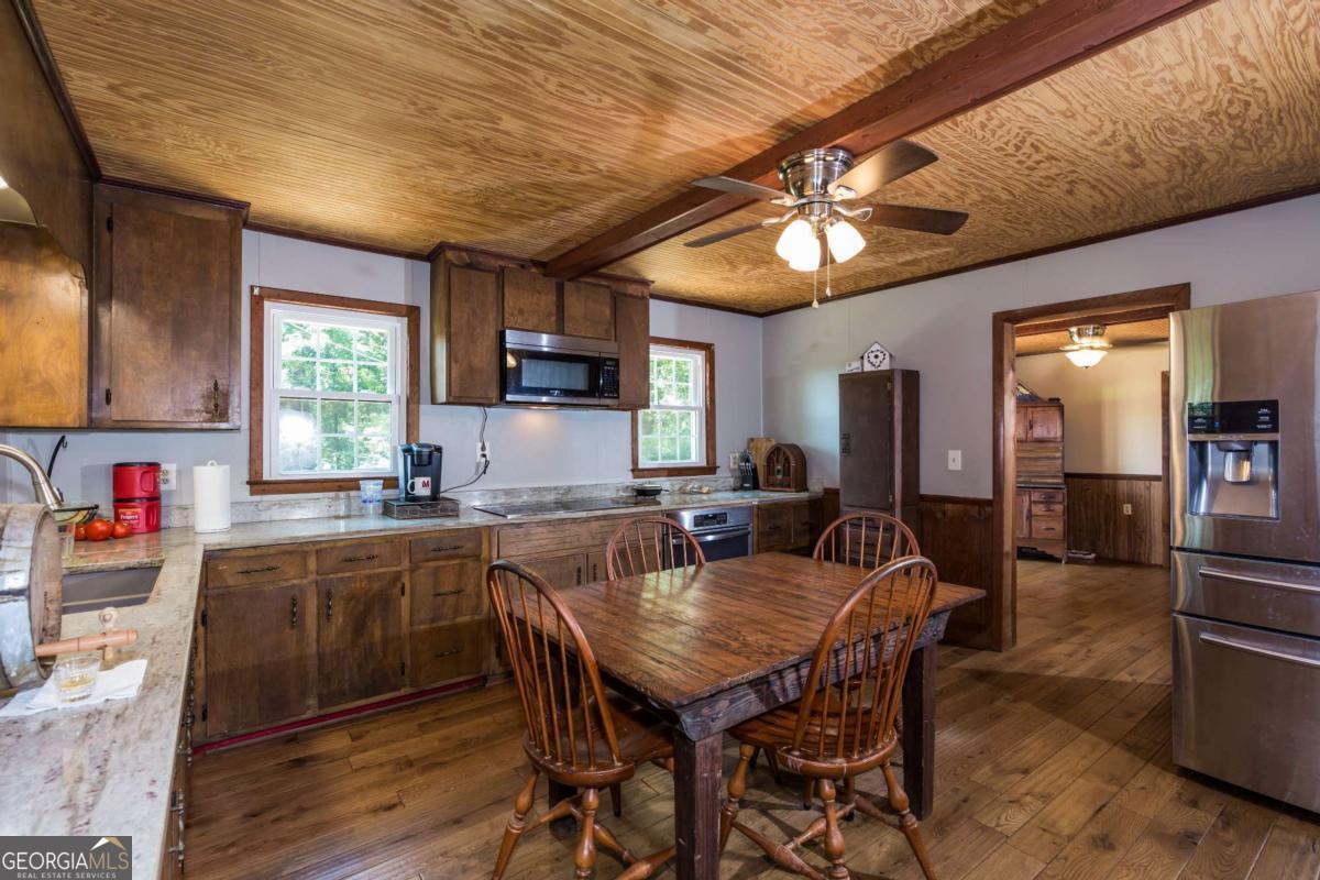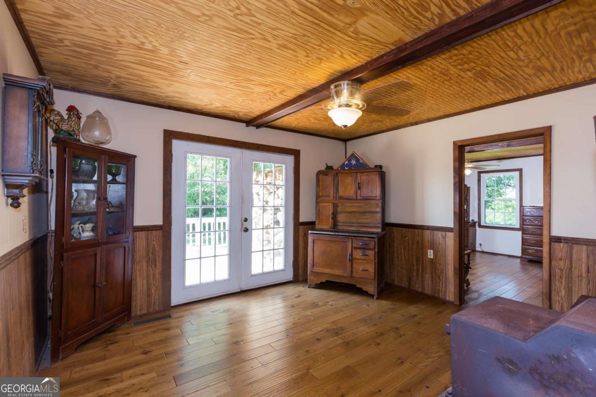 6 AWESOME ACRES of POTENTIAL on this beautiful level property of pasture and shade trees! NOTE: 6 ACRES Could be subdivided And the current LI Zoning allows for commercial options. HUGE 3 BAY SHOP 52x40 12' Ceiling WITH LIFT AND AIR COMPRESSOR included. The property is just minutes from the 365 corridor and the convenience of shopping and restaurants yet preserves a country vibe. Many options whether residential, a mini farm, a business, short term rental , subdivide for additional homes etc etc etc. Residence included: COME AND 'SIT A SPELL' ON THE COVERED FRONT PORCH - SOAK UP THE PEACEFUL ATMOSPHERE OF THIS RENOVATED COUNTRY BUNGALOW CHARMER. UPGRADED APPLIANCES, FIXTURES, NEW VINYL SIDING -ALL NEW WINDOWS Beautiful NEW HARDWOOD FLOORS throughout, Beamed Bead Board Ceilings for a Country Rustic Look. Home is accented by some of the original wood door and trim to preserve the history yet updated floors, ceilings, upgraded appliances, granite counters and fixtures. Rooms include Spacious Living Room, Dining/Den , Master suite that adjoins a 2nd bedroom/office via a Jack and Jill style Bath plus a large 3rd bedroom. Home offers plenty of living space would make a great vacation home in beautiful northeast GA mountain area.