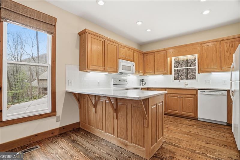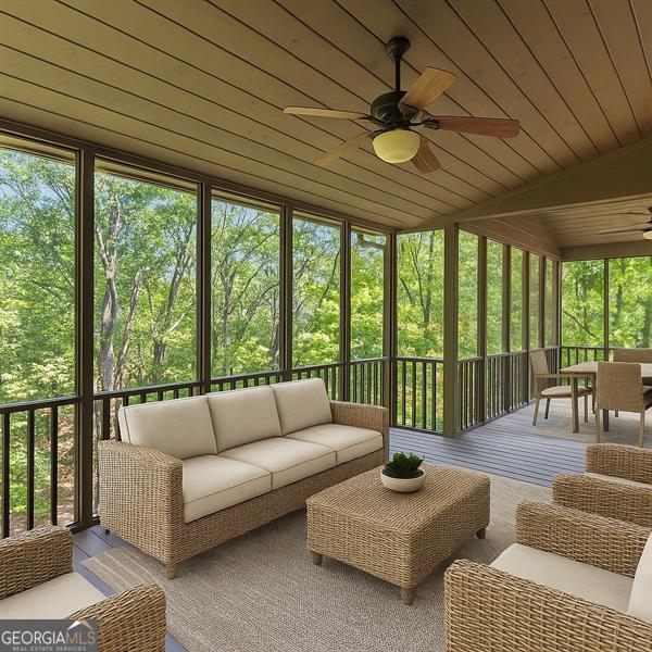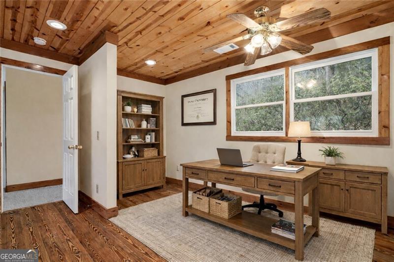 This property is perfect for personal use or as an investment & is ready for your personal style. It is designed for casual comfort and connection with 3 bedrooms, 2 full baths, and 2 half-baths. Upgrades include professionally refinished pine hardwood floors and a new roof in 2025, an updated master bathroom, a concrete driveway, and quartz countertops throughout. The main level features a large front porch, an open-concept great room with a generous dining area, kitchen, owners suite with a sitting room, half bath, a pantry or laundry option, and an oversized screen porch. With approximately 600 sq ft of combined covered outdoor space, you'll have the perfect vantage points to enjoy the forest and wildlife. The upper level offers privacy with a cozy loft perfect for a home office, a full bathroom, and two generous bedrooms. Each bedroom closet offers separate storage rooms behind it. The daylight terrace level expands the possibilities: a family room with a propane gas fireplace and built-in bookcases, a laundry room, half bath, and a two-car garage! Centrally located in Disharoon Valley of Big Canoe, you're less than a half mile from the Jeep Trail that takes you to the community's waterfalls! And of course, the community is a big part of this story. The newly renovated clubhouse (August of 2025) is the destination for dining, social events, and celebrations. It's more than a building; it's the heartbeat of the community. On top of this, there are miles of hiking trails, sparkling lakes, a marina, fishing, 27 holes of golf, tennis, pickle ball, racquetball, a fitness center, bocce courts, pools, and countless social groups all within the gates of this private mountain community. Gain the Big Canoe lifestyle without breaking the bank!