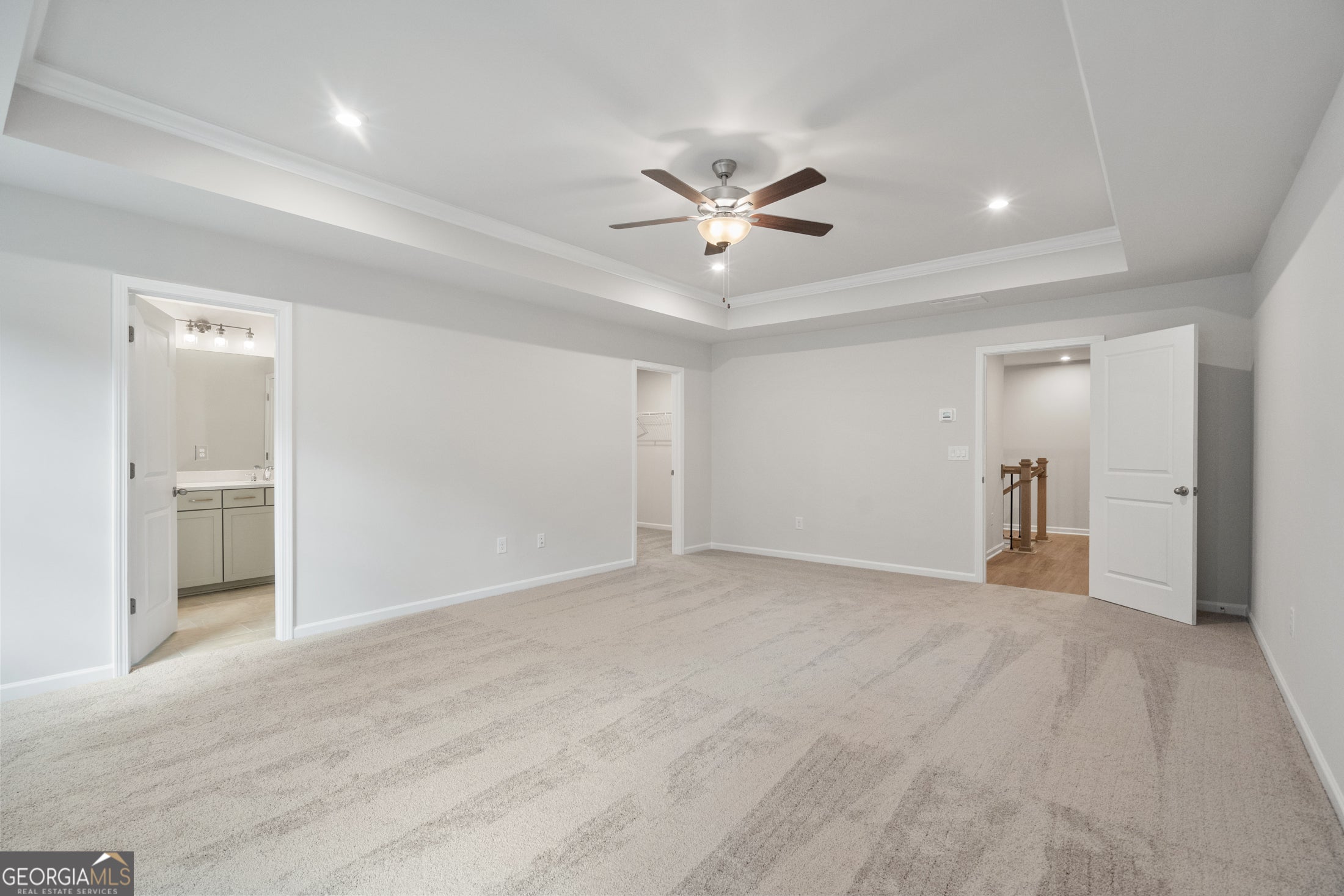 - Interior FeaturesDouble Vanity, High Ceilings, Pulldown Attic Stairs, Roommate Plan, Split Bedroom Plan, Tray Ceiling(s), Walk-In Closet(s)
