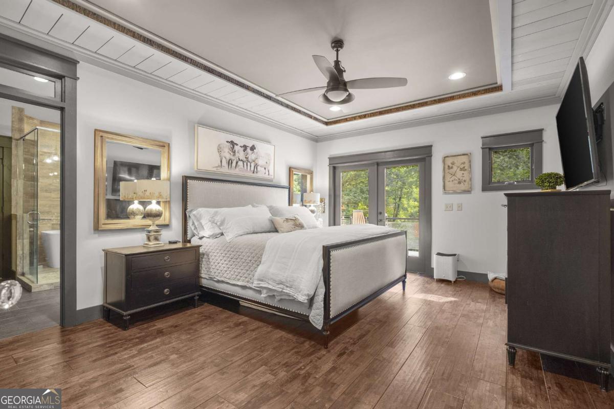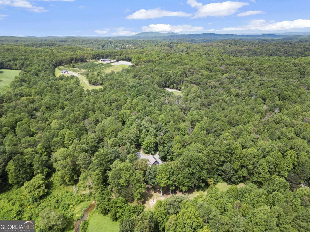 Escape to the heart of North Georgia wine country in this stunning 4 bedroom, 4.5 bathroom creekside luxury chalet, perfectly nestled in the mountains and less than five minutes from local wineries, apple orchards, and charming small-town attractions. Designed for both comfort and sophistication, this home combines rustic elegance with high-end finishes throughout. The main level welcomes you with soaring ceilings, walls of glass, and abundant natural light that frames beautiful views of Turkey Creek flowing just outside. Multiple stone fireplaces add warmth and ambiance, while an open floor plan seamlessly connects the great room, dining area, and chef's kitchen-ideal for entertaining or cozy evenings at home. This retreat offers space for everyone, with four spacious bedrooms each featuring a dedicated bath. The expansive primary suite is a private sanctuary, complete with a spa-like bathroom featuring an oversized tile shower, soaking tub, double vanities, and a walk-in closet. A bonus room offers flexible use as a home office, library, or playroom. For those who love to entertain, the lower level boasts a movie theatre and generous living space perfect for gatherings. Step outside to enjoy beautifully landscaped grounds, a creekside firepit, and multiple decks where you can relax and take in the fresh mountain air. Complete with a barn/workshop, a fenced area for your furry friends, and complete privacy, this would be a perfect full-time residence, private getaway, or income-producing investment. This North Georgia treasure is ready to welcome you home!