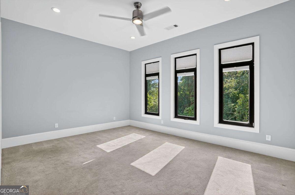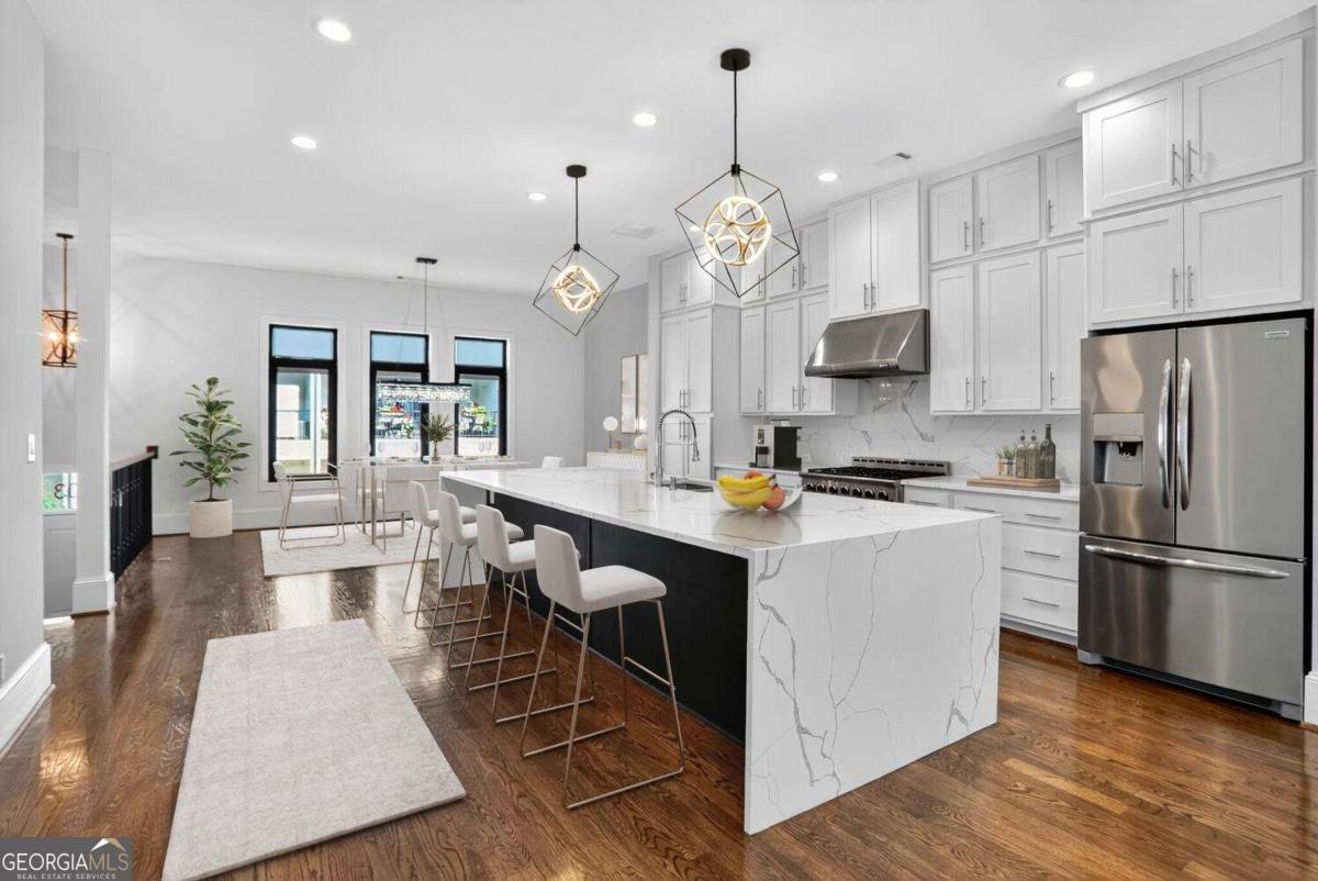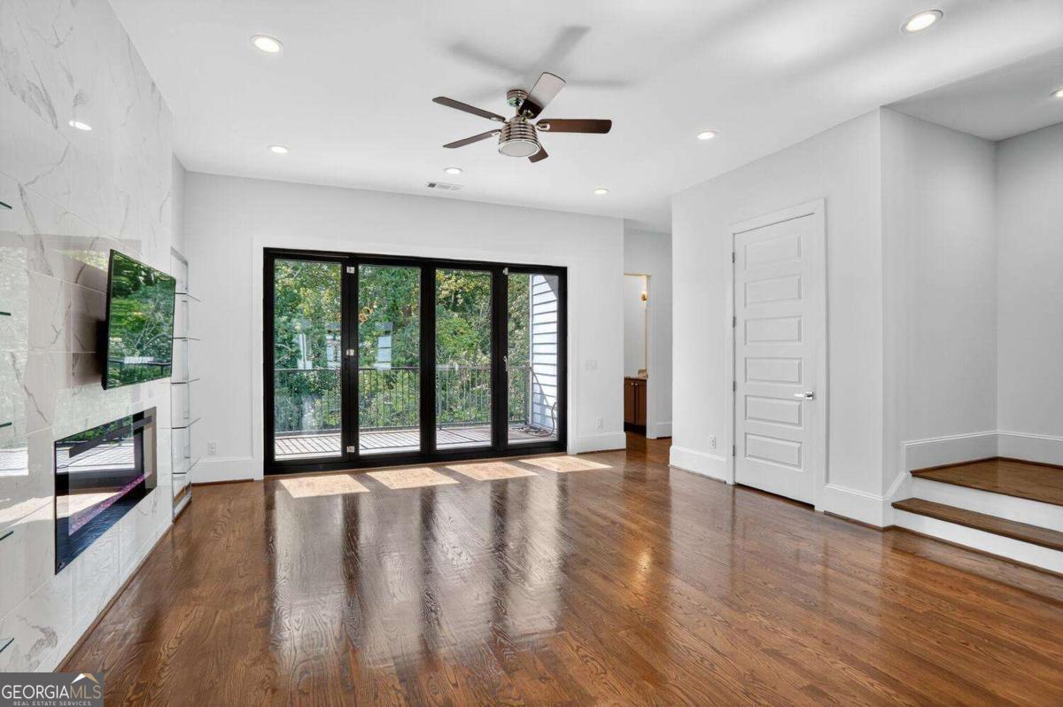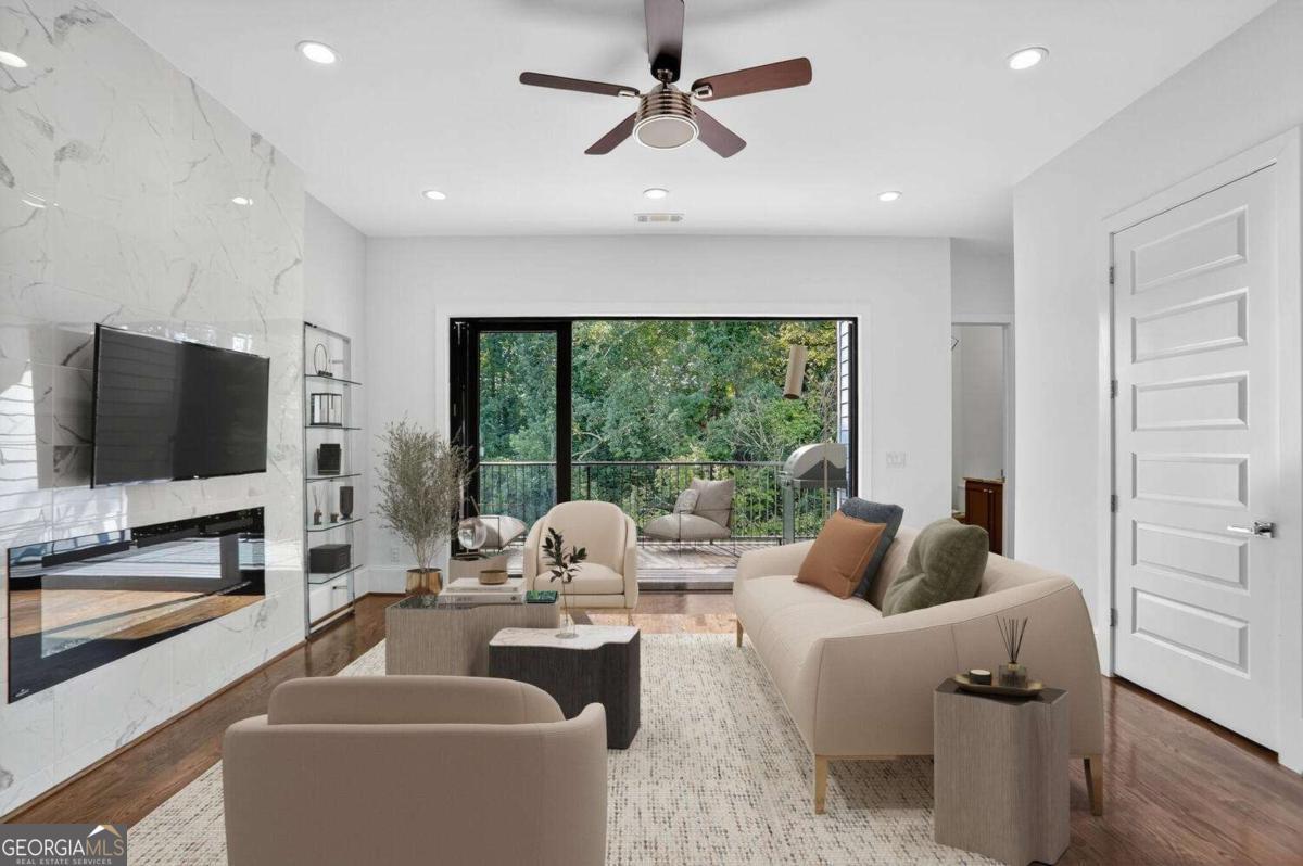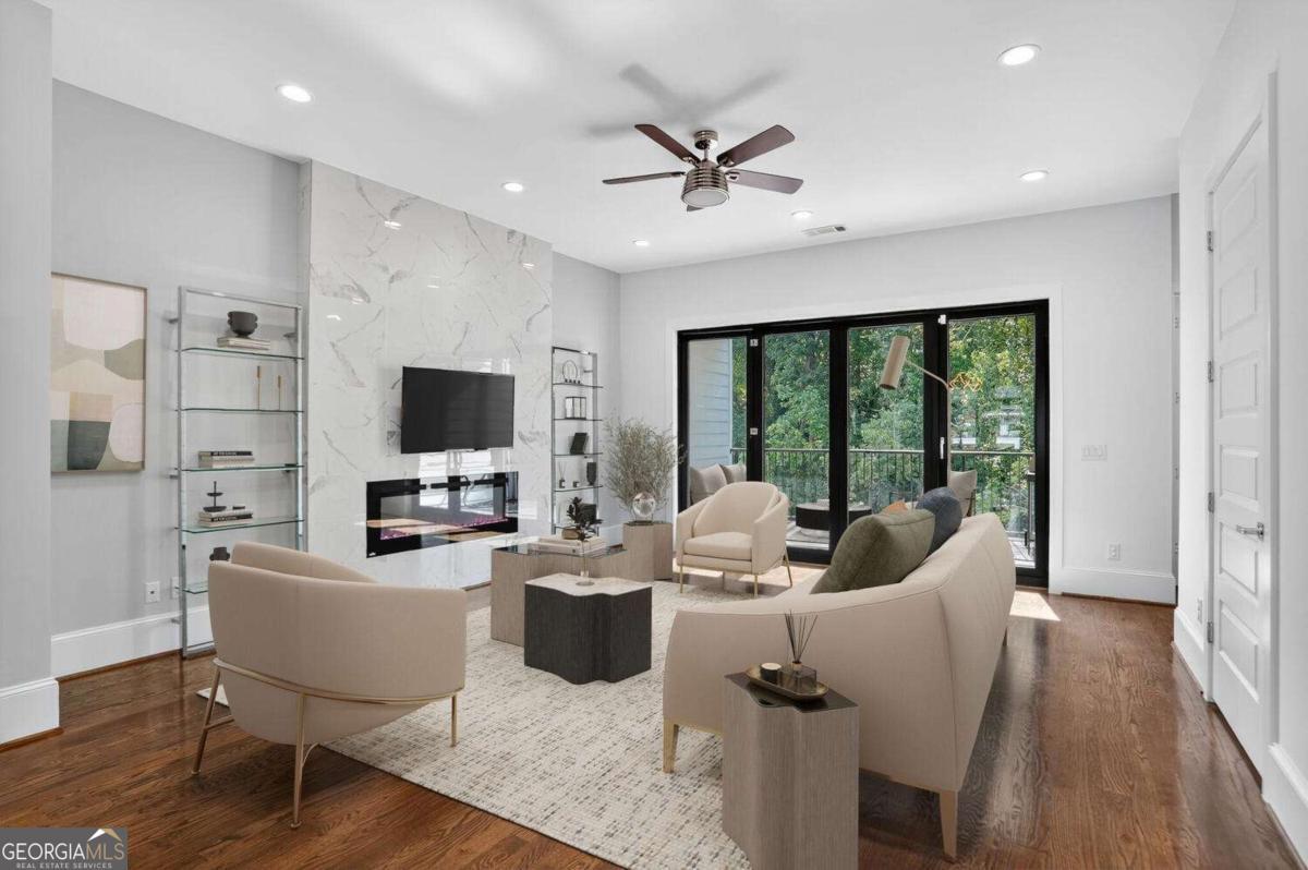 Experience the best of intown living in this elegant and spacious four-level townhome that truly lives like a single-family residence. Townhome living combines the best of both worlds-spacious layouts that feel like a single-family home with the convenience of low-maintenance living. Enjoy modern design, energy efficiency, and shared community amenities, all in a prime intown location that puts everything at your doorstep. The main level impresses with soaring 10.5-foot ceilings, gleaming hardwood floors, and seamless flow between the dining, living, and kitchen areas. The gourmet kitchen features floor-to-ceiling cabinetry, a massive quartz waterfall island with wine cooler, custom walk-in pantry, and professional-grade appliances. Anchoring the living room is a modern linear fireplace with a full-height ceramic tile surround. Expansive folding glass doors extend the living space to a private covered deck with ceiling fan and gas line for grilling-ideal for year-round enjoyment. Upstairs, the primary suite offers a peaceful retreat with tree-lined views, two separate extra-large walk-in closets, and a spa-inspired bath finished in Carrara marble tile. The luxurious bath includes a jetted soaking tub, oversized shower, and double vanity. Four additional bedrooms provide ample space for guests, office, or flex use. The daylight terrace level expands the living space with a large bonus room and a full bath, perfect for a media room, den, playroom, or private guest suite. The terrace level opens directly to a private fenced courtyard and landscaped backyard-ideal for entertaining, play, or quiet relaxation. Additional highlights include European windows with custom shades, smart home technology with security system and Ring camera, a spacious two-car garage with separate storage, and room for guest parking. Each home has accommodations for an optional elevator for long-term convenience. The community itself offers a private fenced dog park with stations and is tucked away in a quiet setting. All of this is centrally located just minutes to Emory, CDC, CHOA, Buckhead, Virginia-Highland, downtown Decatur, and major highways. A rare opportunity to own a home that combines space, privacy, and modern finishes in one of the most convenient intown locations.