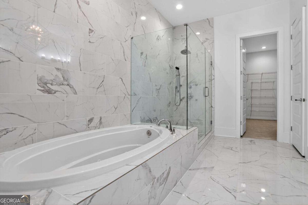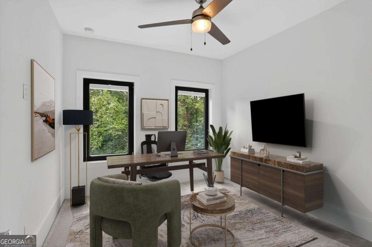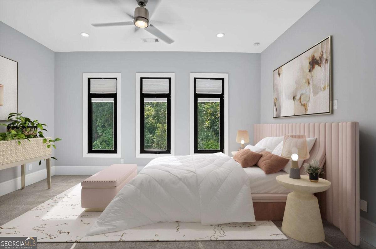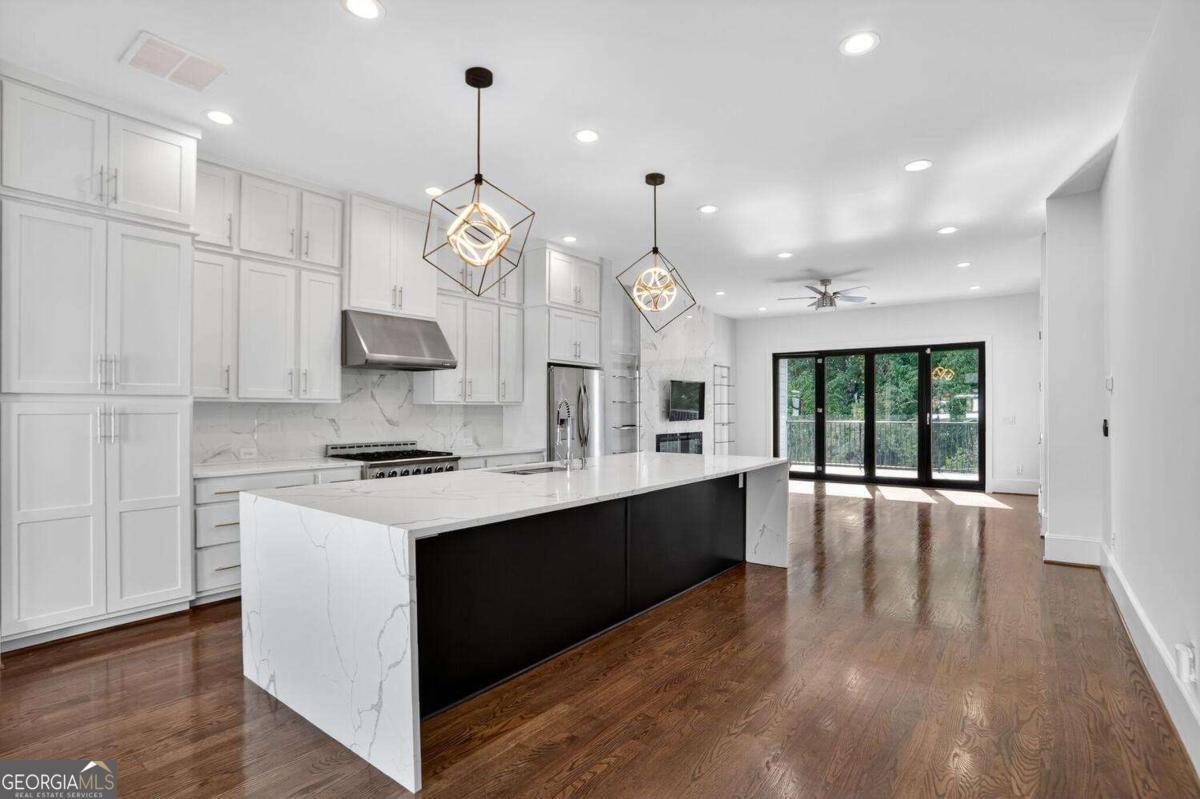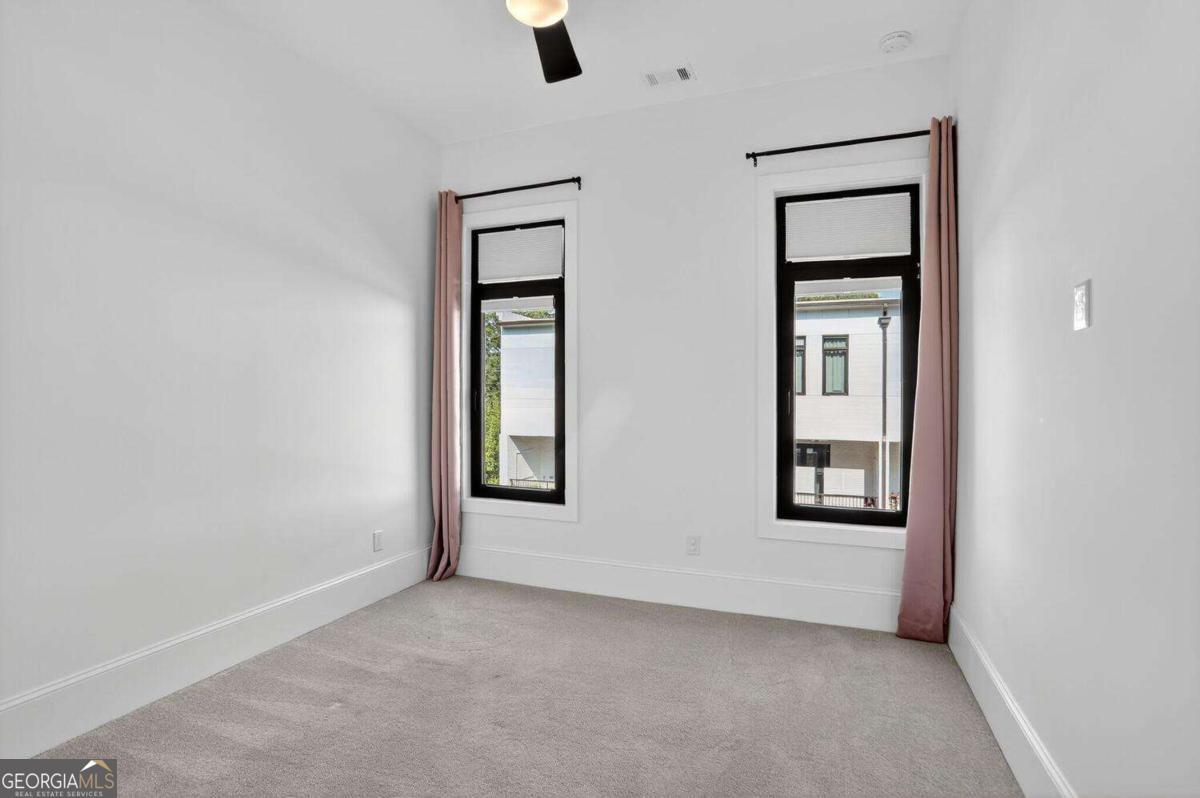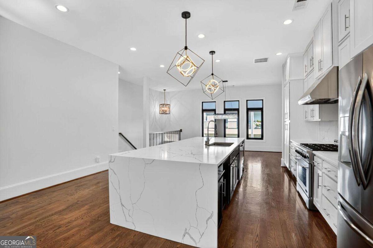 Experience the best of intown living in this elegant and spacious four-level townhome that truly lives like a single-family residence. Townhome living combines the best of both worlds-spacious layouts that feel like a single-family home with the convenience of low-maintenance living. Enjoy modern design, energy efficiency, and shared community amenities, all in a prime intown location that puts everything at your doorstep. The main level impresses with soaring 10.5-foot ceilings, gleaming hardwood floors, and seamless flow between the dining, living, and kitchen areas. The gourmet kitchen features floor-to-ceiling cabinetry, a massive quartz waterfall island with wine cooler, custom walk-in pantry, and professional-grade appliances. Anchoring the living room is a modern linear fireplace with a full-height ceramic tile surround. Expansive folding glass doors extend the living space to a private covered deck with ceiling fan and gas line for grilling-ideal for year-round enjoyment. Upstairs, the primary suite offers a peaceful retreat with tree-lined views, two separate extra-large walk-in closets, and a spa-inspired bath finished in Carrara marble tile. The luxurious bath includes a jetted soaking tub, oversized shower, and double vanity. Four additional bedrooms provide ample space for guests, office, or flex use. The daylight terrace level expands the living space with a large bonus room and a full bath, perfect for a media room, den, playroom, or private guest suite. The terrace level opens directly to a private fenced courtyard and landscaped backyard-ideal for entertaining, play, or quiet relaxation. Additional highlights include European windows with custom shades, smart home technology with security system and Ring camera, a spacious two-car garage with separate storage, and room for guest parking. Each home has accommodations for an optional elevator for long-term convenience. The community itself offers a private fenced dog park with stations and is tucked away in a quiet setting. All of this is centrally located just minutes to Emory, CDC, CHOA, Buckhead, Virginia-Highland, downtown Decatur, and major highways. A rare opportunity to own a home that combines space, privacy, and modern finishes in one of the most convenient intown locations.