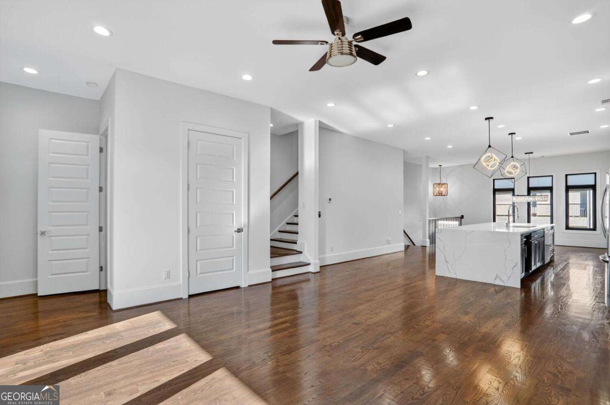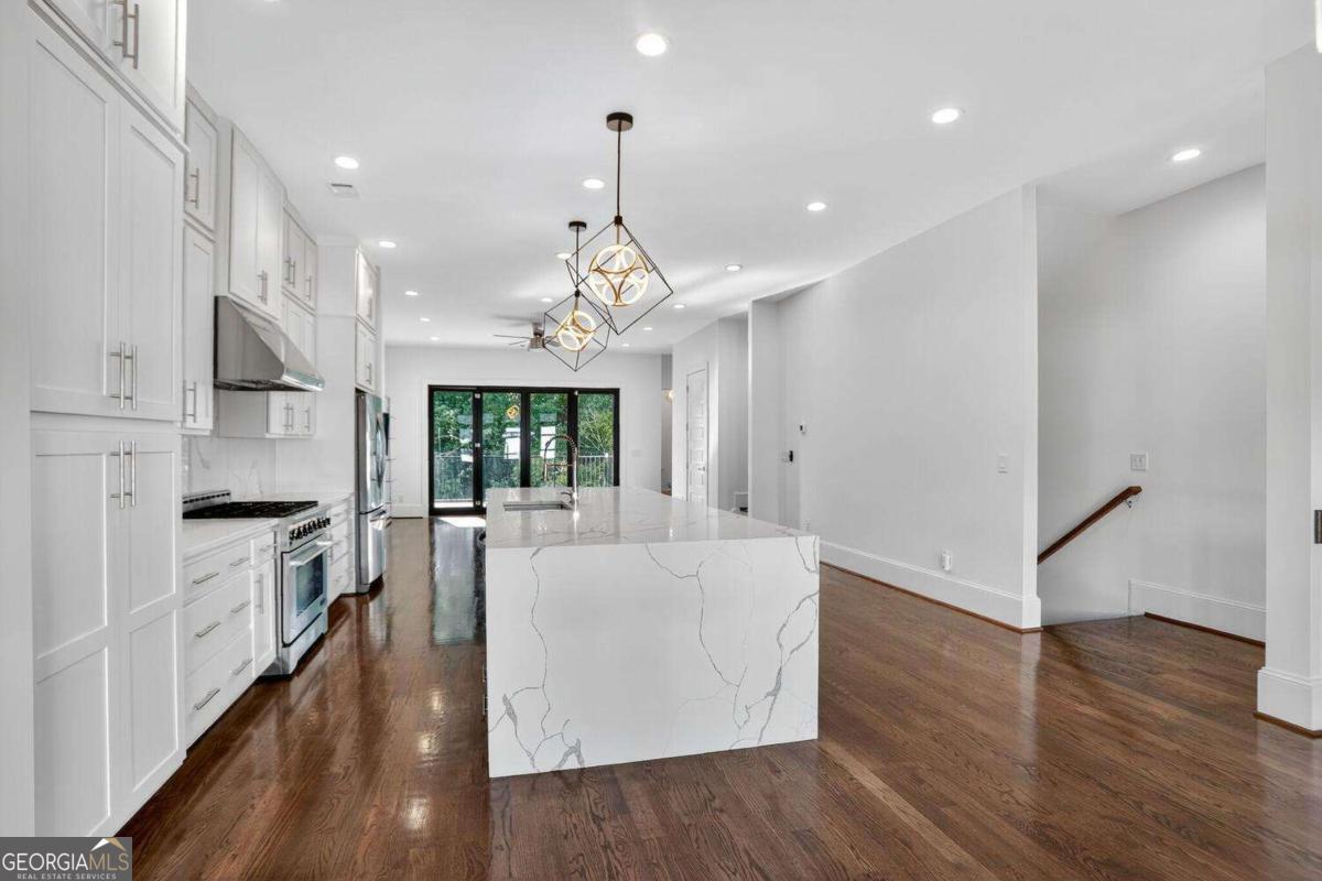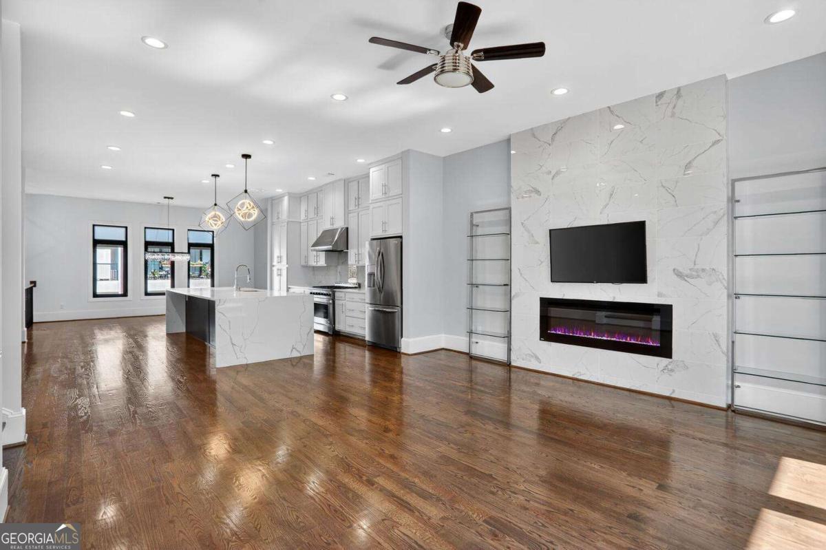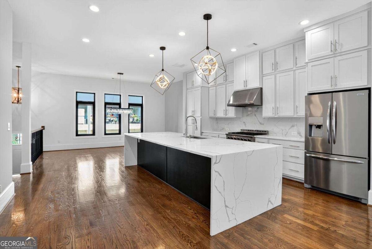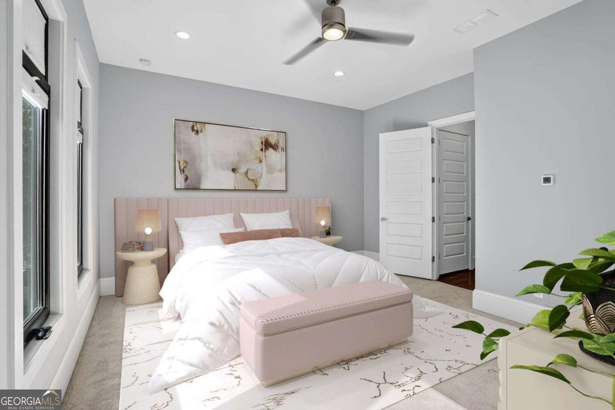 Experience the best of intown living in this elegant and spacious four-level townhome that truly lives like a single-family residence. Townhome living combines the best of both worlds-spacious layouts that feel like a single-family home with the convenience of low-maintenance living. Enjoy modern design, energy efficiency, and shared community amenities, all in a prime intown location that puts everything at your doorstep. The main level impresses with soaring 10.5-foot ceilings, gleaming hardwood floors, and seamless flow between the dining, living, and kitchen areas. The gourmet kitchen features floor-to-ceiling cabinetry, a massive quartz waterfall island with wine cooler, custom walk-in pantry, and professional-grade appliances. Anchoring the living room is a modern linear fireplace with a full-height ceramic tile surround. Expansive folding glass doors extend the living space to a private covered deck with ceiling fan and gas line for grilling-ideal for year-round enjoyment. Upstairs, the primary suite offers a peaceful retreat with tree-lined views, two separate extra-large walk-in closets, and a spa-inspired bath finished in Carrara marble tile. The luxurious bath includes a jetted soaking tub, oversized shower, and double vanity. Four additional bedrooms provide ample space for guests, office, or flex use. The daylight terrace level expands the living space with a large bonus room and a full bath, perfect for a media room, den, playroom, or private guest suite. The terrace level opens directly to a private fenced courtyard and landscaped backyard-ideal for entertaining, play, or quiet relaxation. Additional highlights include European windows with custom shades, smart home technology with security system and Ring camera, a spacious two-car garage with separate storage, and room for guest parking. Each home has accommodations for an optional elevator for long-term convenience. The community itself offers a private fenced dog park with stations and is tucked away in a quiet setting. All of this is centrally located just minutes to Emory, CDC, CHOA, Buckhead, Virginia-Highland, downtown Decatur, and major highways. A rare opportunity to own a home that combines space, privacy, and modern finishes in one of the most convenient intown locations.
