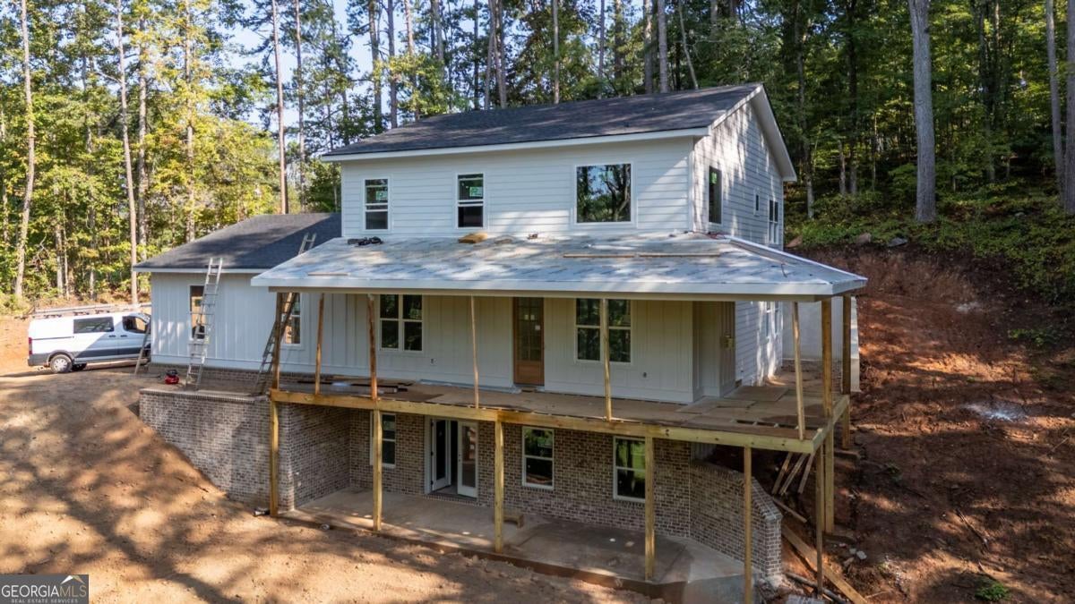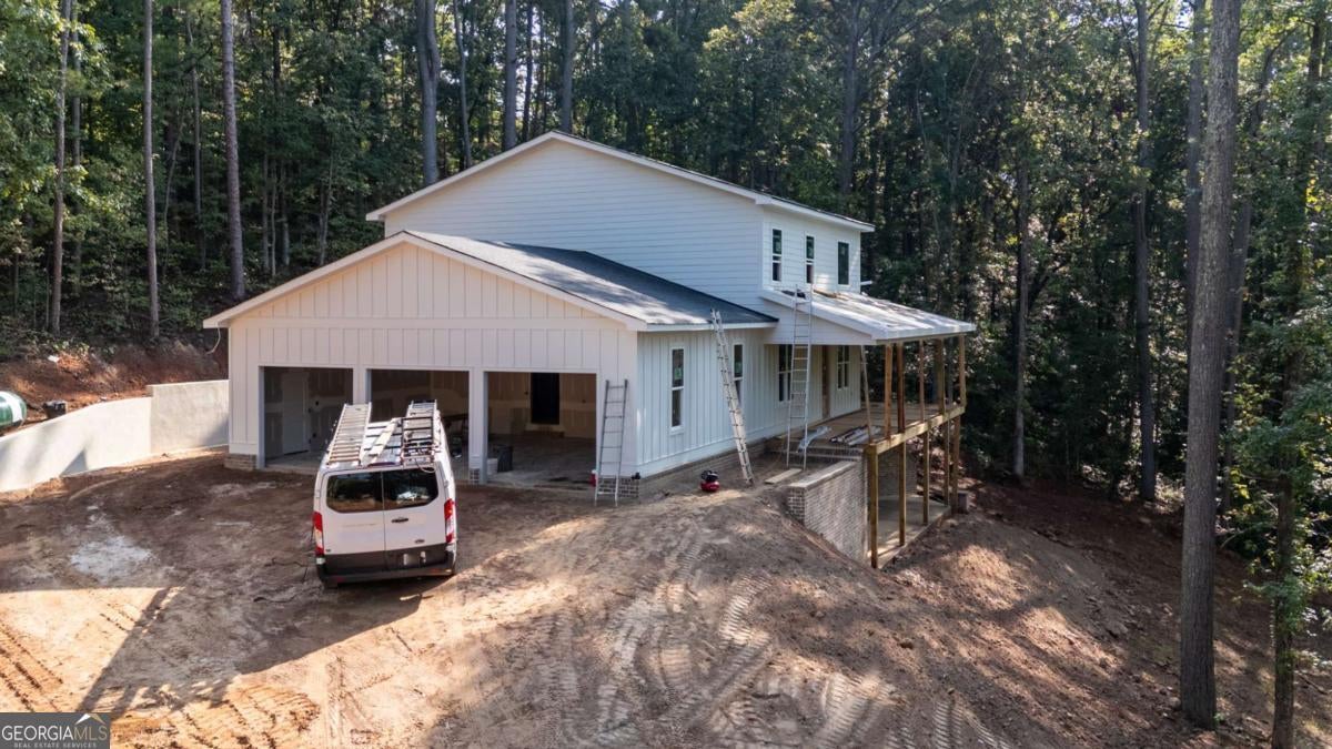 Welcome to your dream farmhouse retreat in Ball Ground! Nestled on 5.67 picturesque acres, this stunning 4-bedroom, 4.5-bath farmhouse-style home blends timeless character with modern luxury. Offering both space and privacy-with no HOA-this property is perfect for those seeking a lifestyle that feels like a true getaway. From the moment you arrive, the crisp white board-and-batten exterior with black trim, warm brick accents, and an oversized three-car garage set the stage for what's inside. Step through the front door, and you'll be greeted by an open-concept design filled with thoughtful details. The foyer leads to a spacious laundry room with backyard access and a double-door pantry. At the heart of the home, the kitchen dazzles with white cabinetry, a deep blue island, quartz countertops, upgraded appliances, and a custom vent hood-all bathed in natural and recessed lighting. The two-story great room features a cozy brick fireplace with a wood mantle, creating the perfect gathering spot. The main-level owner's suite offers a private retreat with a walk-in closet and spa-inspired bath, complete with an oversized shower, dual vanities, and a water closet. Upstairs, you'll find three additional bedrooms-one with its own ensuite and two with walk-in closets that share a spacious hall bath. The terrace level expands your living space with a large family room, full bath, wet bar, and walk-out access to a covered patio overlooking rolling pastures. There's also unfinished space waiting for your personal touch. Quality upgrades throughout include: 8-foot doors Luxury vinyl flooring (with tile in the owner's bath) Engineered flooring system Foam insulation Masonry brick construction for lasting durability Step outside and enjoy the beauty of the land: wide open grassland, a charming creek with a bridge, and even a larger creek beyond-an idyllic setting for a swing, barn, or horses. Located in sought-after Ball Ground, this property offers natural beauty, peaceful privacy, and easy access to local amenities. Don't just buy a home-create your homestead.