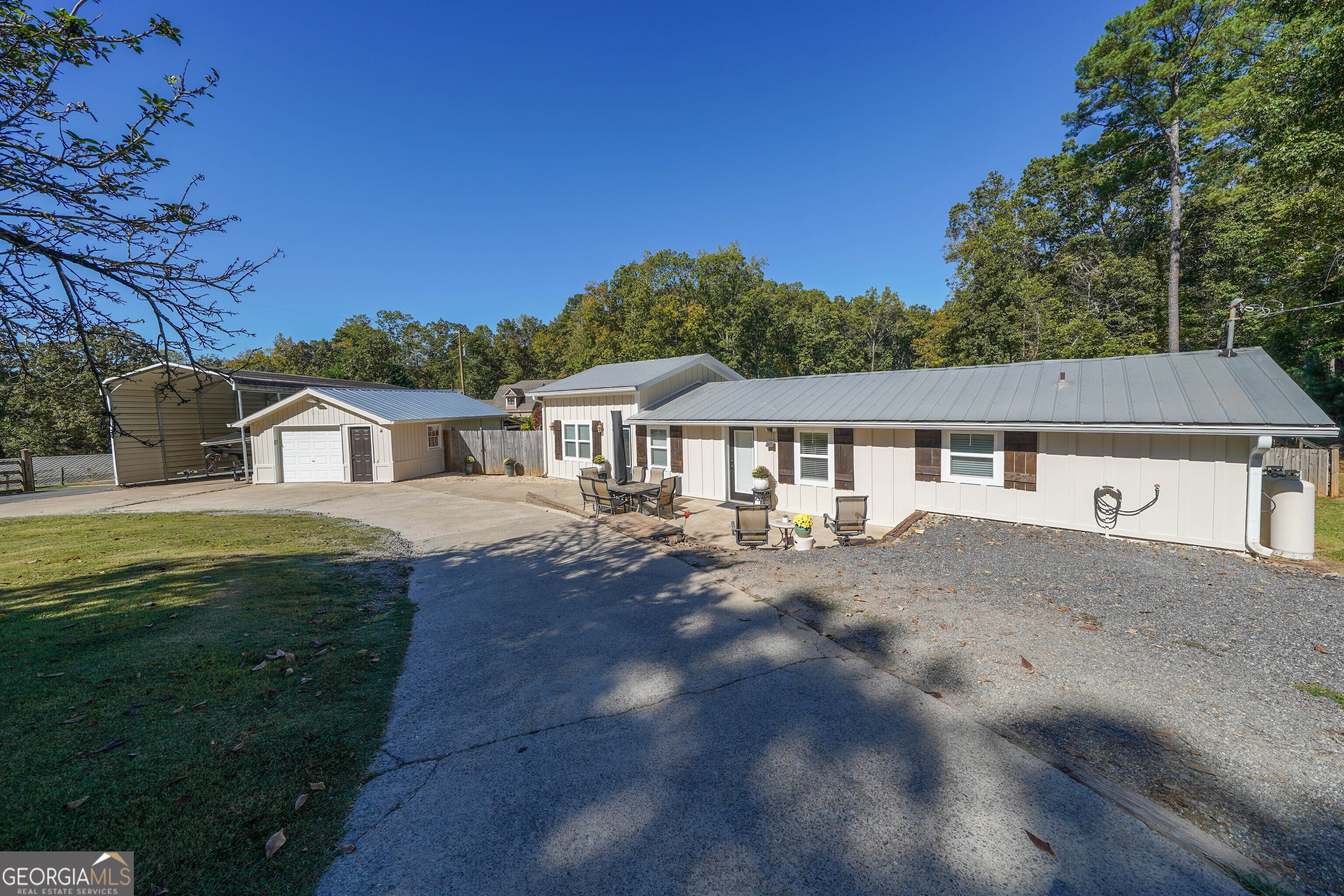 Adorable Rare Lake Allatoona Home with Private Dock - 1.892 Acres in Gated Community. Welcome to your perfect lake escape! Nestled on 1.7 flat and wonderfully usable acres in a private, gated community on Lake Allatoona, this charming 2-bedroom, 1-bath home offers comfort, privacy, and endless opportunities for lakefront living. Property Highlights: Private Dock with newer wood decking - just a short walk or golf cart ride away! Dock includes an 8x20 slip that easily accommodates up to a 24-ft boat. Spacious open layout with a large entertaining area and expansive deck. Private fenced yard for pets, kids, or quiet relaxation. Pre-Engineered Metal Building - Red Iron Building (30x40) with 12-ft doors & garage door opener - perfect for vehicles, a workshop, or lake toys. Additional storage building on separate meters + RV storage. Spray foam insulation keeps the home efficient & easy to heat/cool. Flexible layout allows for easy add-ons of extra bedrooms/bathrooms if desired. Well available on property (not currently in use). Freshly Painted in October 2025. Community has recently paved roads, gated security, and a peaceful, private setting. Whether you're looking for a primary residence or a lake getaway, this property has no restrictions and offers the perfect blend of comfort, storage, and lake access. Don't miss your chance to enjoy life on Lake Allatoona with your own private dock and plenty of space to grow! Call today to schedule a showing and make this adorable lake home yours!