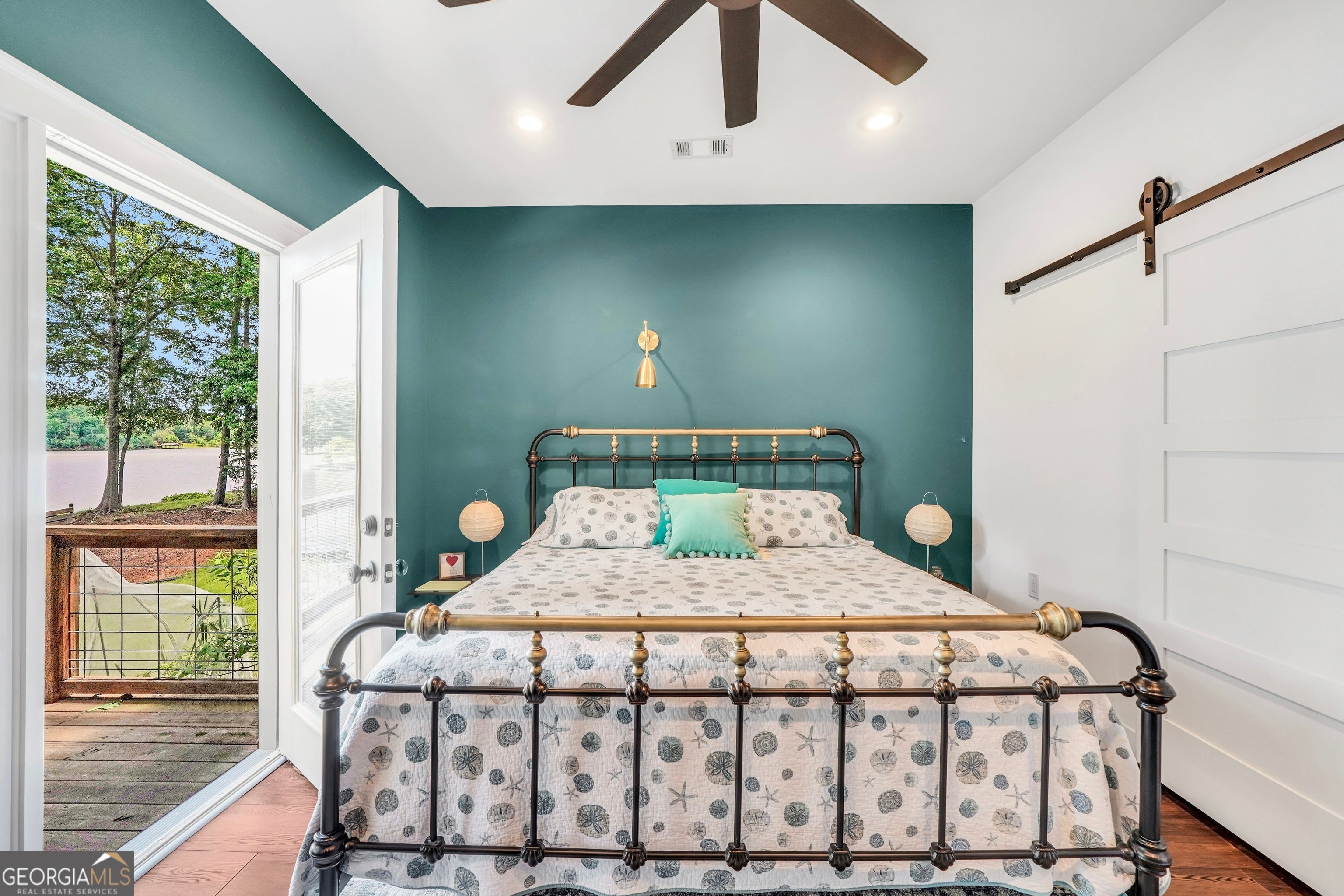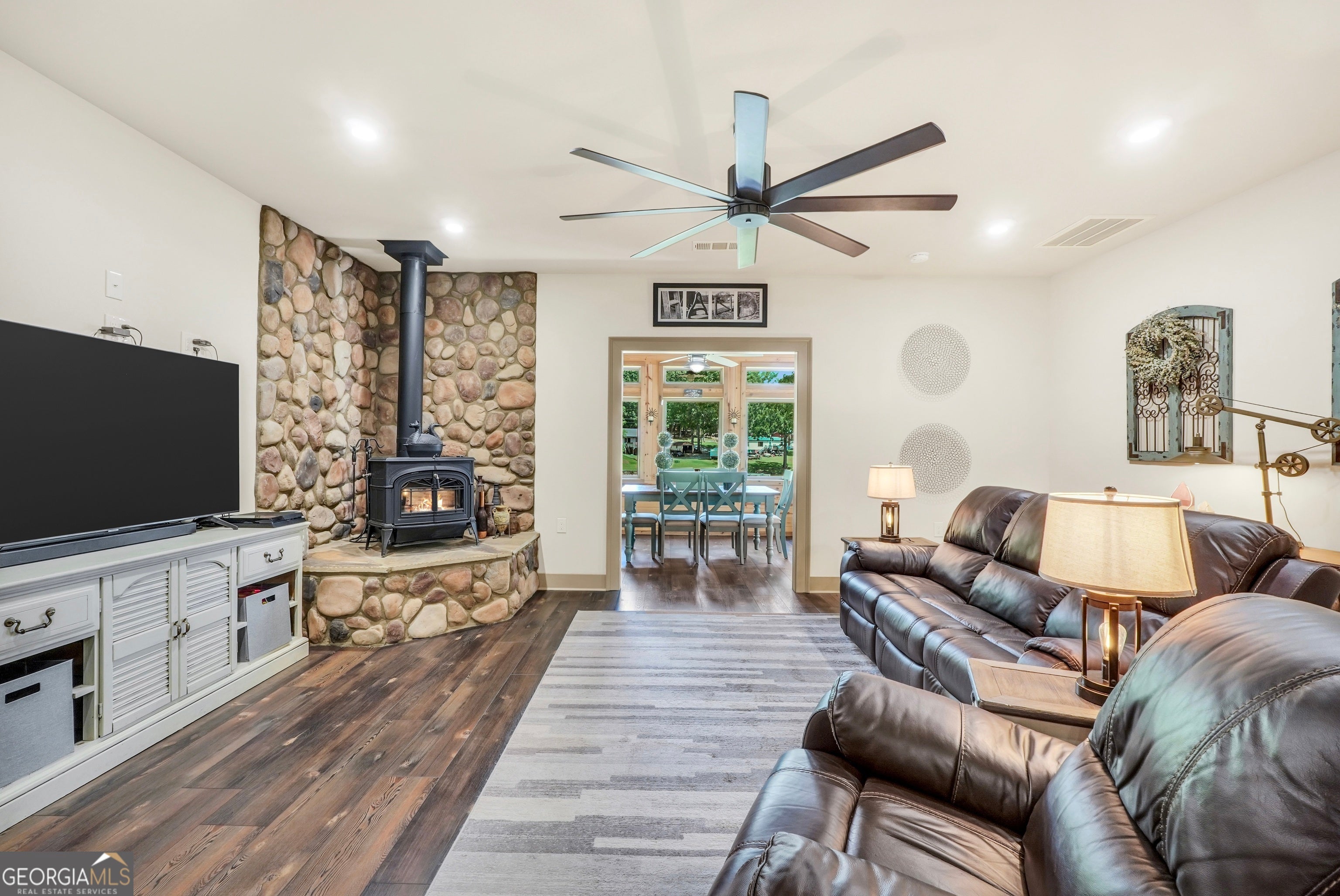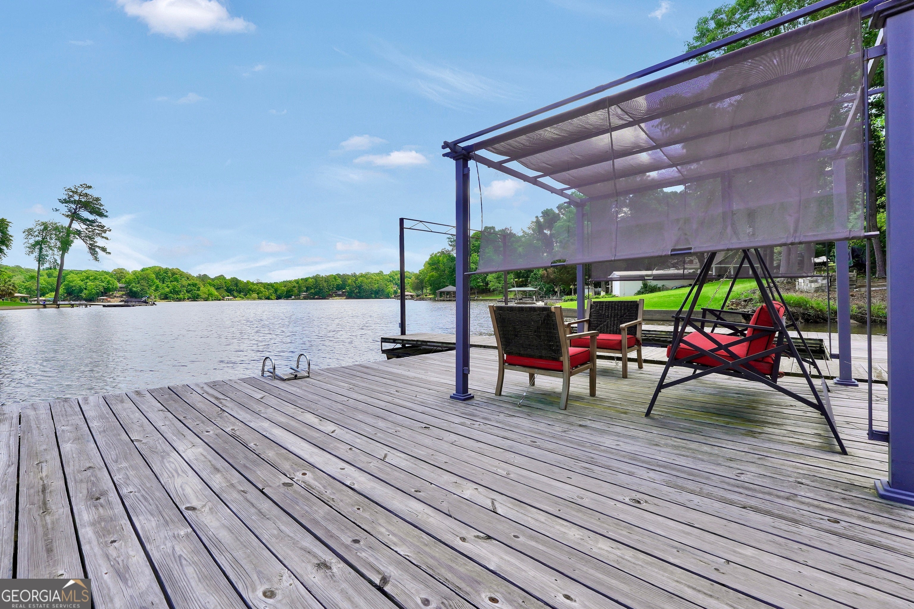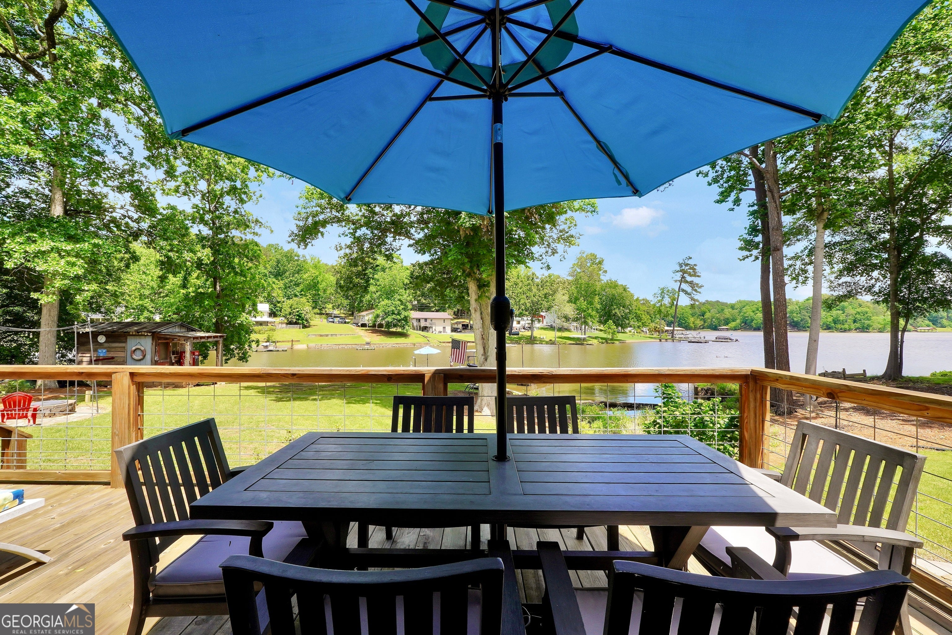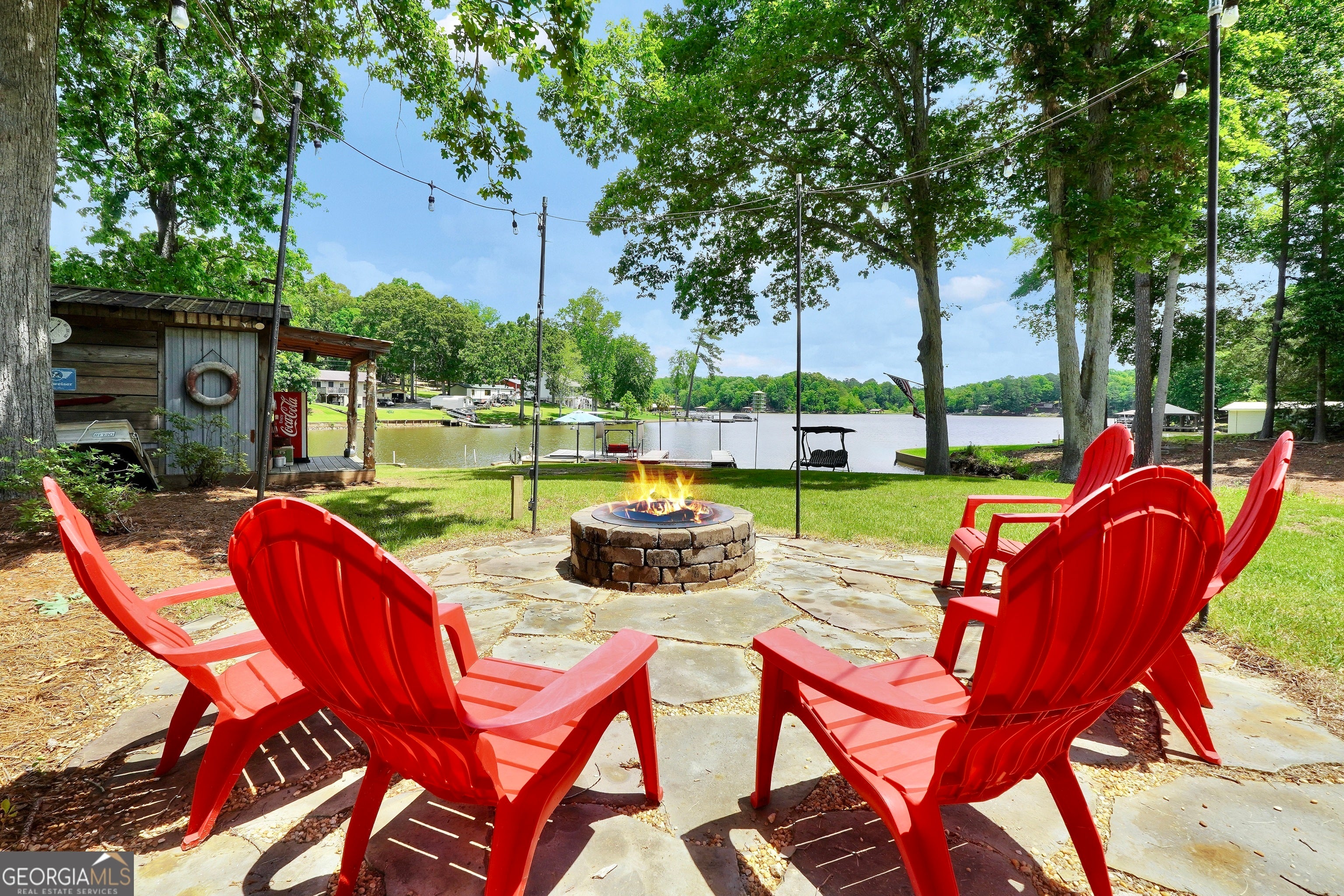 Welcome to this immaculate, custom-built lake home nestled on a DEEDED 0.64-acre lot with everything you need for laid-back, lakeside living. Enjoy your private dock with a single boat slip, a swim dock, a boat ramp, and a recently rebuilt seawall. Everything you need for lakeside fun. Step into lakeside living with this beautiful home that offers the perfect blend of rustic charm, modern comfort, spacious bedrooms with a flexible fourth room that offers plenty of possibilities for guests, hobbies, or a cozy bunk or lounge space. Inside, you're greeted with a warm, lodge-style atmosphere featuring 9' ceilings, reclaimed wood, metal accents, and high-end luxury vinyl plank flooring throughout. The kitchen is a standout with solid Hickory custom cabinetry, rich granite countertops, and Samsung Smart black stainless appliances. Cozy up in the spacious living area beside the Vermont Castings wood-burning stove or take in lake views from the light-filled entertaining room, ideal as a dining area, game room, or second living space overlooking the cove. The oversized primary suite includes a large walk-in closet and a spa-like bath with a roomy tiled shower. A versatile flex room off the main living area provides options for a second bedroom, office, or bonus game room. Bedrooms 3 and 4 are generously sized and share a Jack & Jill style closet. Outside, you'll find a detached 20x40 two-bay garage with power and workshop space, plus a powered fish shack and a Breeo smokeless fire pit. Perfect for evening gatherings. This home also features dual 200-amp panels, two 40-gallon water heaters, and energy-efficient spray foam insulation to keep utility costs low. This one-of-a-kind lake property offers the perfect balance of comfort, style, and location. Located in one of the area's most desirable spots, you'll love the easy access to the water and peacefull surroundings. Move-in ready and waiting for you to enjoy. Don't miss your chance to own a piece of Jackson Lake paradise!