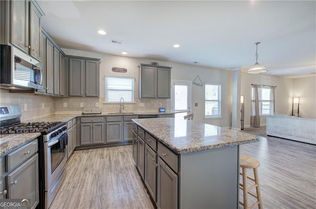 Beautiful 4-Bedroom, 2-Bath Home in a Prime Adairsville Location! Welcome to the spacious kitchen, featuring abundant cabinetry, stainless steel appliances, stunning granite countertops, and a large island with breakfast bar seating-perfect for entertaining or casual dining. The kitchen flows into the breakfast area, complete with French doors opening to the backyard, and continues into the expansive living room, where a cozy fireplace with gas logs sets the scene for family gatherings. Upstairs, the oversized primary suite offers a true retreat, complete with a spa-like ensuite bath boasting a double vanity, tub, separate shower, and a large walk-in closet. Three additional generously sized bedrooms provide plenty of space for family, guests, or a home office. A full guest bath with a tub/shower combo and a convenient laundry room are also located upstairs. Outside, enjoy a large, level backyard-fully enclosed with a privacy fence, concrete patio ideal for kids, pets, or outdoor entertaining. The lot sits at the edge of a quiet cul-de-sac, while the cozy covered front porch invites you to relax with your morning coffee. This home combines comfort, style, and functionality in a location you'll love due to its closeness to historic downtown Adairsville, and a quick drive to Cartersville, Calhoun, Rome and Canton.