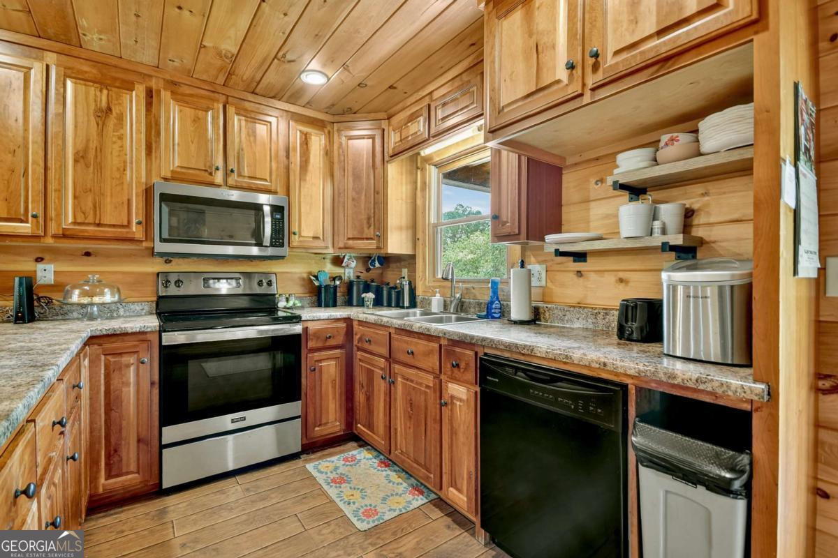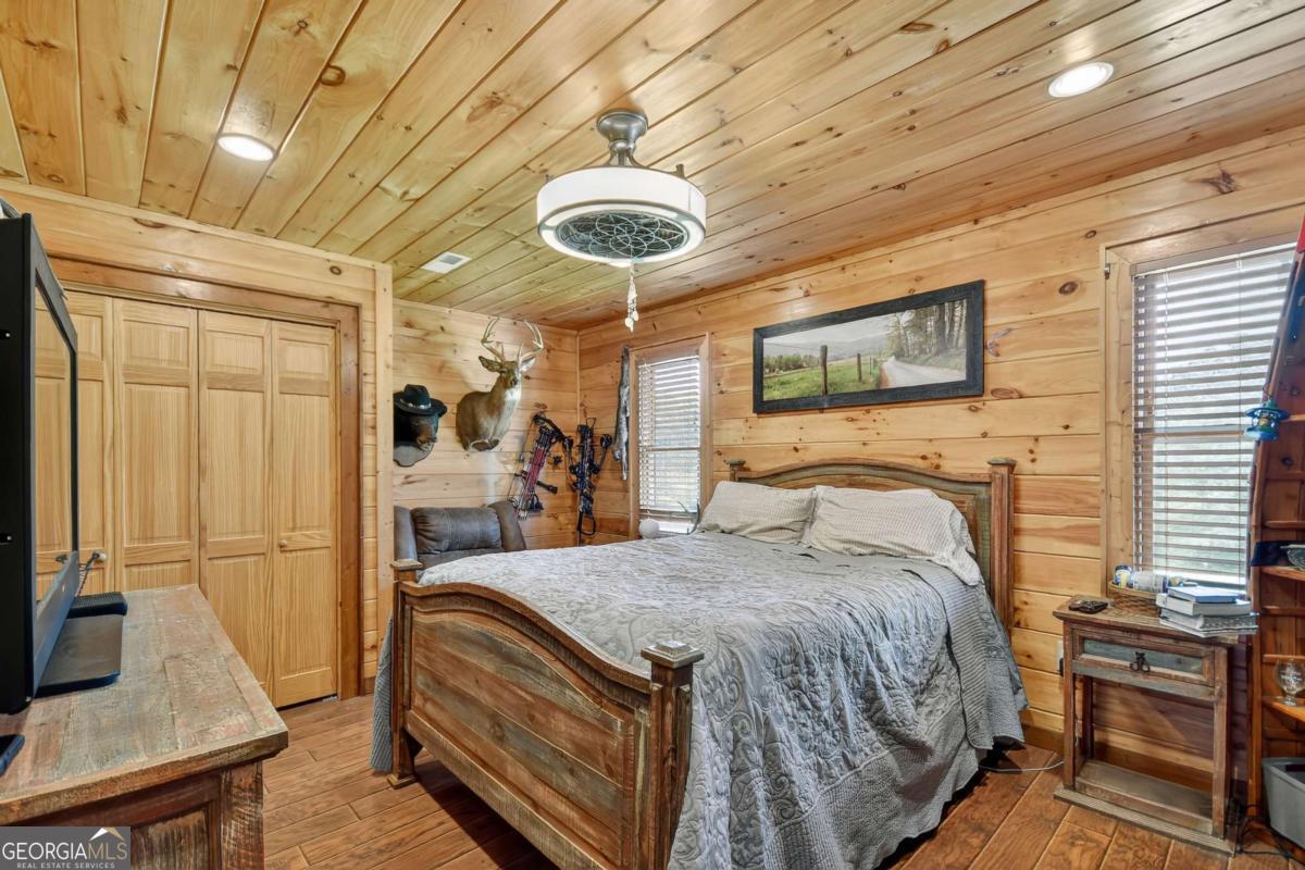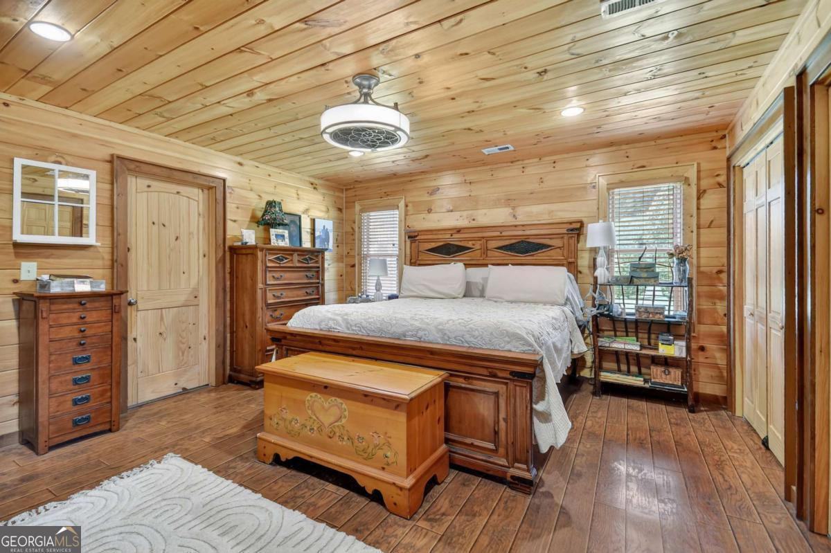 Rustic Charm Meets Modern Convenience - Just Minutes from Blue Ridge! Hard to find and full of character, this true log-sided 4-bedroom cabin offers the perfect blend of rustic charm and modern convenience. Home is handicap accessible. Nestled at the foot of the sought-after Gibbs Mountain View subdivision, this property enjoys the best of both worlds-close to a modern home development, yet outside the HOA for complete freedom and flexibility. Step inside to discover an open layout ideal for gathering with family and friends. The kitchen features a gas top stove, perfect for home chefs, while the living areas flow seamlessly for both cozy nights in and entertaining. Outside, a sprawling yard invites adventure, play, and endless leisure. With ample outbuildings for storage, plus parking in both the front and back, you'll have room for all your hobbies and gear. The home's private setting off a paved road ensures both easy access and the peaceful retreat you've been searching for. Whether you're looking for a short-term rental investment or your own full-time mountain escape, this cabin checks all the boxes. And with Blue Ridge less than 10 minutes away, you'll have quick access to dining, shopping, and outdoor adventures. Don't miss your chance to own this rare gem-a true log cabin with no HOA and unbeatable location!