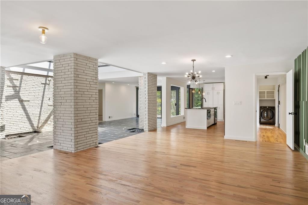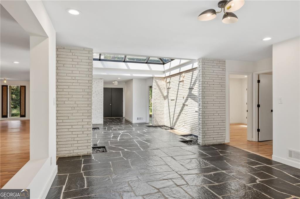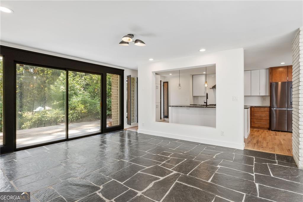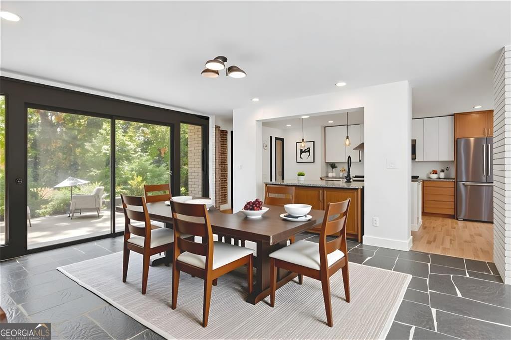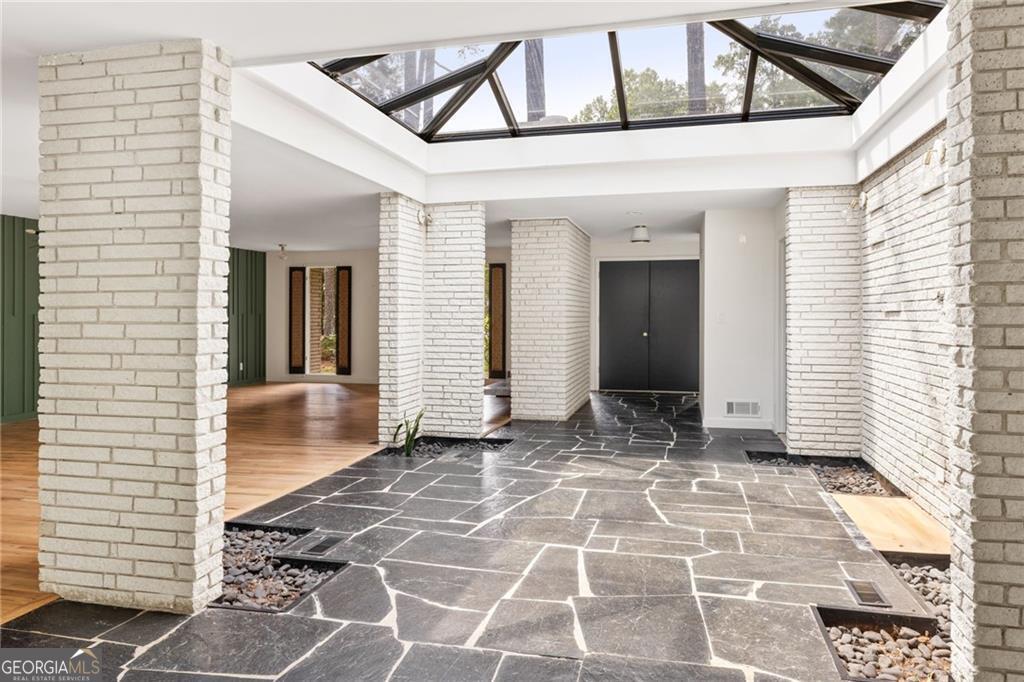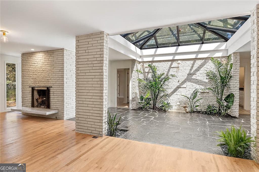 A Rare Mid-Century Modern Masterpiece - Step into living art at 1791 Breckenridge Drive, where architecture and nature move in perfect rhythm. Originally crafted in 1964, this residence bears the unmistakable imprint of Robert Green, the last apprentice of Frank Lloyd Wright and Atlanta's own visionary of mid-century modern design. True to Green's organic philosophy, the home breathes with its surroundings through natural stone, horizontal lines, and walls of glass. At its heart lies a dramatic central atrium, a Green signature, where a soaring glass ceiling pours light into the interiors, casting shifting geometric shadows that change with the day. Framed by natural stone and brick, this striking centerpiece dissolves the boundaries between indoors and out, echoing Wright's enduring influence. While its bones remain authentically mid-century, the home has been reimagined by acclaimed designer Wesley Williams, whose renovations honor Green's intent while layering in modern luxury. Williams' work elevates each space with thoughtful finishes, striking the perfect balance of preservation and reinvention, making the home as livable as it is collectible. With three bedrooms, two baths, and more than 2,200 square feet on a lush .60-acre lot, the residence offers serenity just minutes from the city. The living room is anchored by a brick fireplace and accented with Green's signature perforated panels, ornamental details that serve as both window coverings and sculptural design elements. True to its mid-century roots, the home offers two versatile dining and living areas, originally envisioned as a formal dining room and cozy breakfast nook, now reimagined as flexible spaces for entertaining, casual meals, or an inviting conversation area. From these flexible living areas, sliding glass walls open onto the expansive patio, an iconic mid-century gesture that blurs the line between indoor living and the natural landscape and highlighting a private, tree-framed backyard. The primary suite features abundant closet space and a sleek, renovated bathroom with double vanities and a step-down shower, while two additional bedrooms and a hall bath provide privacy and comfort. Nestled in the North Druid Hills Lakeside community, residents enjoy the prestige of the Lakeside school district, leafy established streets, and a neighborhood steeped in mid-century heritage. Opportunities to own a true piece of Atlanta's architectural story, with direct lineage to Frank Lloyd Wright's legacy, are few and far between. Whether you're a design devotee, a history collector, or simply someone searching for a home that feels like art, 1791 Breckenridge delivers an experience unlike any other.