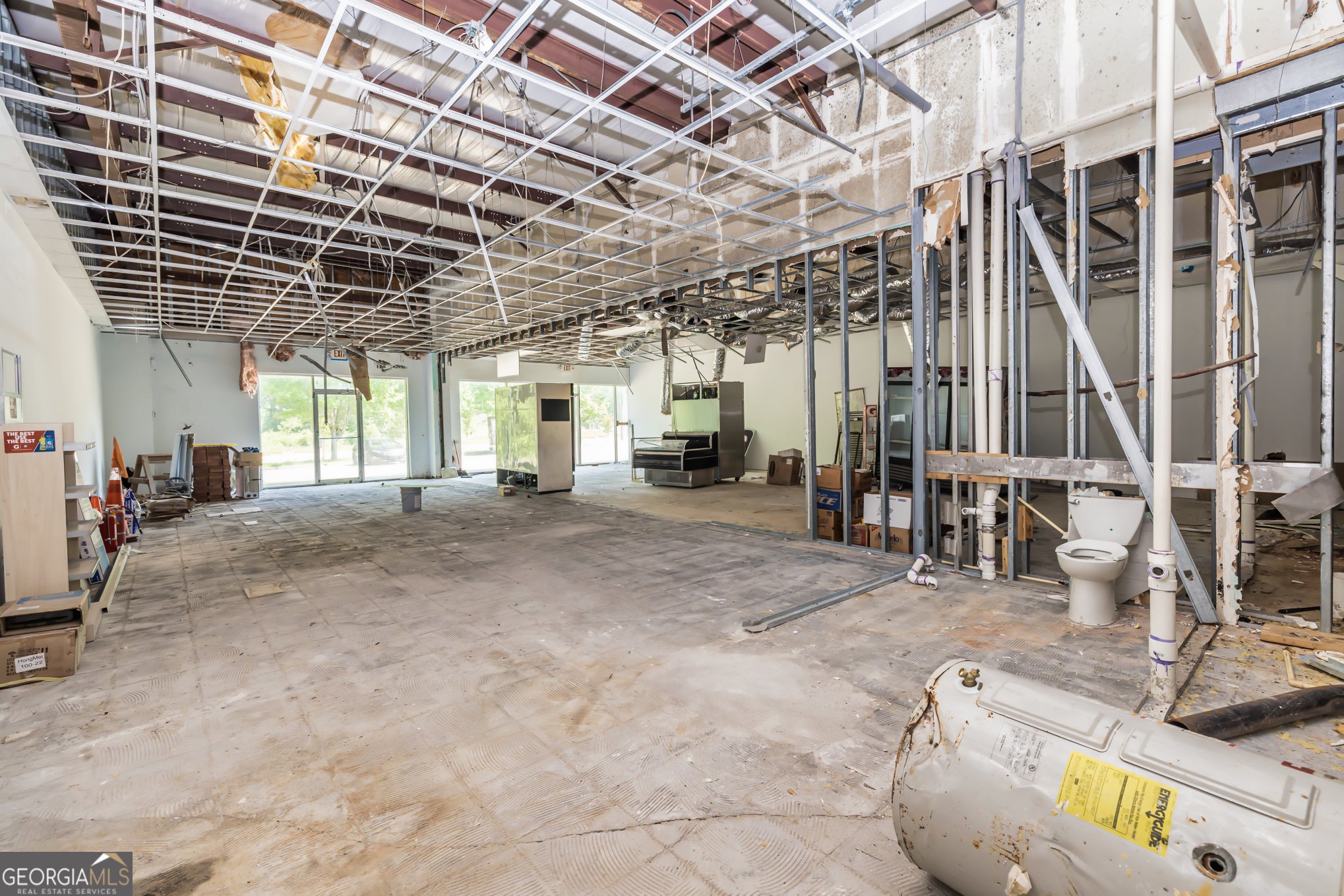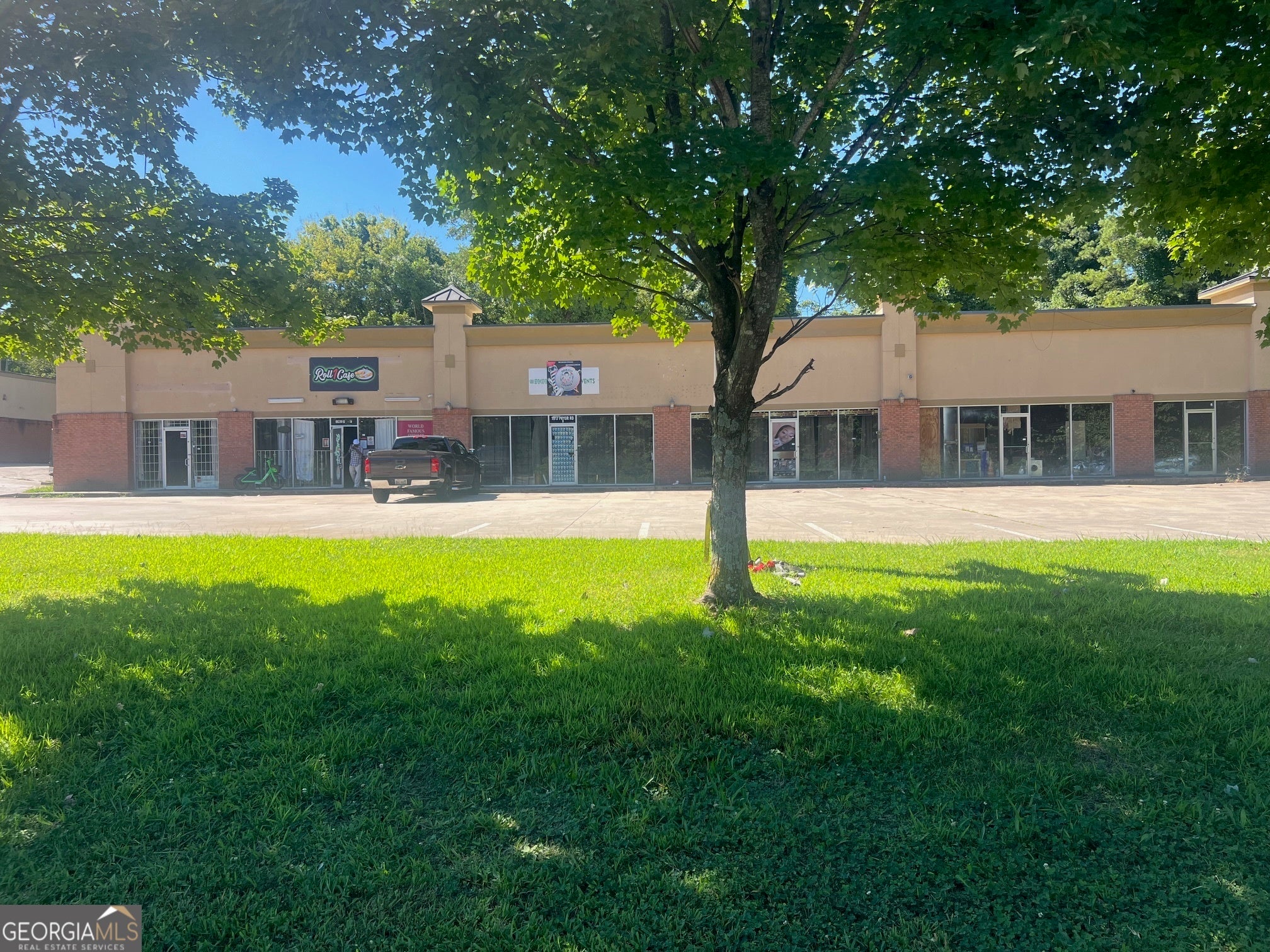 Just minutes from I-75/85 and downtown Atlanta, and located on a prominent corner directly across from Lakewood Amphitheater so your business will most certainly benefit from event traffic! **Suite G not yet pictured; coming soon** Available suites: E, G, H, I, & J. Pictured is Suite E (corner suite, 2 restrooms, 1050 sq ft, $2/sq ft month) Suite H (one restroom, 1615 sq ft, $1.55/sq ft month) and Suites I & J (shell condition, 2 restrooms, 2120 sq ft, $1.49/sq ft month)--can rent separately, or can rent G, H, I, & J together or any combination of contiguous suites to suit business needs. All spaces have 10 ft. ceilings & will need some sort of rehab or build-out ranging from light to heavy, so bring your contractor. Current anchor tenant is Roll 1 Cafe, serving wings, burgers, phillies, fish, eggrolls, and side dishes (no food establishments w/ similar offerings, please). Also shares the lot with a Karate Gym and Peachstate Auto Insurance, in addition to the Exxon Corner Store and Gas Station. These suites are perfect for salon/personal services, bank/financial institution, professional office or clinic, gym or other commercial recreation (some need special use permit), laundromat or dry cleaner, church, daycare or school/tutoring center, art or music studio, repair establishment, catering or bakery, deli or cafe, delivery based commercial kitchen, retail sales, and more. Please look up City of Atlanta Municode - Code of Ordinances Land Development Code - C1 Community Business District Regulations- for all permitted business uses. Business renter insurance policy, business licensing, and CO permits will be required, & credit, income docs, criminal background, and rental history will be evaluated for all prospective tenants ($75 app fee per leaseholder). Minimum 3 year lease, max 10 year. All spaces leased as-is with ongoing maintenance after opening to be tenant's responsibility (initial MEP & exterior repairs negotiable, owner to provide HVAC for all units!) CAM fees included in monthly lease payment will be tenant's share of property taxes plus water is billed separately at approx. $50/month & may be adjusted depending on water usage. Existing businesses w/ provable income that are seeking more space PREFERRED.