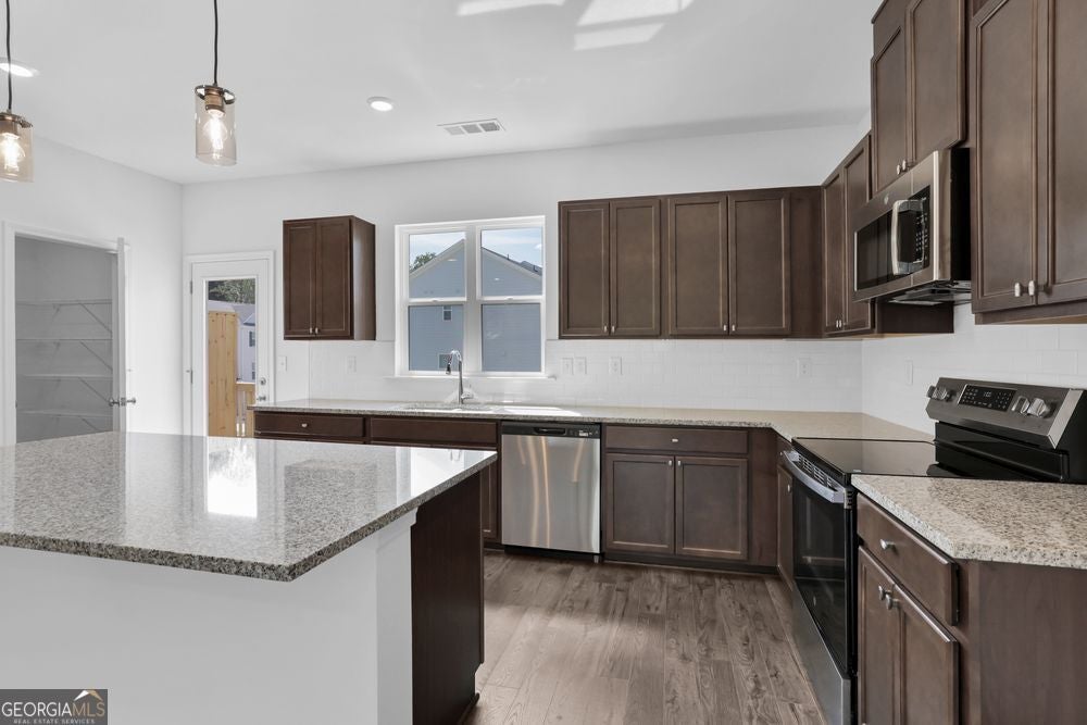 New Construction - Ready Now! Built by America's Most Trusted Homebuilder. Welcome to the Oconee at 209 Lytham Drive SE in Somerset at Veterans Memorial! This beautifully crafted new three-story townhome offers the perfect blend of comfort, style, and functionality. On the first floor, a private secondary bedroom with an en-suite bath creates an ideal space for guests or a quiet home office. The main level features an open-concept design where the kitchen flows seamlessly into the dining area and spacious great room, with direct access to an oversized deck, perfect for outdoor dining or relaxing in the fresh air. Upstairs, the luxurious primary suite boasts a dual sink vanity, a large shower, and an expansive walk-in closet. While an additional secondary bedroom with its own bath and walk-in closet provides even more flexibility. A convenient laundry room completes the top floor. With an attached two-car garage and ample storage, this home is designed for the way you live today. With I-285 nearby, you're just 20 miles from Downtown Atlanta, the airport, and Midtown, and 30 miles from Buckhead. Your weekends will be full of possibilities, immerse yourself in Midtown's cultural scene, enjoy Buckhead's upscale shopping and dining, or catch a flight with ease. Additional highlights include: laminate stair treads. MLS#10600684