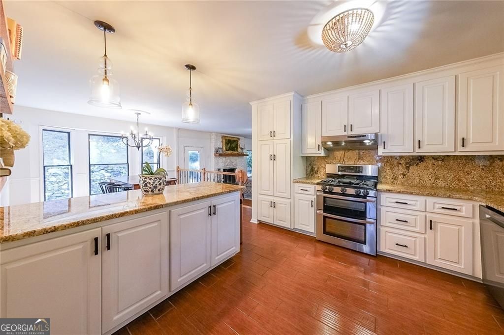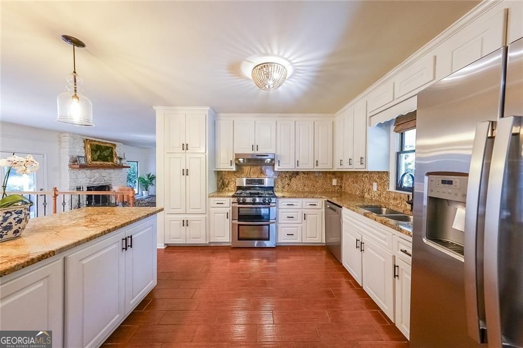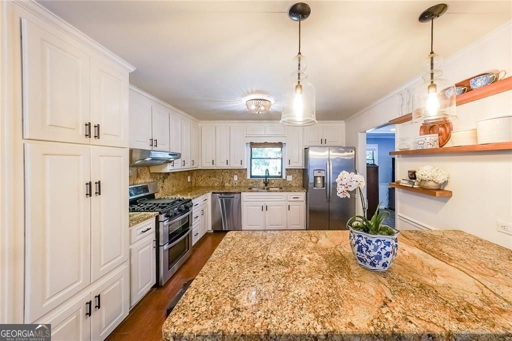 This is the renovated custom ranch that you have been waiting for. A complete 2022 Renovation.4 Bedroom / 3 Bath one level home nestled on a private 1.5 acre lot that is ideal for the camper and/or boat owner. All this, yet you are located just minutes from I-75, downtown Marietta, and Town Center. Open floor plan features a spacious Family Rm and adjacent Dining Room that offers an abundance of natural light. The Den is the perfect place for Saturday football get togethers and family events. The chef's kitchen features white cabinets, granite counters, SS appliances, and plenty of counterspace. The huge Master Suite is like no other and showcases a truly elegant Vaulted Master Bath that you won't find elsewhere. The 4th Bedroom / Office is perfect for the "work at home" professional. When it is time to relax, grab your cup of coffee and head out to the back patio and waterfall feature and koi pond.