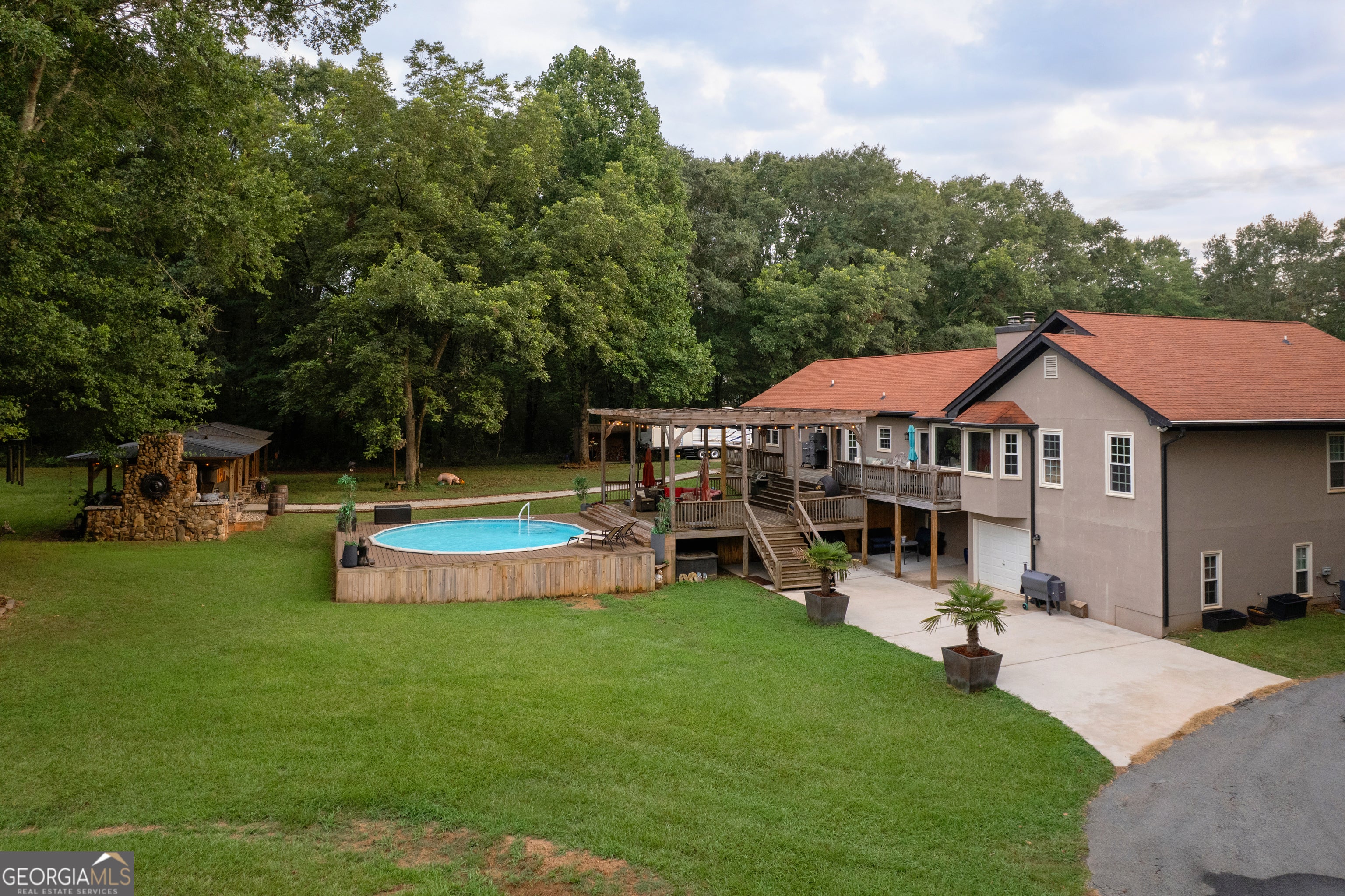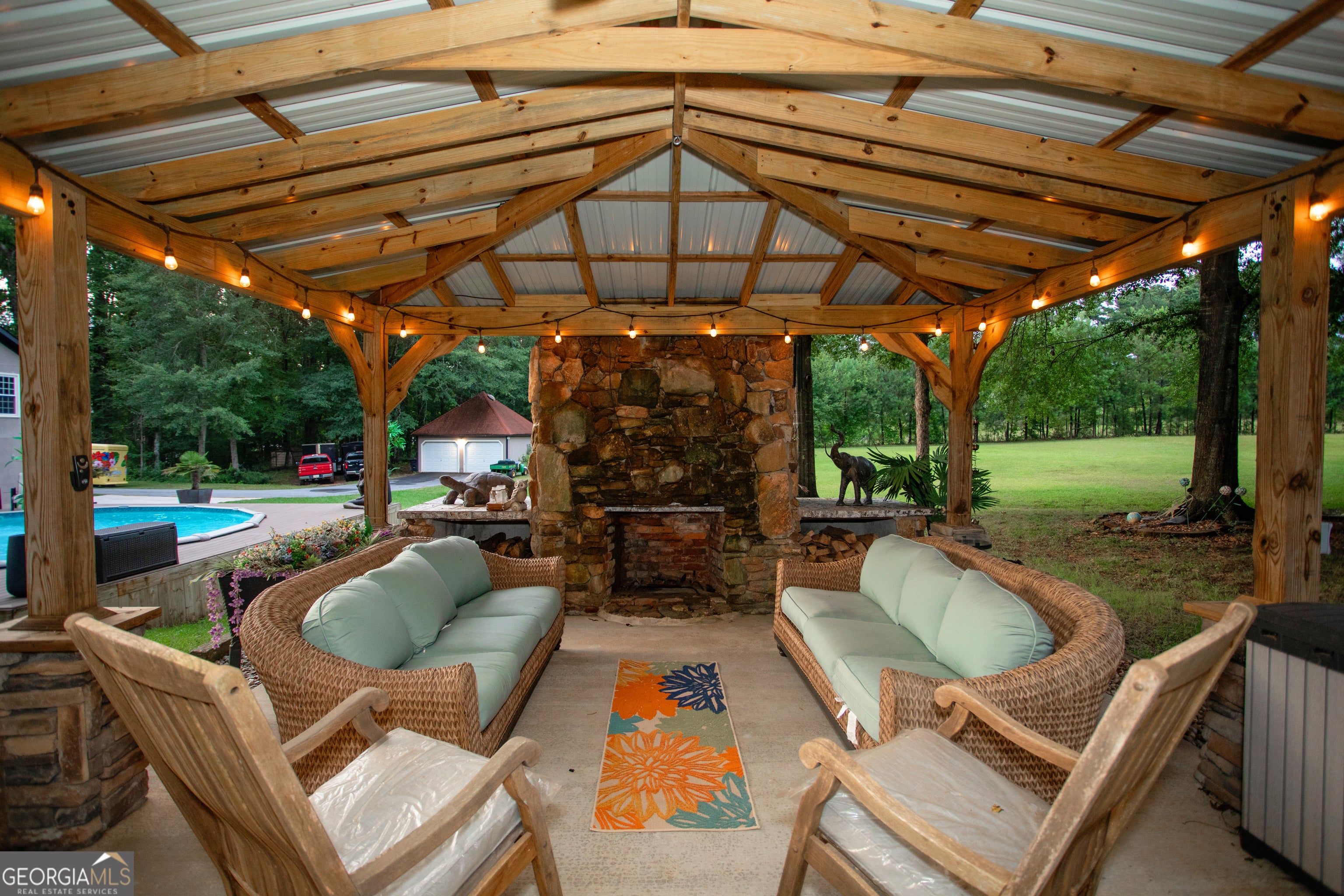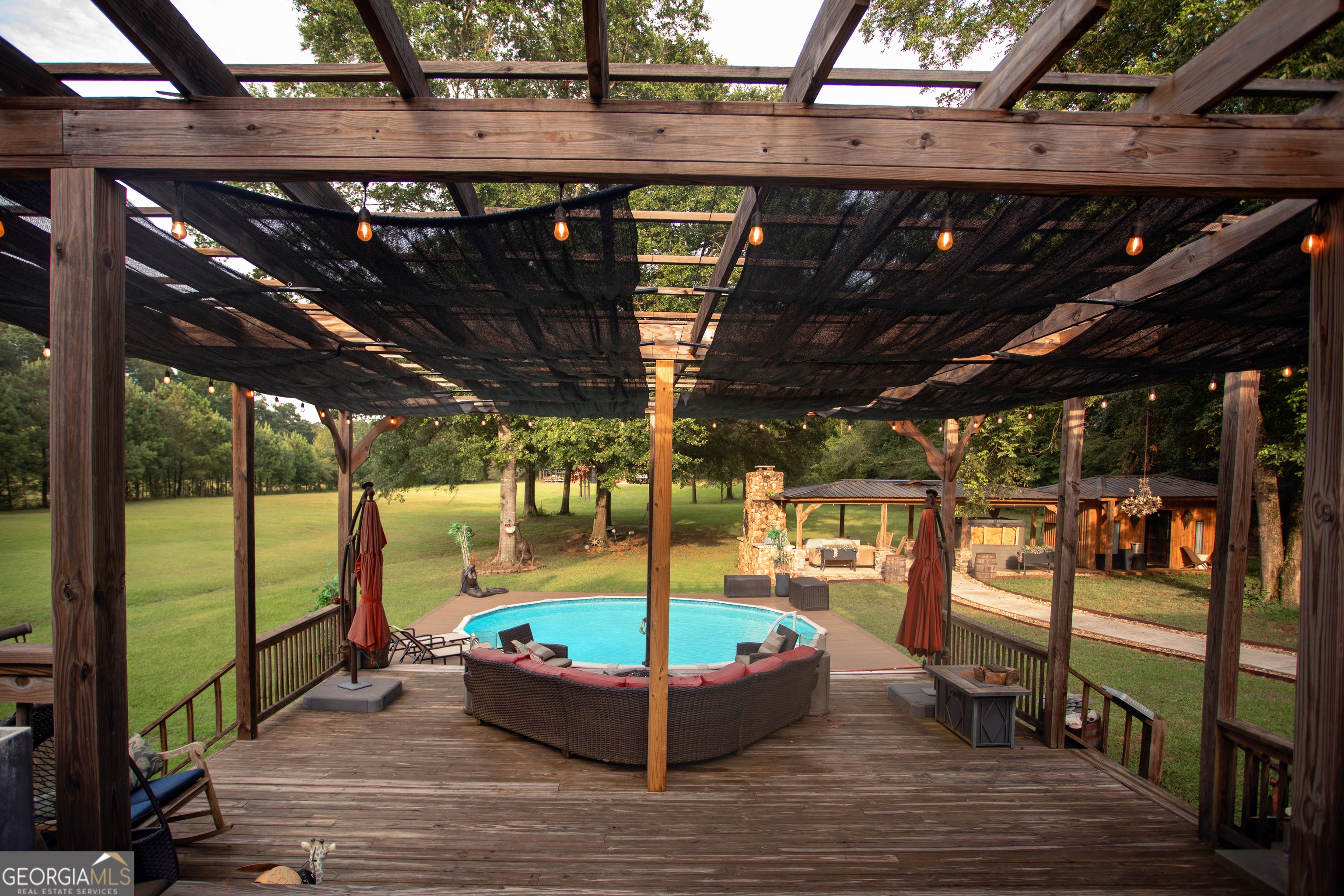 ***Open house Saturday 9/20/2025 1-3. ***Welcome to this exceptional estate, perfectly situated on 8.21 private acres in the highly sought-after Union Grove school district. From the moment you arrive, the quality and care poured into this immaculate home are undeniable. Thoughtful upgrades and elevated designer finishes are found throughout, with a chef's dream kitchen at the heart of the home - ideal for both everyday living and entertaining. The luxurious primary suite offers a true spa-like retreat with its stunning stone freestanding tub, oversized 7-foot shower with dual rain heads, and elegant finishes throughout. Rich hardwood floors flow seamlessly across the main level, complemented by two inviting wood-burning fireplaces that add warmth and charm. The terrace level offers a fully equipped second kitchen featuring granite countertops, a leathered granite island, farmhouse sink, full-size pantry, dishwasher, and space for a full-sized refrigerator - providing true independence and flexibility. This level also includes spacious living and dining areas, a generously sized bedroom, and an oversized bathroom with double vanities - making it ideal for in-laws, guests, or even income potential. With its own laundry and private entrance, this space feels more like a second home than a basement. Step outside and you'll discover outdoor living at its finest. A sparkling above-ground pool with surrounding deck, a relaxing hot tub, and a charming pergola with natural stone fireplace create the ultimate entertaining space for gatherings year-round. Additional highlights include a 2-car attached garage, 2-car detached garage, and a 1,500 sq ft unfinished area with drive-in boat door - perfect for storage, hobbies, or future possibilities. Zoned AR, horses are welcomed, and a barn is already in place. This rare offering blends luxury, privacy, and versatility in a picturesque, highly desirable location.