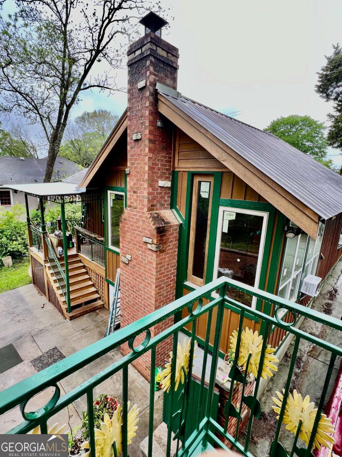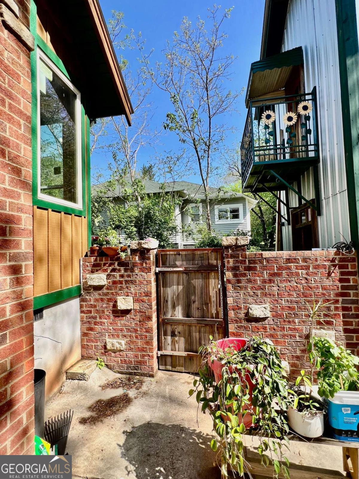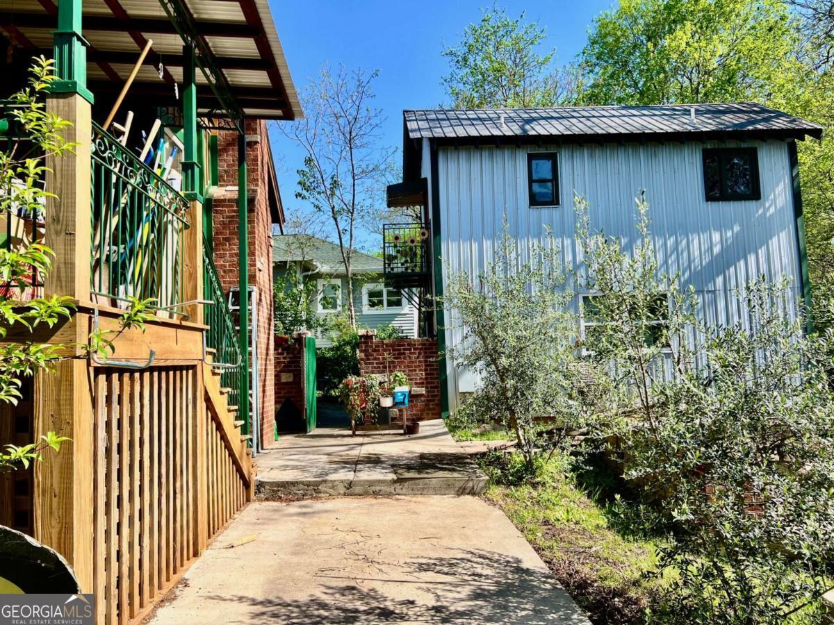 Very Unique Intown Property, located 2 blocks from Downtown Athens, with 2 homes, an Artfully Restored Historic Cottage, and a Modern 2-story Guest House with 2 studio apartments, 1 on each level, creating interesting possibilities for a compound, office/studio space, or rental income. Additionally, theres a large storage building/workshop, multiple patios, porches, balcony, a large 3 tall stone raised garden in center of courtyard, a cobblestone walkway, both front and back yards are fenced, and apx 15 x 70' driveway. The yard is landscaped with a plethora of fruiting trees: Fig, Peach, Nectarine, Apple, Pear, as well as Blueberry bushes, and a Grape Arbor. Local Artists/Artisans have contributed creative touches throughout the property: custom decorative metal railing on back porch of main house, a metal sunflower balcony and porch railing on guest house porch and balcony, colorful tile murals in bathroom, sunroom floor, and kitchen backsplash, a wide array of wood species and custom woodwork throughout. The historic primary house has undergone major renovation: features a front courtyard, sunroom, open floor-plan, tall ceilings, French doors, beautiful wood floors, European style shutter windows, new stainless appliances, artfully designed tile bath, a Great Room w vaulted wood ceilings & newly built, exposed brick/stone FP; this room opens to back porch which sits privately with a high view of a beautiful courtyard/fenced back yard. The guest house has an upstairs studio apartment with a porch & balcony; the interior is entirely open, all wood floors, walls, and vaulted ceiling. The primary level, accessed independently from upstairs, is one big room with full bath & w/d. It provides an excellent flex space which has a diversity of potential uses: a home office, art studio, gym, band practice/music studio, home hair salon, rental income ( use your imagination ). A 3rd structure is a large storage space or workshop. This Artisan Urban Farm Sanctuary is just blocks from: the heart of Downtown, UGA Arches/North Campus, Civic Center, multiple Parks, Oconee River, Greenway & Firefly Trails, Sanford Stadium, and an internationally recognized music/arts scene, diverse culinary offerings, along with local breweries/pubs. Finding such a one-of-a-kind, arts-centric property, w a diversity of potential uses, especially this close to Downtown is a rarity. Location, Location, Location.