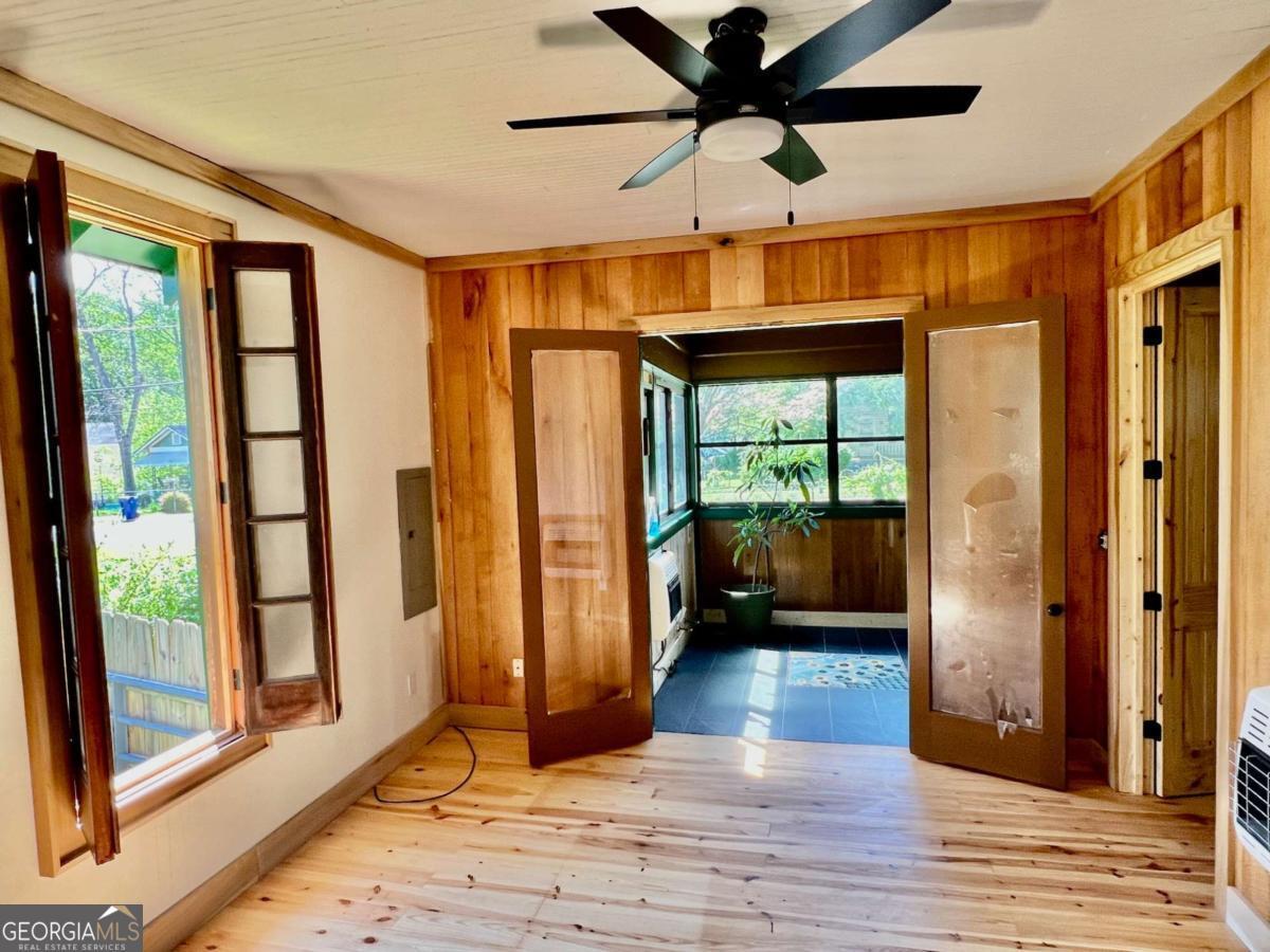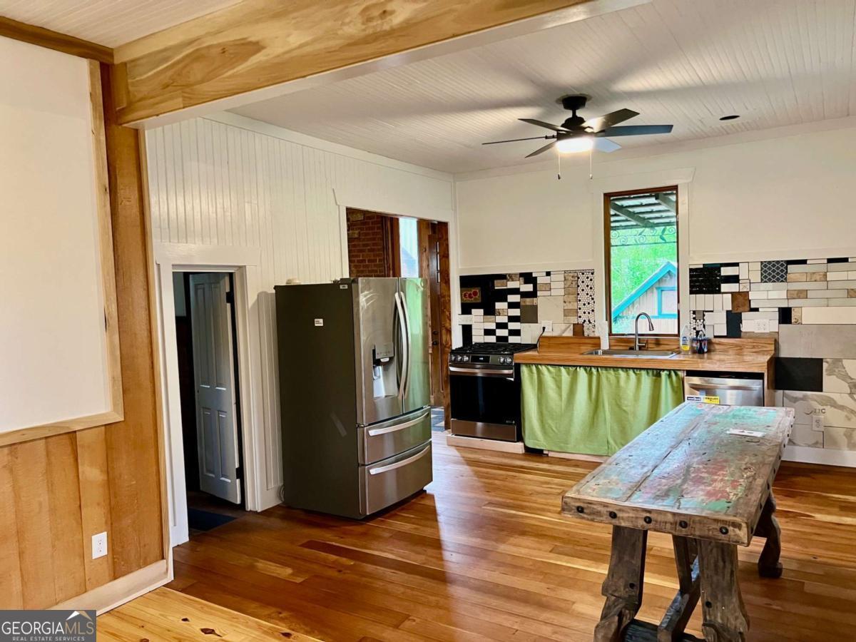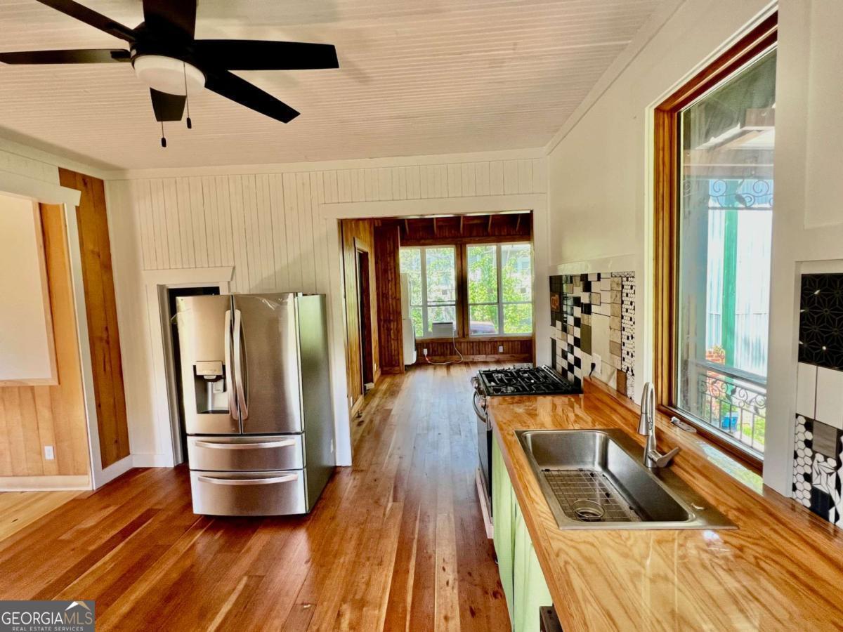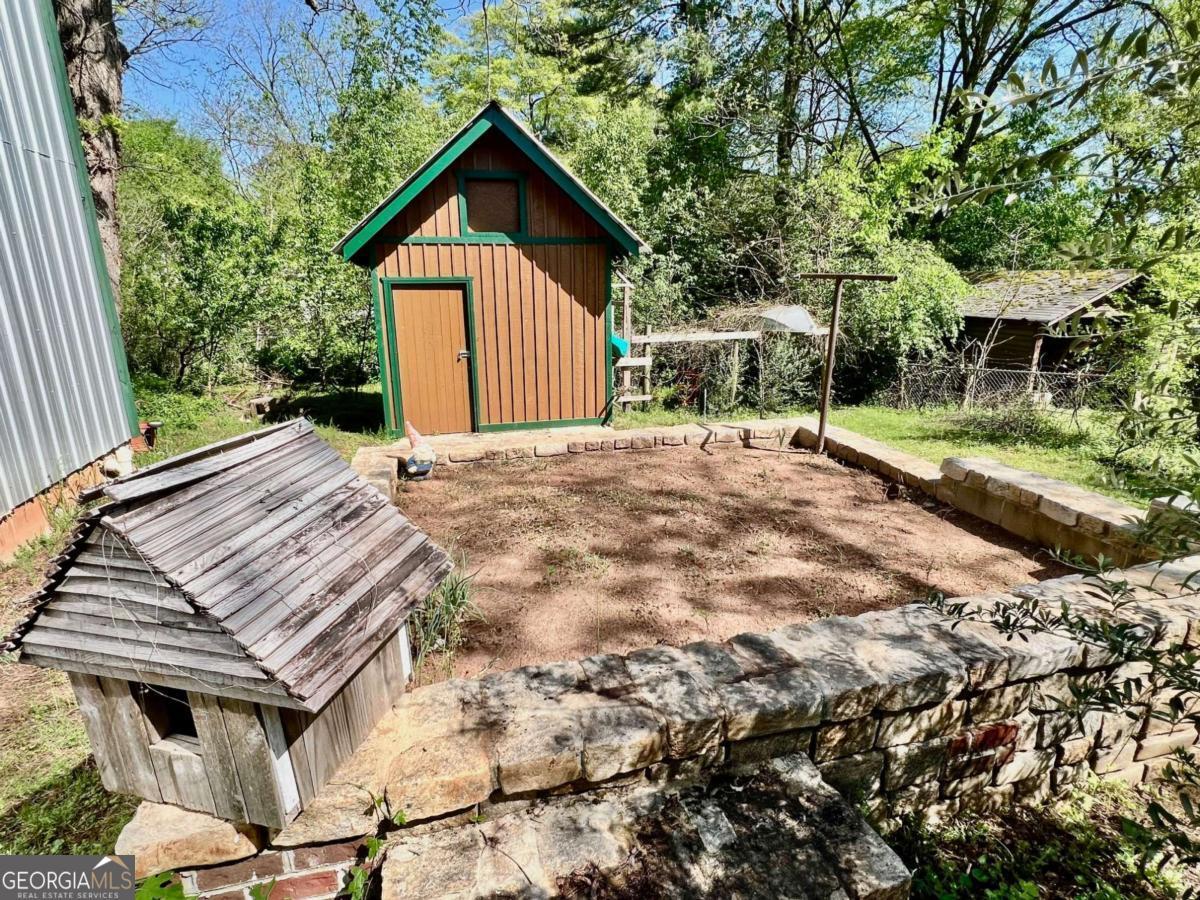 Very Unique Intown Property, located 2 blocks from Downtown Athens, with 2 homes, an Artfully Restored Historic Cottage, and a Modern 2-story Guest House with 2 studio apartments, 1 on each level, creating interesting possibilities for a compound, office/studio space, or rental income. Additionally, theres a large storage building/workshop, multiple patios, porches, balcony, a large 3 tall stone raised garden in center of courtyard, a cobblestone walkway, both front and back yards are fenced, and apx 15 x 70' driveway. The yard is landscaped with a plethora of fruiting trees: Fig, Peach, Nectarine, Apple, Pear, as well as Blueberry bushes, and a Grape Arbor. Local Artists/Artisans have contributed creative touches throughout the property: custom decorative metal railing on back porch of main house, a metal sunflower balcony and porch railing on guest house porch and balcony, colorful tile murals in bathroom, sunroom floor, and kitchen backsplash, a wide array of wood species and custom woodwork throughout. The historic primary house has undergone major renovation: features a front courtyard, sunroom, open floor-plan, tall ceilings, French doors, beautiful wood floors, European style shutter windows, new stainless appliances, artfully designed tile bath, a Great Room w vaulted wood ceilings & newly built, exposed brick/stone FP; this room opens to back porch which sits privately with a high view of a beautiful courtyard/fenced back yard. The guest house has an upstairs studio apartment with a porch & balcony; the interior is entirely open, all wood floors, walls, and vaulted ceiling. The primary level, accessed independently from upstairs, is one big room with full bath & w/d. It provides an excellent flex space which has a diversity of potential uses: a home office, art studio, gym, band practice/music studio, home hair salon, rental income ( use your imagination ). A 3rd structure is a large storage space or workshop. This Artisan Urban Farm Sanctuary is just blocks from: the heart of Downtown, UGA Arches/North Campus, Civic Center, multiple Parks, Oconee River, Greenway & Firefly Trails, Sanford Stadium, and an internationally recognized music/arts scene, diverse culinary offerings, along with local breweries/pubs. Finding such a one-of-a-kind, arts-centric property, w a diversity of potential uses, especially this close to Downtown is a rarity. Location, Location, Location.
