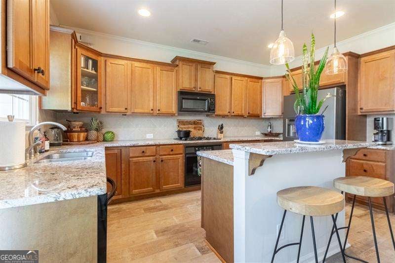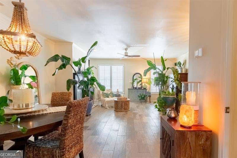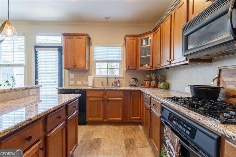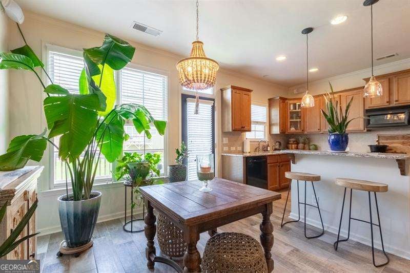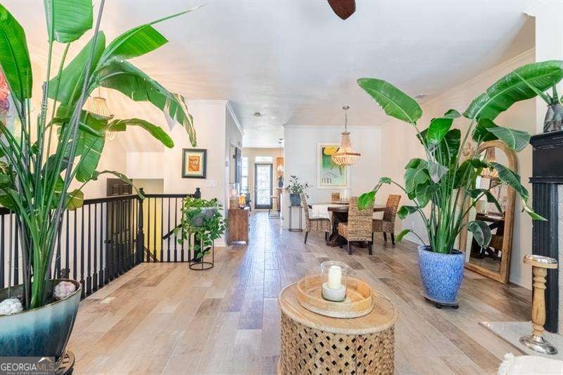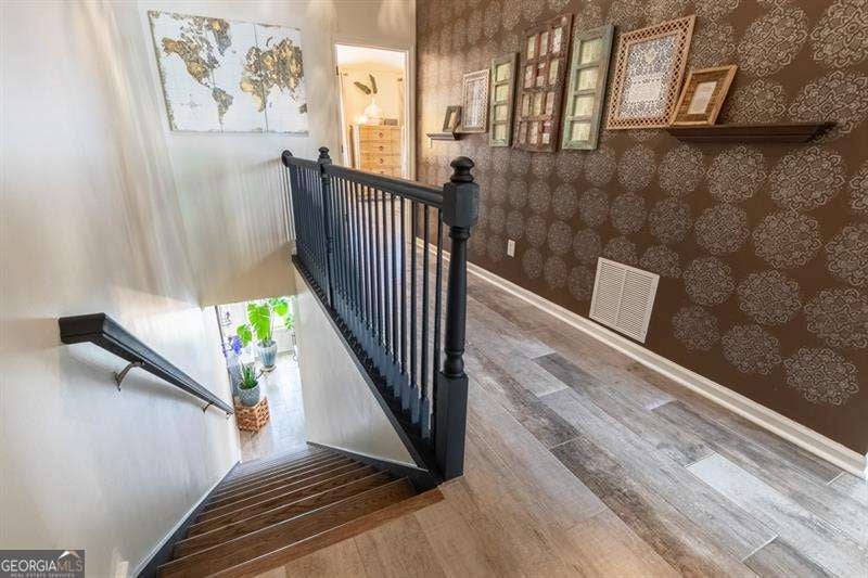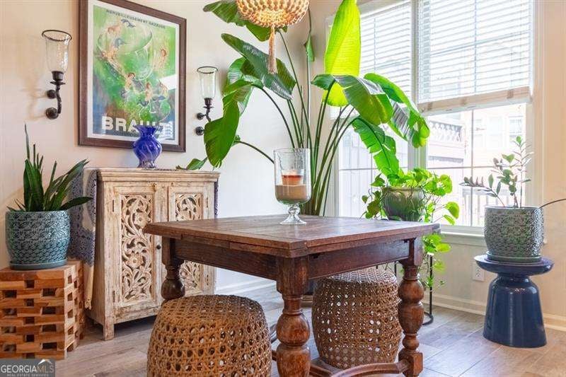 Welcome to 6426 Queens Court Trace a one-of-a-kind artistic sanctuary in the heart of the sought-after Providence community in Mableton. For the soulful traveler, creative spirit, or lover of the beautifully unique, this home is the home for you. With three bedrooms, 3.5 baths, and close to 2,100 square feet of curated living space, every inch is infused with style, story, and soul. Step inside and be mentally transported to a space that feels light years away from the hustle of city life. From custom hand-painted walls and a matte black distressed fireplace with Moroccan tile surround, to bold bohemian light fixtures and moody matte black stairs, this home blends world-traveler vibes with cozy sophistication. The hallway is a gallery in itself, hand-painted mandalas lit by imported Mexican hand-punched tin lanterns that cast the most enchanting glow. The kitchen is designed for the expressive home cook, with extensive granite countertops, gas cooktop, and ample solid wood cabinetry. There is no shortage of space to create meals that excite your friends and family. For an added bonus the slate-finish fridge is compliment of the seller! The primary suite is nothing short of a retreat with massive jetted soaking tub, oversized stall shower, custom painted with distressed finish dual vanities and mirrors, and a shimmering Capiz shell chandelier. A primary bathroom that feels like you have escaped on vacation every day. That is not all! wait until you discover the basement suite -the home's third bedroom and a perfect cozy hide away. With its own full bath, wood look ceramic tile floors, dry bar with mini fridge, hand-painted exposed brick wall, and a separate exterior entrance to a serene lower-level patio, it is ideal for guests, creative studio space, or even roommate potential. This home has been pre-inspected by Atlanta Property Inspections with a clean report available. The seller is sweetening the deal with a 1-year AHS home warranty. Major systems are worry-free with a new HVAC compressor and components (with surge protector) and 2-year-old water heater and newer roof. The HOA takes care of landscaping and exterior building maintenance. That means more time to do what makes your spirit happy! Outside your door, the Providence community is like your own private resort: two pools, five tennis courts, a pickle ball, gym, clubhouse, walking trails, and nature paths. The social calendar is alive with movies on the lawn, food truck days, holiday festivals, and neighborhood events that turn neighbors into friends. And the location? Just 5 minutes to I-285 with easy access to downtown Atlanta, Buckhead, Midtown, The Battery, shopping, and dining-everything you need, and everywhere you want to go. Let us not forget how easy it is to get to Hartsfield Jackson Airport. A short 15-minute drive and you are on the next flight! 6426 Queens Court Trace is not just a home: it is an escape from the mundane. A home filled with color, comfort, connection, and creativity. Come fall in love with this vibrant gem in one of Cobb County's most treasured gated communities, Providence.