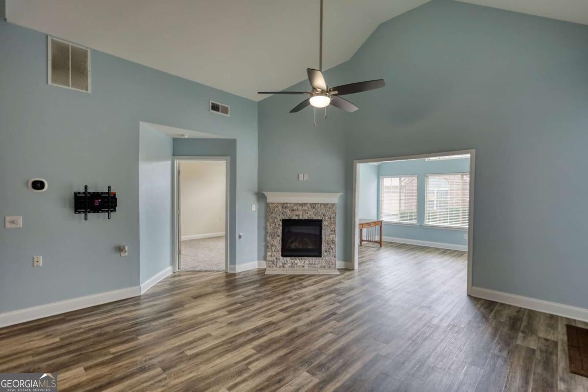 Don't miss your chance to own this impeccably maintained home in the highly desirable 55+ Silver Summit Community in Conyers, GA! Located in the newer Phase II section, this spacious and thoughtfully designed unit offers modern comfort, accessibility, and low-maintenance living! The open-concept floor plan and open, airy living spaces is ideal for both entertaining and everyday life! Seamlessly connecting the expansive living and dining areas allows for plenty of natural light to flow throughout! A bright and inviting sunroom provides the perfect spot for morning coffee or evening relaxation. The well-appointed kitchen features two pantry closets and a large walk-in pantry/laundry, offering exceptional storage space. The home also includes a handicap-accessible layout designed for ease and comfort. Additional peace of mind comes with a roof that is less than 10 years old. Silver Summit offers an array of resort-style amenities, including a swimming pool, fitness center, clubhouse with an entertainment space, and a fully equipped community kitchen-ideal for social events and neighborhood gatherings. Tucked within a quiet and friendly neighborhood, this home presents the perfect blend of tranquility and active living. Opportunities like this are rare-schedule your private showing today before it's gone!