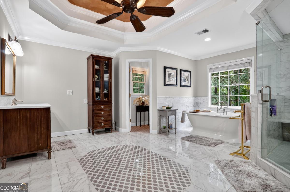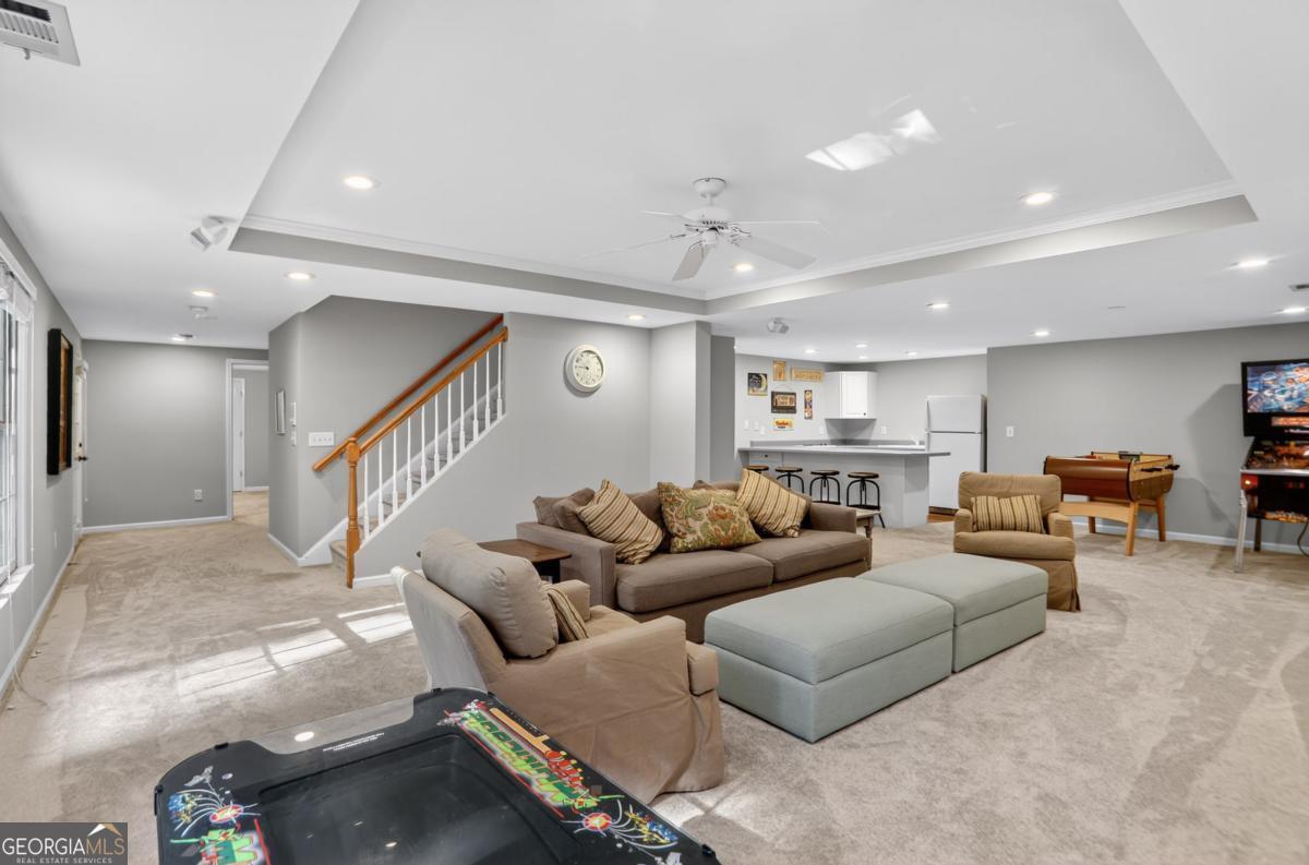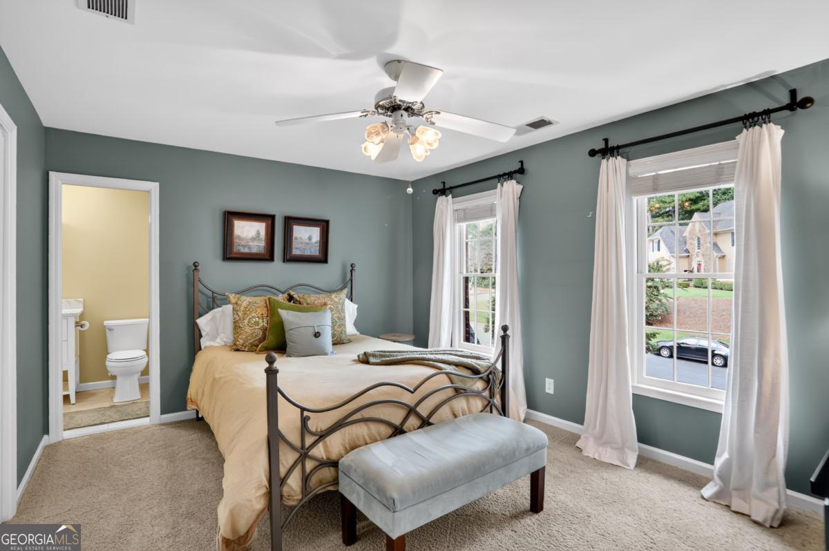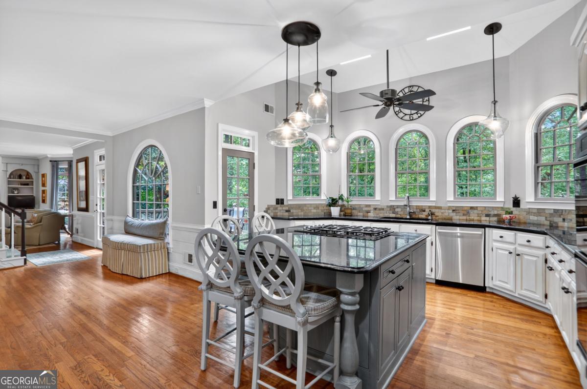 Tucked away on a quiet street in one of Roswell's most welcoming neighborhoods, this 5-bedroom, 4.5-bath home is made for family living. With over 5,100 square feet of thoughtfully designed space, it's where everyday comfort meets neighborhood charm. The heart of the home is the kitchen that extends into a casual dining area with the living room just beyond. Step right out onto the deck overlooking the private wooded backyard, the perfect spot for morning coffee, weekend grilling, or keeping an eye on the kids at play. Upstairs, the primary suite feels like a retreat with a recently updated spa like bathroom consisting of heated floors throughout. The secondary bedrooms are roomy and light-filled with newly refinished bathrooms. The finished terrace level is a true extension of the home, complete with its own bedroom, bath, and second kitchen, plus plenty of room for movie nights, game days, or sleepovers. Outside, the .8-acre lot is built for adventure and connection: a wide front yard, wooded area with a creek to explore, and a fire pit ready for marshmallow roasts under the stars. Life here extends beyond the property line, too. This vibrant HOA community offers a pool, clubhouse, playground, and year-round activities, creating an instant network of friends and neighbors. Add in the top-tier schools, and you've found the perfect place to put down roots.