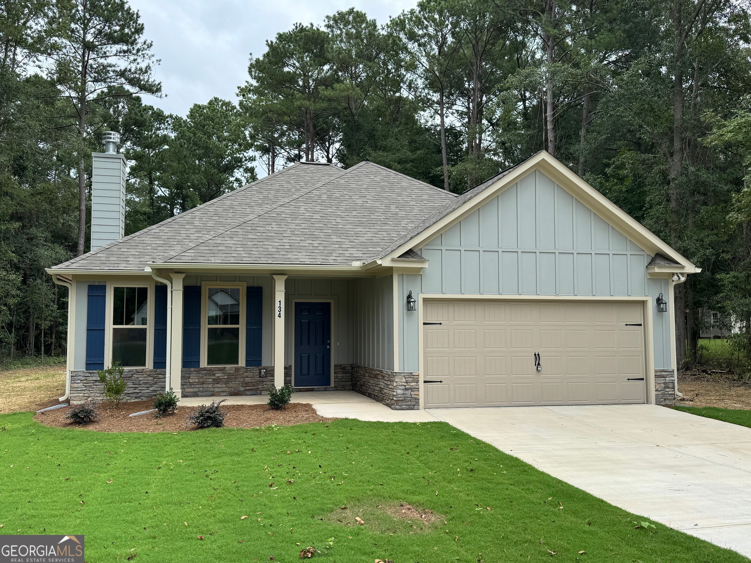 Jones County Schools with the convenience to Macon on a huge lot! $13,000 Incentive! Four Winds Constructions presents the Avalon plan - a spacious 3/2 Ranch with 2-car garage at an affordable price on a flat private lot! Walk in to the foyer with coat closet, spacious family room with stone wood burning fireplace, bright dining space and beautiful functional kitchen featuring granite countertops, gray shaker cabinets, stainless appliances, and SPC "wood" plank flooring, which is durable, waterproof and scratch resistant. Covered porch great for enjoying the outdoors. Primary bedroom has ensuite bathroom with dual vanity, separate shower, soaking tub and large walk-in closet, 2 additional bedrooms and full bathroom. Hardi board concrete siding and Architectural shingles. Huge private flat backyard.