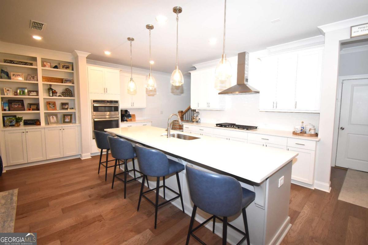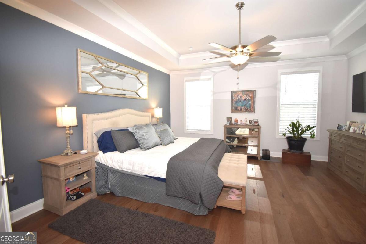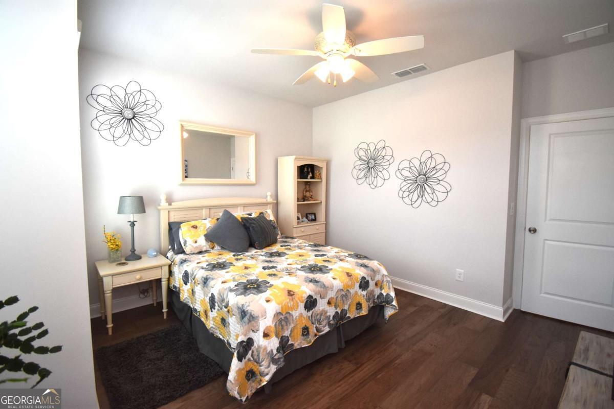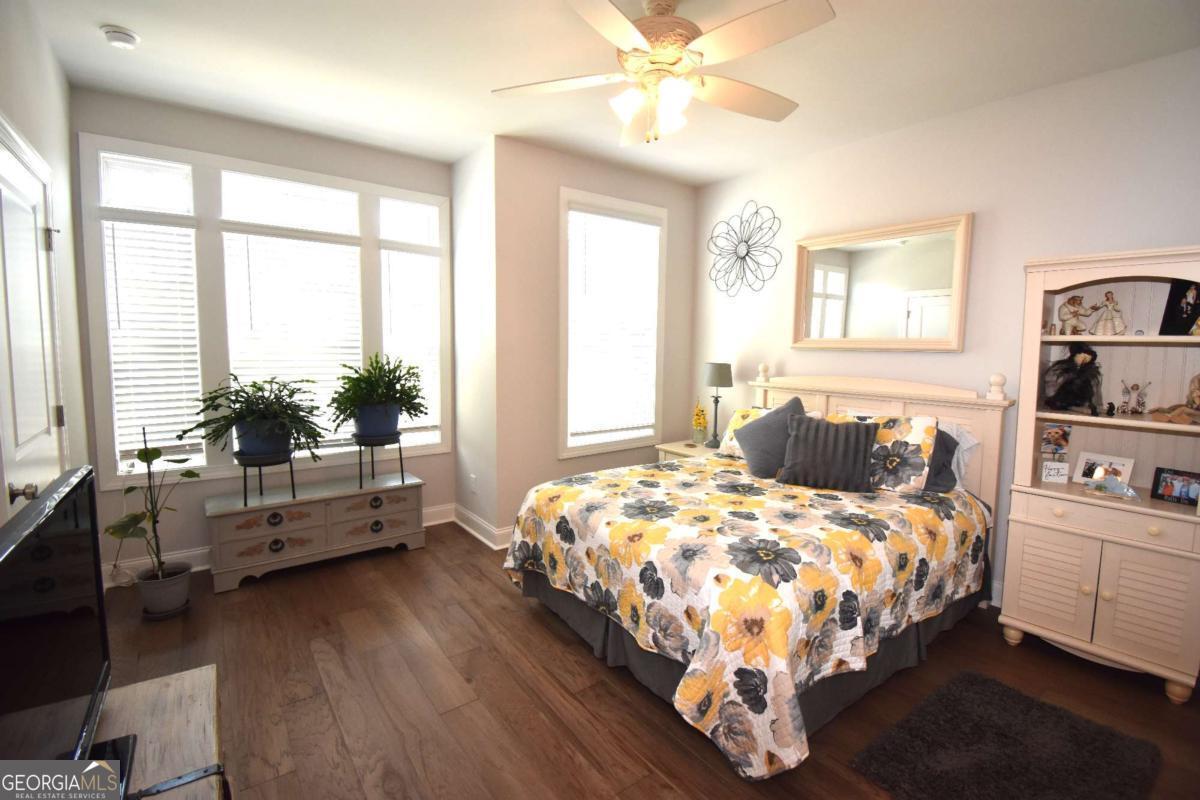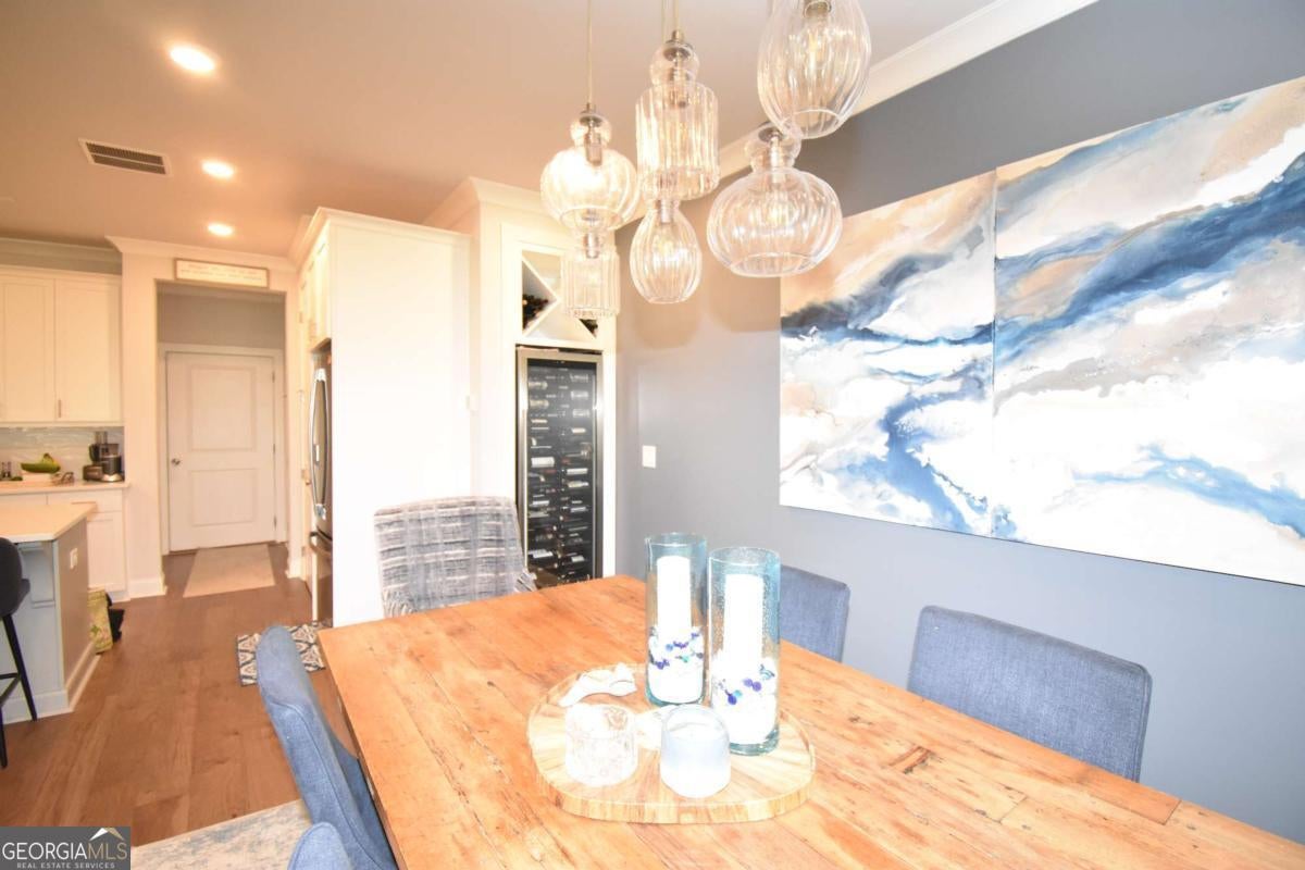 This beautiful townhome features the Ellington plan, boasting a main level entry and a driveway. Key features of this property include: a 2-car garage with additional parking in the driveway, linear fireplace, built-in wine fridge with a 155-bottle capacity, custom pantry, two custom closets, screened-in porch with sliders, shiplap entry foyer, window screens, epoxy garage floor, kitchen cabinet pullouts, built-in family room cabinets and shelving, separate tub and shower with bench in the primary suite, hardwood floors throughout, fenced-in yard, and preparation for a future elevator. The amenities package in the neighborhood is the best Peachtree Corners has to offer with 4 large green spaces, pool that backs to the river walk, pavilion that overlooks the river walk, pickleball courts, clubhouse and much more!! Walk along the river walk to the Chattahoochee! Gated community!! Here today and gone tomorrow, don't miss it!!