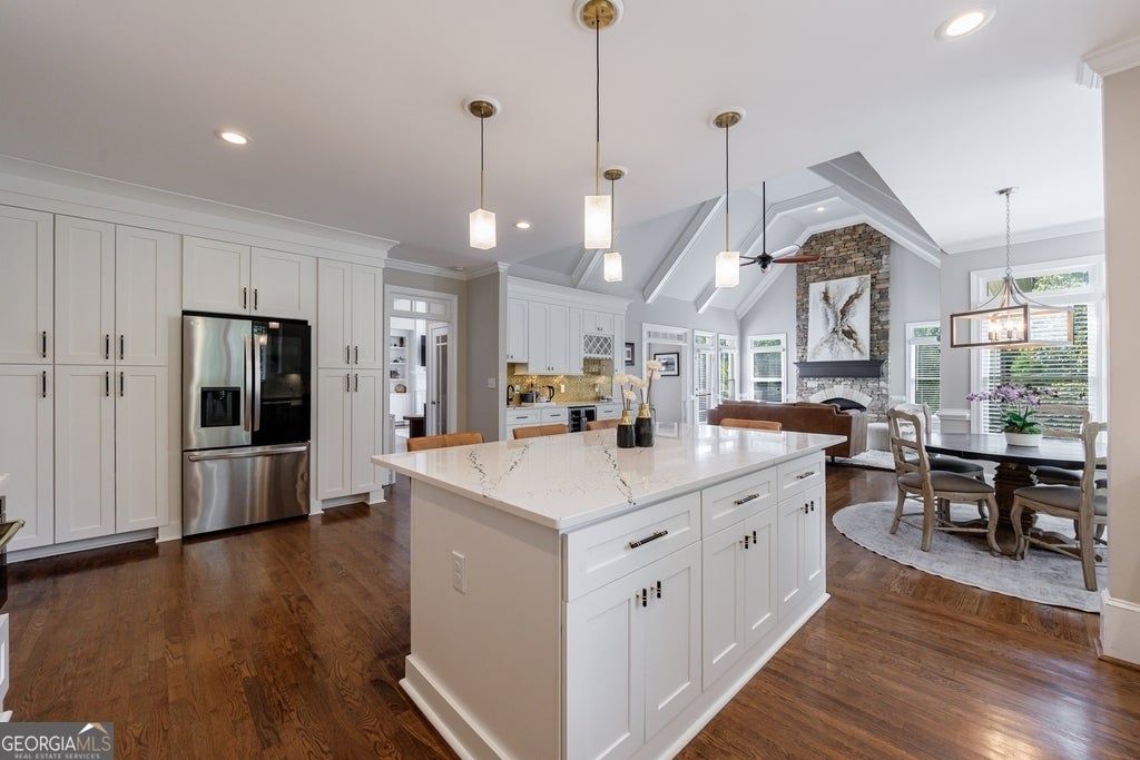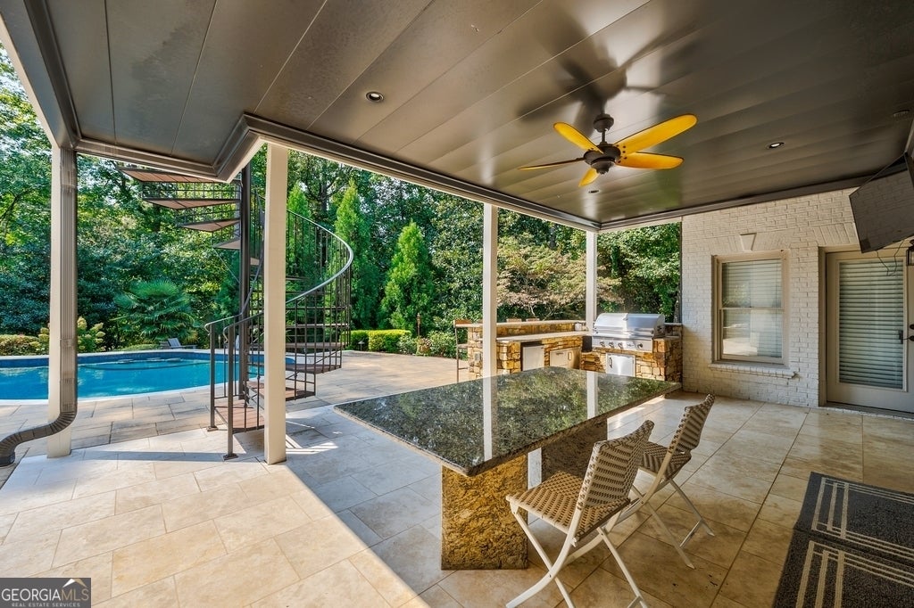 Nestled in the heart of East Cobb's most coveted enclave, this custom-built masterpiece awaits, offering an unparalleled blend of sophistication, comfort, and resort-style luxury. Step inside to soaring ceilings, gleaming hardwood floors, and an abundance of natural light, which create an atmosphere of timeless elegance. The expansive main-level primary suite is a true sanctuary, featuring a cozy fireside sitting area and a newly renovated spa-inspired bathroom with high-end finishes. The heart of the home, a state-of-the-art gourmet kitchen, is a culinary dream, showcasing dazzling Inverness Platinum Cambria Quartz countertops, sleek black Zline appliances, and custom cabinetry designed for both style and functionality. This nearly 6,500-square-foot, stunning 6-bedroom, 5.5-bath home features an upgraded 3-car garage with freshly finished epoxy floors, insulated doors, state-of-the-art openers, and a convenient electric car charger. The professionally designed terrace level is a versatile haven ideal for multi-generational living or hosting unforgettable gatherings. This expansive space features a large living area, a versatile game room, an oversized bedroom or private office, and a second kitchen-perfect for an in-law suite or luxurious guest apartment. Multiple walkout doors seamlessly connect to the backyard, a private resort-style oasis that redefines outdoor living. Jump into the sparkling PebbleSheen heated pool, unwind in the bubbling spa, or marvel at the cascading waterfall. Entertain in style with a sleek outdoor kitchen and bar, complete with a built-in gas grill, or gather around the inviting gas fire pit. The custom oversized dining table, set on elegant travertine and paver decking, creates the perfect backdrop for al fresco dining under the stars. With thoughtful modern updates throughout, this extraordinary home effortlessly blends lavish luxury with everyday comfort and cutting-edge convenience. This is more than a home-it's a lifestyle, meticulously crafted to exceed every expectation. Please enjoy this virtual tour https://www.youtube.com/watch?v=SkGkpAyIyhY