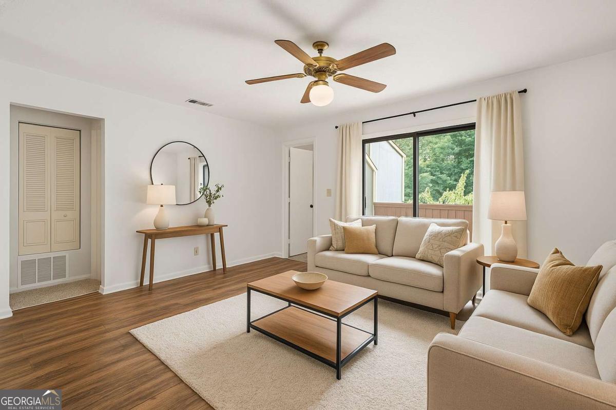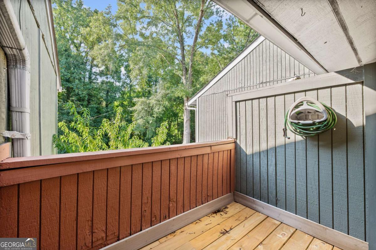 Back on the market! Buyers financing fell through - their loss is your gain! Tucked inside Woodlands, a quiet little gem in highly desirable Peachtree Corners, this 2 bedroom, 1 bath condo offers easy, comfortable living with useful updates in a convenient setting. You will appreciate the NEW interior paint and NEW flooring in 2023, a NEW bathroom vanity, a recently resurfaced deck, and all appliances - including the washer and dryer will remain with the home. The HOA covers exteriors, lawn care, trash, water, and termite service for more worry free living, and the community includes a pool for residents. Everyday errands are simple with Publix, Aldi, Target, and Trader Joe's close by, plus loads of restaurants, Peachtree Corners Town Center, and The Forum, recently remodeled and expanding with more shops and dining. Outdoor time is easy at Jones Bridge Park and Simpsonwood Park with trails and river views. Commuting is a breeze with quick connections to Peachtree Industrial Boulevard, Peachtree Parkway 141, I-285 just outside the Perimeter, I-85, and GA-400.