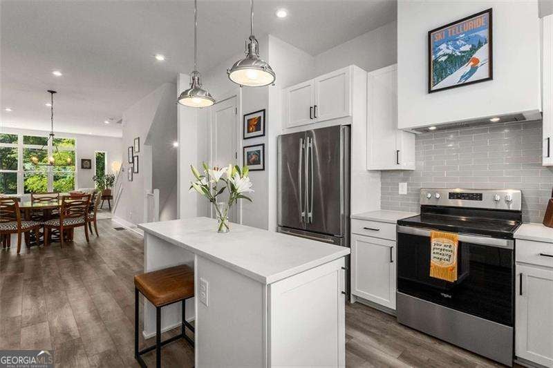 Modern Living in the Heart of East Atlanta Village! Just steps from the vibrant core of East Atlanta Village, this stylish contemporary townhome places you in one of Atlanta's most energetic and walkable neighborhoods-surrounded by beloved local restaurants, shops, and the weekly farmers market. Inside, sleek modern design meets effortless functionality. Soaring ceilings and oversized windows fill every space with natural light, while thoughtful finishes add a refined touch throughout. The entry level features a flexible bonus room-perfect as a home office, playroom, or potential 3rd bedroom-plus a convenient closet and foyer. Upstairs, the open-concept main floor is bright and inviting, ideal for both entertaining and everyday living. The showstopping kitchen boasts Quartz countertops, custom cabinetry, stainless steel appliances, a statement tile backsplash, built-in coffee bar, expansive island, and a full wall of windows that feels like art. A chic powder room completes the main floor. Upstairs, retreat to the sunlit primary suite with a spa-like ensuite bath featuring dual vanities and a frameless glass-tiled shower. A spacious secondary bedroom and full bath provide the perfect setup for guests, family, or a roommate. The crown jewel? Your private rooftop terrace-an outdoor oasis for grilling, lounging, or soaking in the skyline views year-round. A rare tandem two-car garage offers generous parking and storage-an exceptional find in this coveted area. Enjoy walkable access to Bellwood Coffee, Argosy, Banshee, Brownwood Park & Tennis Courts, and more. Plus, you're just minutes from the Southside BeltLine, connecting you to Inman Park, Grant Park, Midtown, and beyond. Don't miss this opportunity to own a turn-key, design-forward home in one of Atlanta's hottest neighborhoods. Welcome to vibrant living in EAV!