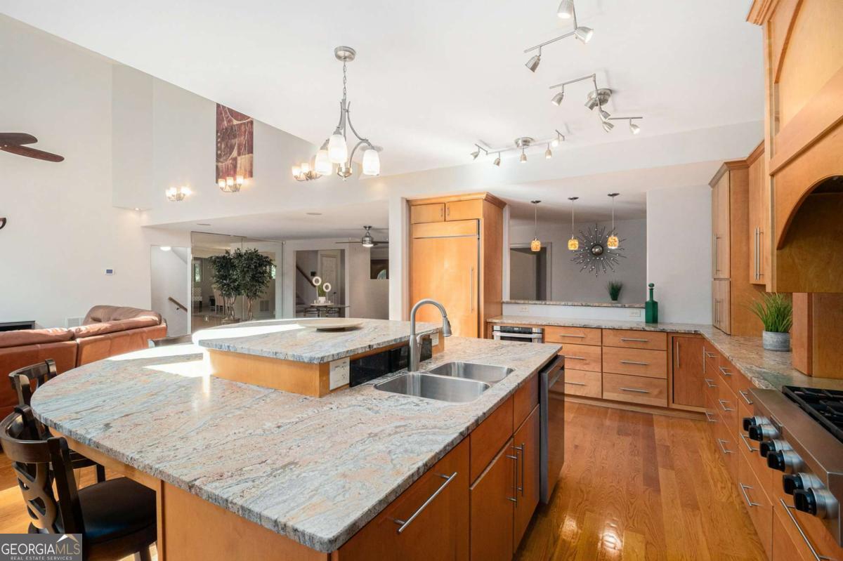 This exceptional estate features two homes on a private, expansive lot with resort-style amenities and unmatched privacy. Ideal for multi-generational living or investment, the second residence offers perfect Airbnb or rental income potential. The main home boasts soaring windows, hardwood floors, and elegant finishes. An impressive kitchen with stone counters and expansive island opens to a bright solarium and pool deck for seamless indoor-outdoor living. The luxurious owner's suite includes a private balcony, double shower, steam bath, and dual walk-in closets. The lower level offers a theater, bar, billiard room, and spa area with sauna-perfect for entertaining or relaxing. Accessibility is a priority, with wide doors, hallways, and an elevator serving all three floors, including the full guest suite with kitchenette and multiple en suites. Outdoors, the stunning gunite pool and waterfall hot tub are surrounded by decking and balconies, set amid lush, private landscaping. A four-car garage, workshop, and custom paved driveway complete this unique estate blending luxury, privacy, and income potential.