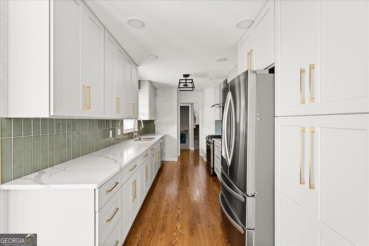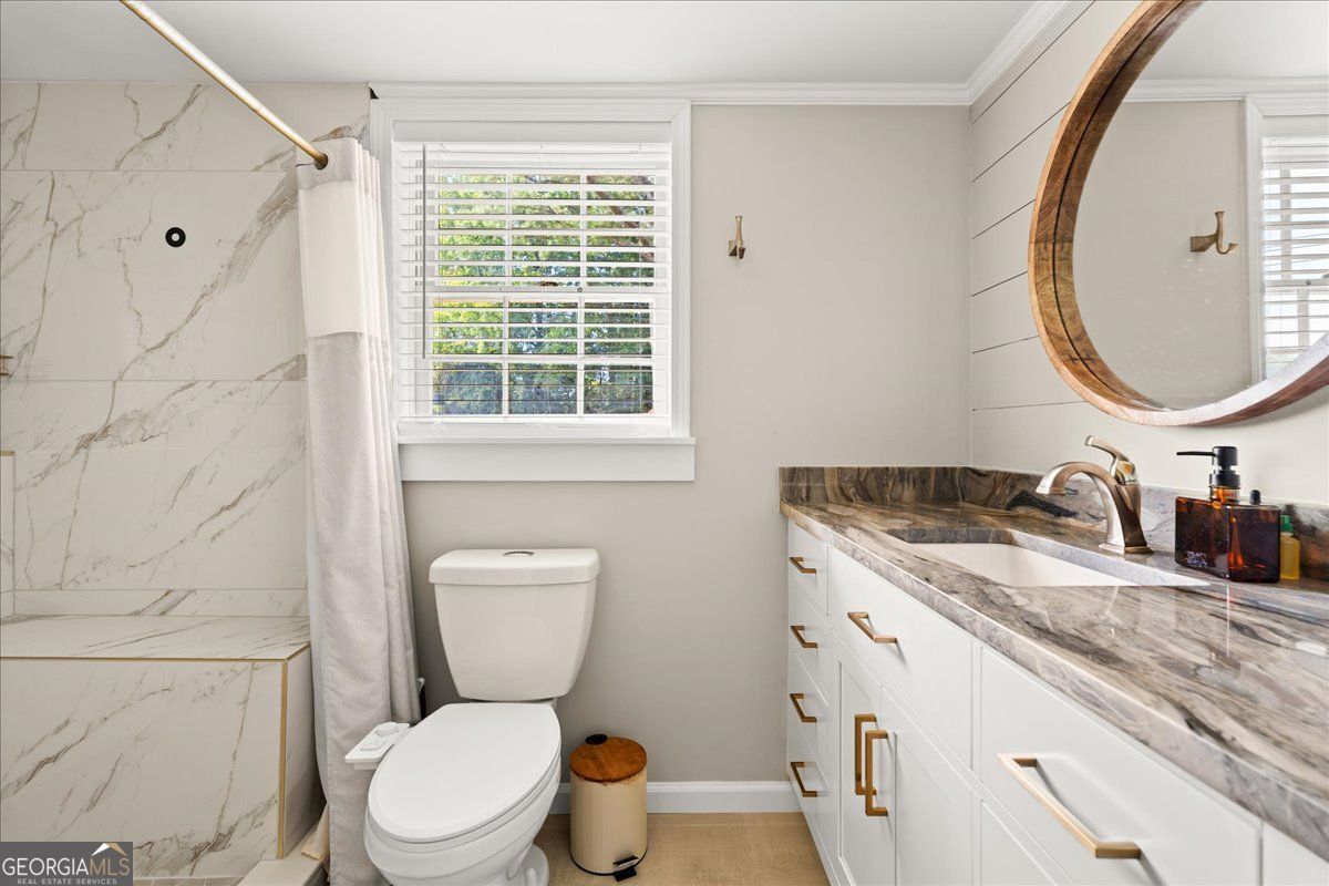 MOTIVATED SELLER WILLING TO CONSIDER CONTRIBUTIONS TO CLOSING COST OR A RATE BUYDOWN. Step into modern elegance with this beautifully renovated 4-bedroom, 2-bathroom home perfectly situated on an expansive corner lot in Marietta. Every inch of this residence has been thoughtfully designed to blend high-end finishes with flexible living spaces for today's lifestyle. At the heart of the home, the chef-inspired kitchen showcases Cambria Calcetta Lombrea quartzite countertops, LG ThinQ smart appliances, and an open layout ideal for cooking and entertaining. The living areas are enhanced by red oak hardwood flooring, stylish lighting, and designer details that bring warmth and sophistication to every room. Retreat to the luxurious bathrooms featuring carbon steel leather-texture quartz, Gold Fusion marble, and porcelain tile-creating spa-like spaces with timeless appeal. A versatile bonus room offers endless possibilities as a home office, media room, or potential fifth bedroom. The detached 2-car garage with 220-amp power and propane system provides exceptional flexibility-ideal for a workshop, studio, or conversion into a private guest house. Outdoor living takes center stage with a castle-inspired gazebo, fenced yard perfect for a garden or pet area, and a new irrigation system that keeps everything lush and green. Located minutes from The Avenues West Cobb, Marietta Square, Kennesaw Mountain State Park, and Dallas Highway, this home offers effortless access to dining, shopping, and recreation. With its rare combination of craftsmanship, functionality, and location, this Marietta residence is a true standout.