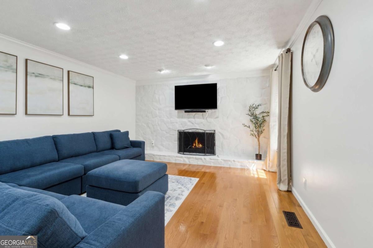 Welcome to this beautifully maintained four-bedroom, two-and-a-half-bath home in East Cobb, where thoughtful updates meet timeless comfort. Move-in ready and filled with flexible living spaces, it offers the perfect backdrop for everyday living and effortless entertaining. Inside, the traditional front living room has been enhanced with wall-to-wall custom built-ins, creating an ideal home office or library. The eat-in kitchen provides exceptional storage with abundant cabinetry and a spacious pantry, and it flows seamlessly into a light-filled sunroom. Just beyond, the family room features a striking stone fireplace and direct access to the screened-in porch-perfect for year-round enjoyment with views of the expansive backyard and oversized lot. Upstairs, the oversized primary suite includes a walk-in closet and dual vanity. Three additional generous bedrooms and a convenient laundry closet complete the second level. The home also offers abundant storage in the basement along with a two-car garage. Multiple outdoor living spaces make this property truly special, including a charming rocking-chair front porch, the sunroom off the kitchen, a screened-in porch, and a back patio ideal for entertaining. Recent updates include a new roof, HVAC system, water heater, siding, fresh interior and exterior paint, a fully renovated powder room, and new carpet upstairs-providing peace of mind and true move-in readiness. Nestled in the established Piedmont Forest community, this home offers the best of East Cobb living with top-rated schools, parks, everyday conveniences nearby, and easy access to I-75 and I-575.