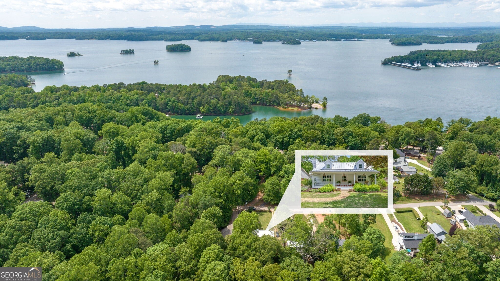 Welcome to this beautifully renovated Lake Lanier home, a rare combination of timeless charm and upscale designer finishes, complete with a single-slip deep water dock conveniently located near South Lake Lanier attractions & dining. From the moment you approach the home, Serena and Lily front porch lighting greets you and sets a precedent for the designer lighting package found throughout. Step inside to discover the character and upgrades around every corner, off the entry way find the dining room and continue to the kitchen that is open to the sitting room, spacious enough to accommodate a kitchen table and a living room amongst the wall of windows and French doors, flooding the room with natural light. The kitchen offers white cabinetry and floating shelves for convenience and storage, in addition to the pantry. The island is the perfect size for a chef's workspace. The back deck off the kitchen invites you to enjoy the private backyard setting. Additionally on the main level, you will find a bedroom that can serve as a study or media room with built ins and a fireplace, and a full bathroom updated to reflect the character and charm found throughout the home with a claw foot tub and designer lighting. Upstairs has been reimagined and renovated to feature two more bedrooms, each with private en-suites. The master suite to the right of the landing is spacious and features window bench seating. The en-suite is adorned in Restoration Hardware finishes and upgrades, including the clawfoot tub with both tub and shower fixtures and double vanity, framed in with windows overlooking the backyard. The additional upstairs bedroom suite is across the landing and offers size and ample natural light, with an en-suite that has built in storage and shelving, and a custom tiled shower. The terrace level was thoughtfully crafted and renovated with guests and entertaining in mind. Blue stone tile flooring is found throughout the entire level and continues to the back patio for a seamless blend into outdoor living space, highlighted by an expansive wall of four sets of French doors. Versatility and function throughout every inch of the terrace level, find space to accommodate a living room, dining room, and more all while accommodating guest sleeping quarters with a built-in twin-size bunk and a pull-down Queen-size Murphy bed. Pre-wired for Dolby 5.1 surround sound, everything has been considered. The full bathroom showcases a walk-in floor to ceiling tiled shower. The hidden storage closet is craft-fully tucked behind a bookcase. The finishes and craftsmanship go beyond aesthetics, with updated and replaced exterior cypress hardwood siding, insulation, and windows, along with the addition of the metal roof. Outside, the grounds have been masterfully re-landscaped with a stone wall, privacy fencing, pea gravel driveway, irrigation system. Amongst the lush Zeon Zoysia turf, find numerous established blooming plants and blossoms. The footprint allows and has been thought-out for future expansion, with space reserved for a garage or carport and a potential three-story addition. The deep water dock is equipped with electrical and pre-wired for path lighting, in addition to water connection. The single slip with a party deck provides space to dine and entertain while enjoying the view to open water. The cove position is ideal, with deep water and protection from boat traffic, yet close to open water. With Lake Lanier access at your back door, there's no shortage of activities, just a short boat ride to Aqualand Marina/Pigtails Restaurant, and easy access to other marinas, dining, and Lake Lanier Islands/Margaritaville. By car, approximately 3 miles from downtown Flowery Branch with shopping and dining.