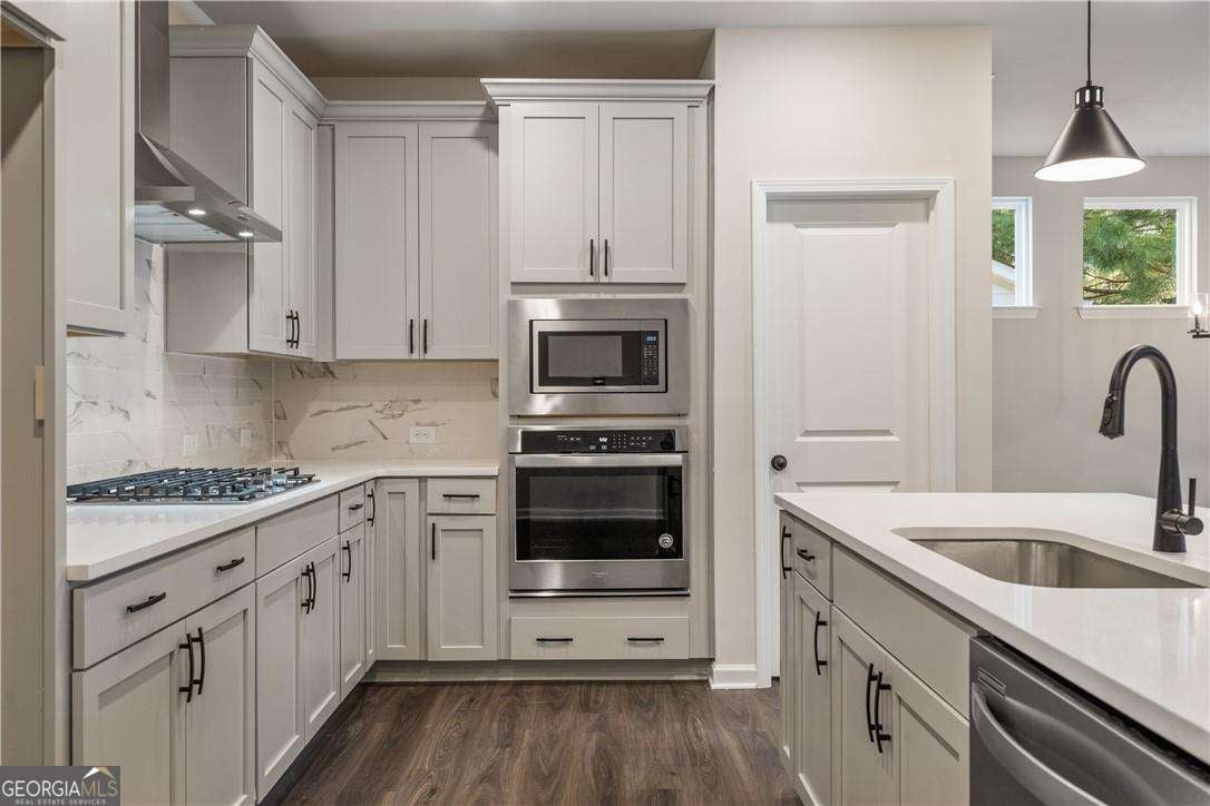 - AppliancesCooktop, Dishwasher, Disposal, Double Oven, Gas Water Heater, Microwave, Oven (Wall)