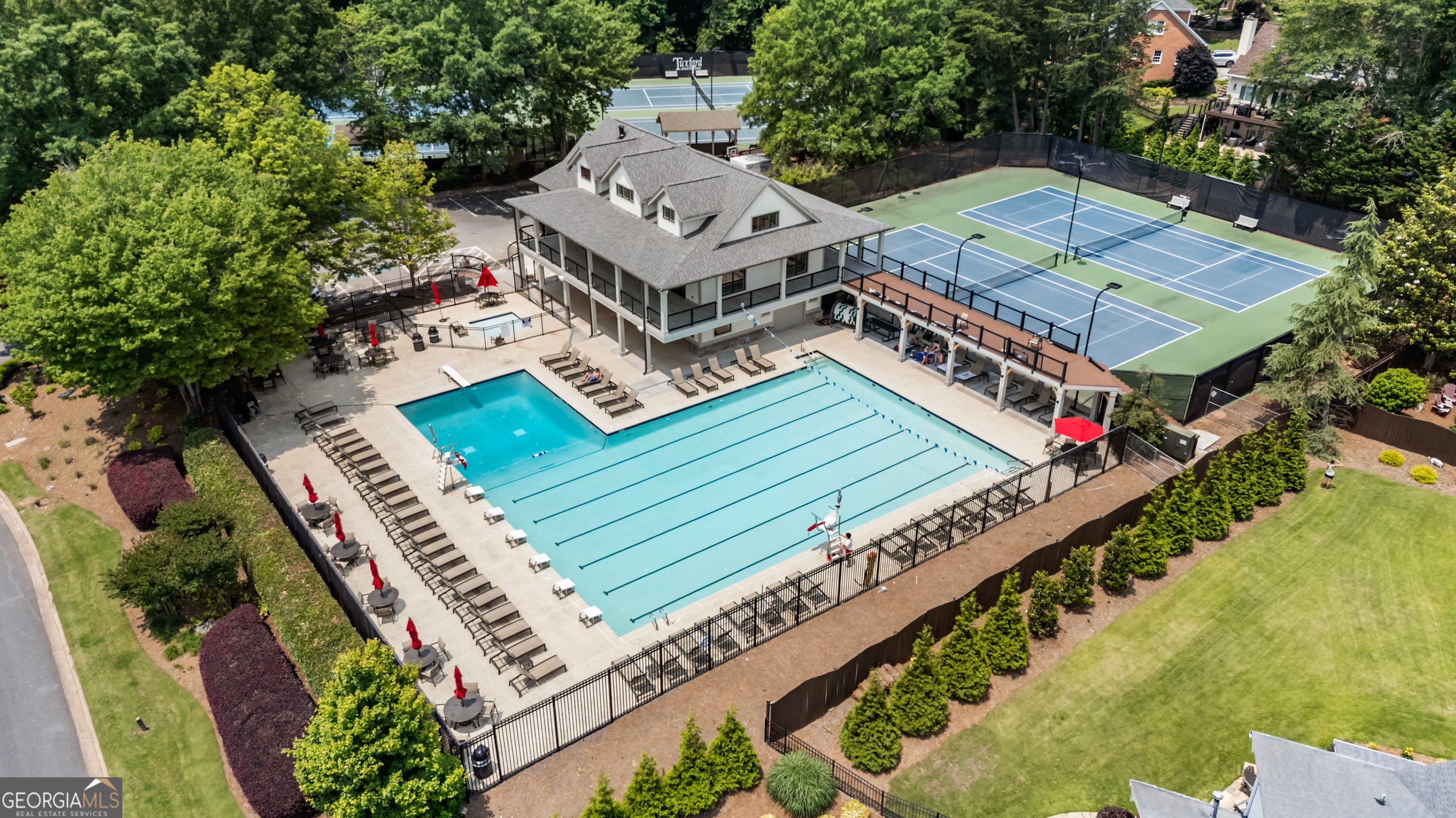Nestled in the heart of Tuxford-one of Alpharetta's most sought-after swim and tennis communities-10530 Tuxford Drive blends classic charm with modern upgrades and everyday functionality. With 6 beds, 4 full baths, and a fully finished terrace level, this beautifully maintained home provides plenty of space to live, entertain, and grow in a vibrant, family-friendly neighborhood. From the welcoming front porch and flat, manicured lawn to the timeless exterior, this home delivers instant curb appeal. Inside, you're greeted by a soaring 2-story foyer and gleaming hardwood floors that flow throughout the main level. The layout is both elegant and practical, featuring a formal living room, a spacious dining room, and a fireside family room with vaulted ceilings and a stunning floor-to-ceiling brick fireplace. The kitchen is thoughtfully designed for both style and function-offering abundant cabinet space, granite countertops, double ovens, a centrally located gas cooktop, and casual bar seating. The sunlit breakfast room, framed by large windows, is the perfect spot to enjoy your morning coffee while overlooking the peaceful backyard. Upstairs, the oversized primary suite is a true retreat with tray ceilings, a walk-in closet, and a spa-inspired bath ensuite complete with dual vanities, soaking tub, and separate shower. Secondary bedrooms are spacious and bright-ideal for family, guests, or flexible use as home offices or playrooms. The finished basement adds incredible value and versatility, featuring a second fireplace, guest suite, large media or recreation area, and walk-out access to a covered patio and level backyard-perfect for entertaining, playtime, or relaxing in the shade. This home has been meticulously maintained! Tuxford isn't just a neighborhood-it's a community. Residents enjoy a calendar full of social events, a competitive and well-loved swim team, active tennis leagues, and clubs for all ages. Top-rated schools, close proximity to Avalon, North Point, downtown Alpharetta, and easy access to GA-400 make this location unbeatable. Whether you're looking for more space, move-in ready comfort, or a sense of connection and community-10530 Tuxford Drive is ready to welcome you home! UPGRADES INCLUDE: NEWER ROOF (2021); NEWER HOT WATER HEATER (2021); NEWER HVAC UNITS (2018; 2023); NEW DECKING (2025); FRESH INTERIOR PAINT (2025); KITCHEN CABINETS REPAINTED (2024); NEW LIGHTING & HARDWARE THROUGHOUT (2024); and NEW CARPET IN BASEMENT (2025).