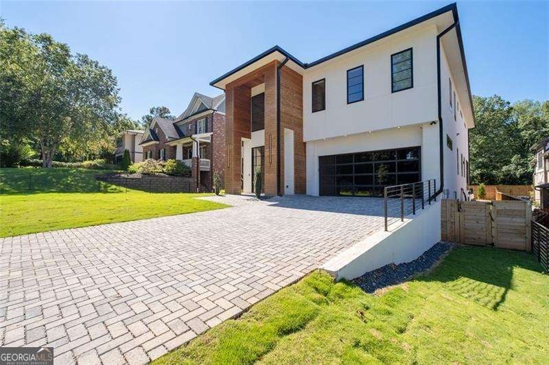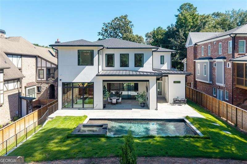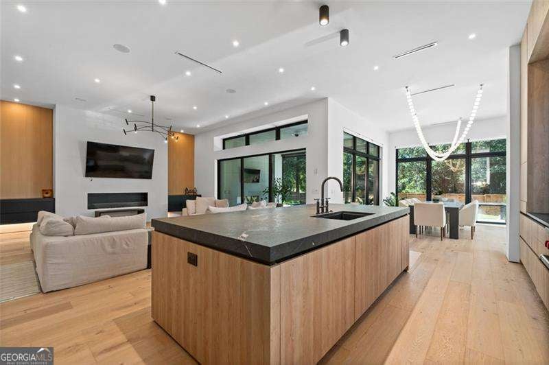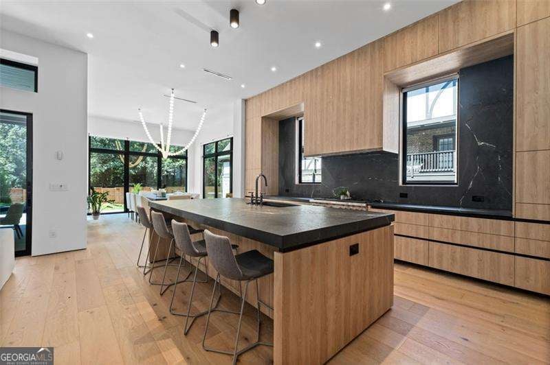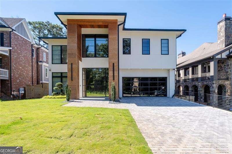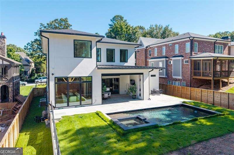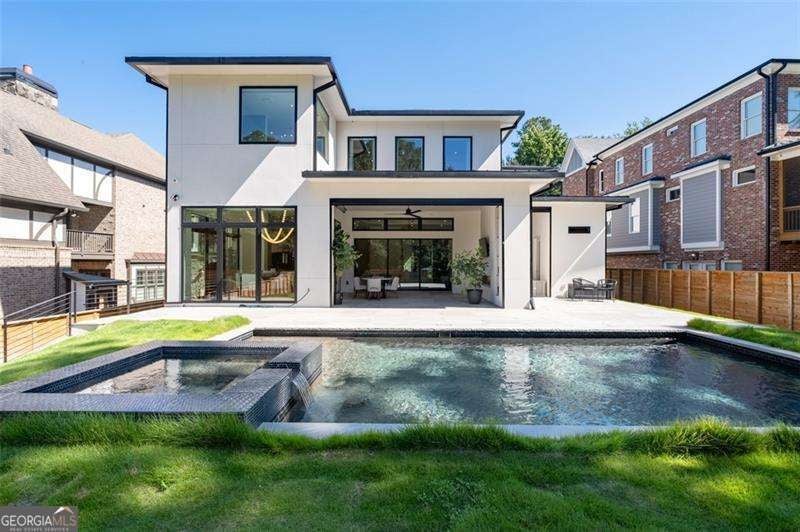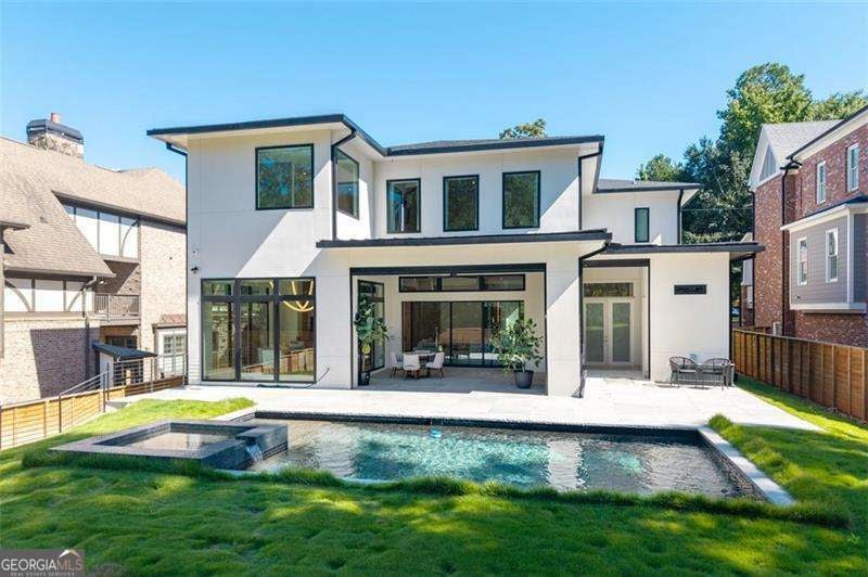 Experience the pinnacle of modern luxury in this I & G Builders architectural masterpiece featuring 5 bedrooms and 5.5 baths. Walls of glass invite in an abundance of natural light, seamlessly blending indoor and outdoor living while showcasing clean lines and refined design. The chef's kitchen boasts custom cabinetry, professional-grade appliances, and an oversized leathered soapstone island crafted for both function and style. Expansive living and dining spaces flow effortlessly, perfect for grand entertaining or intimate gatherings. Each bedroom offers a private en-suite retreat, with the primary suite serving as a sanctuary complete with a spa-inspired bath and boutique-style dressing room. Outside, a resort-caliber pool is framed by sleek terraces and lush landscaping, creating an idyllic setting for relaxation. Every detail of this residence exudes sophistication, offering a lifestyle defined by elegance, comfort, and distinction.