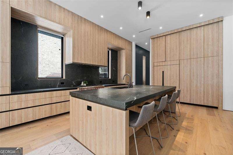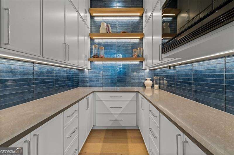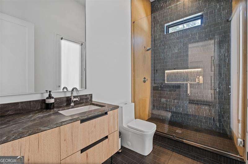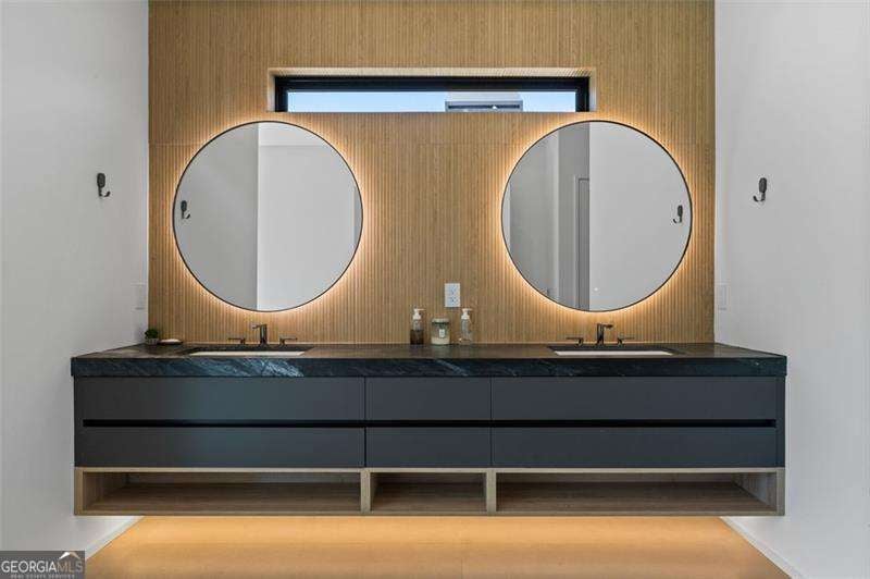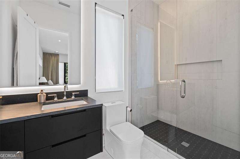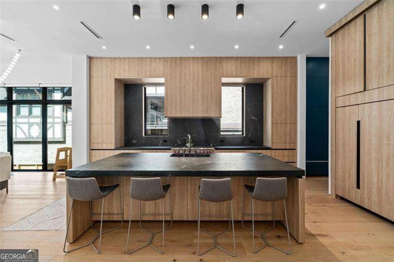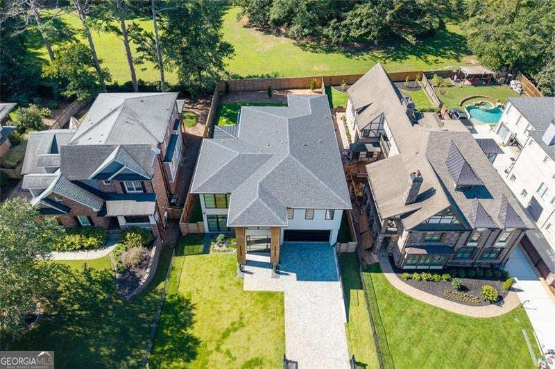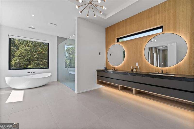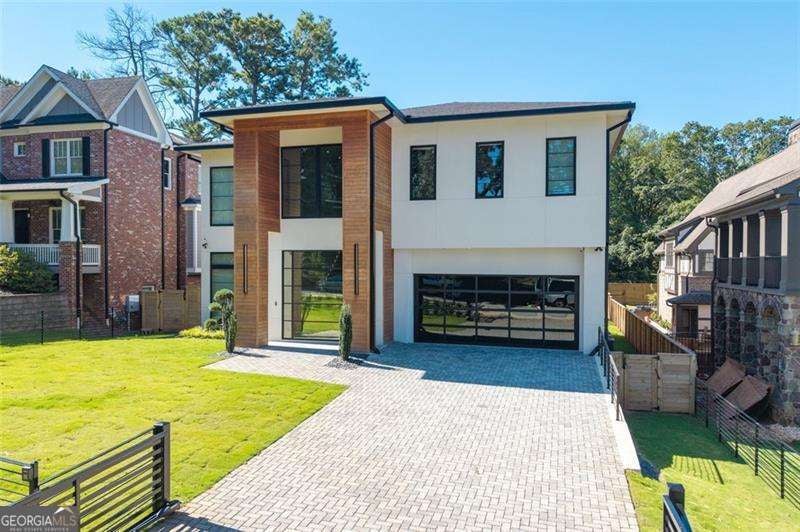 Experience the pinnacle of modern luxury in this I & G Builders architectural masterpiece featuring 5 bedrooms and 5.5 baths. Walls of glass invite in an abundance of natural light, seamlessly blending indoor and outdoor living while showcasing clean lines and refined design. The chef's kitchen boasts custom cabinetry, professional-grade appliances, and an oversized leathered soapstone island crafted for both function and style. Expansive living and dining spaces flow effortlessly, perfect for grand entertaining or intimate gatherings. Each bedroom offers a private en-suite retreat, with the primary suite serving as a sanctuary complete with a spa-inspired bath and boutique-style dressing room. Outside, a resort-caliber pool is framed by sleek terraces and lush landscaping, creating an idyllic setting for relaxation. Every detail of this residence exudes sophistication, offering a lifestyle defined by elegance, comfort, and distinction.