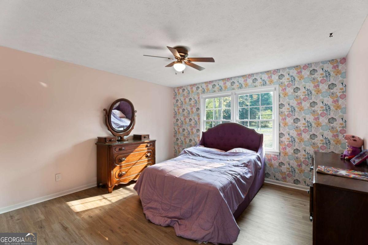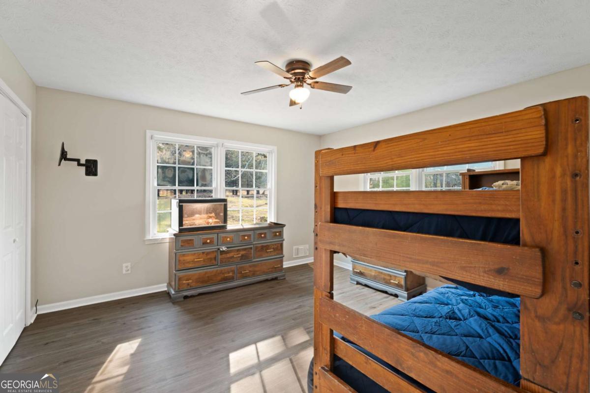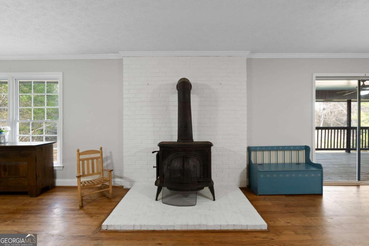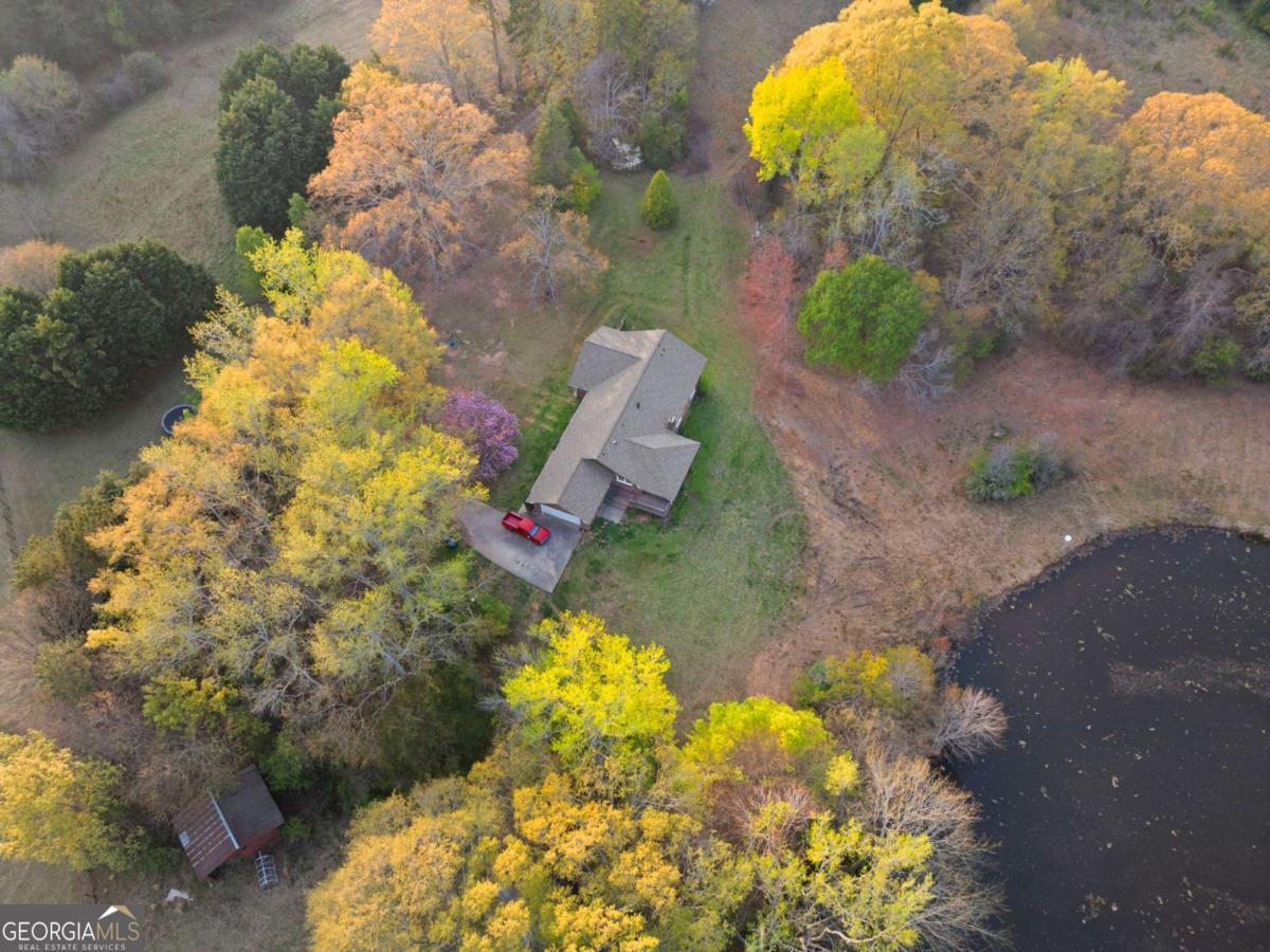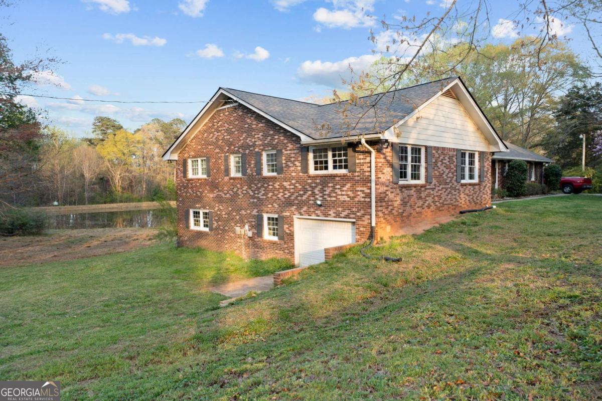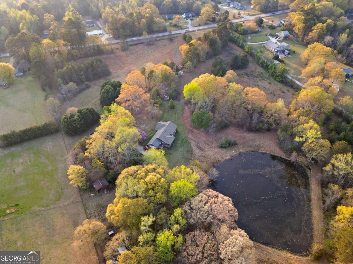 On the main level, you will find Hardwood flooring, fresh paint, and an inviting open-concept design. Wood-burning stove and an expansive covered back deck, where you can relax, entertain, and take in breathtaking views of the pond, the perfect spot for morning coffee or evening sunsets. The fully finished walk-out basement is perfect as a mother-in-law suite, guests, or rental opportunity. This includes a full bath, private bedroom, spacious living area, and stubbed for a kitchen. The boat door and workshop add even more functionality, making this the perfect home for hobbyists, car enthusiasts, and those who love extra storage! This property is a homesteaders dream! Huge chicken coup with brooding area, county water and well available, Spring-fed fishing pond, lush blueberry bushes, muscadine grapes, wild blackberries, and Pecan trees. Spacious goat pasture ideal for livestock or expanding your farmstead. And dont forget the neighbors horses playfully roaming right behind your barn, adding to the peaceful country charm. Plenty of space to roam, garden, and grow, you can truly live off the land while still being just minutes from grocery stores, coffee shops, and dining.