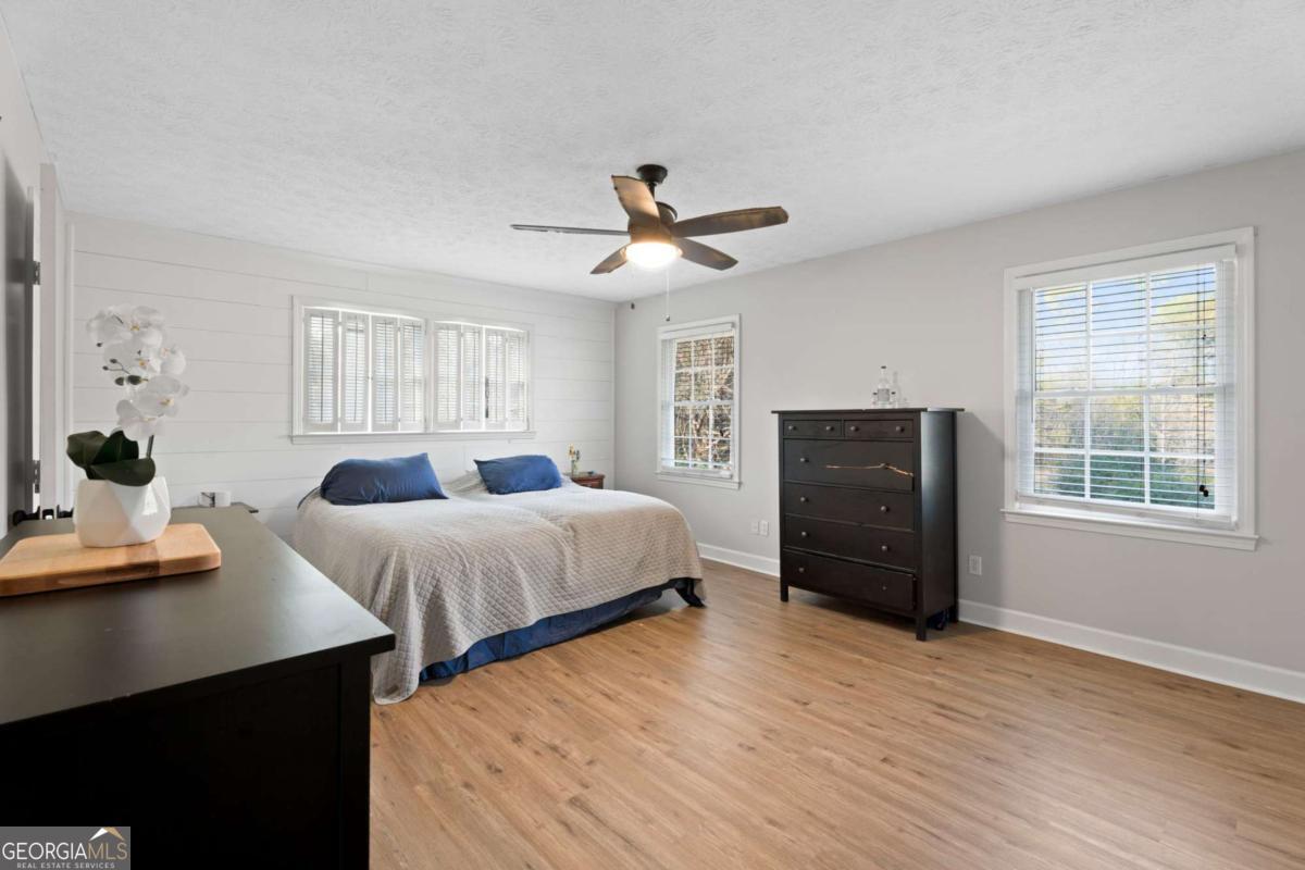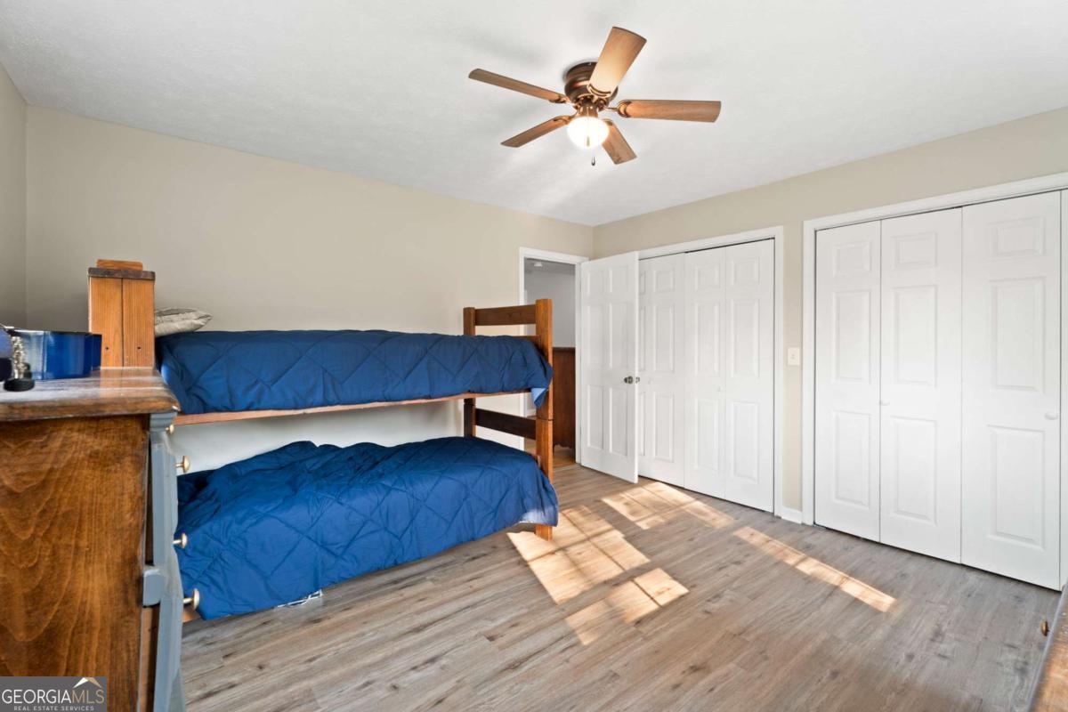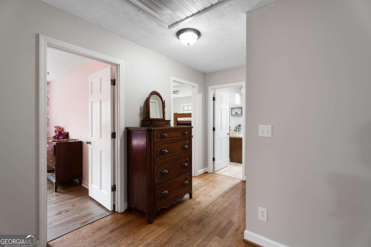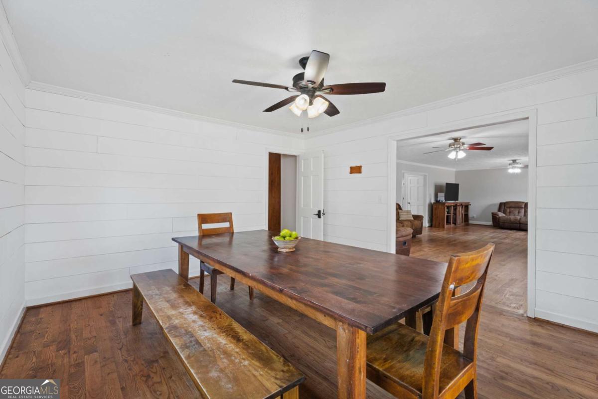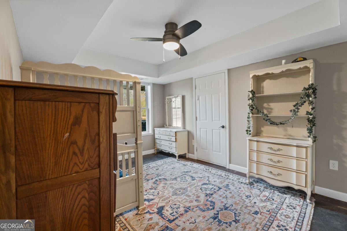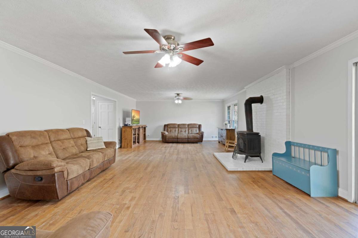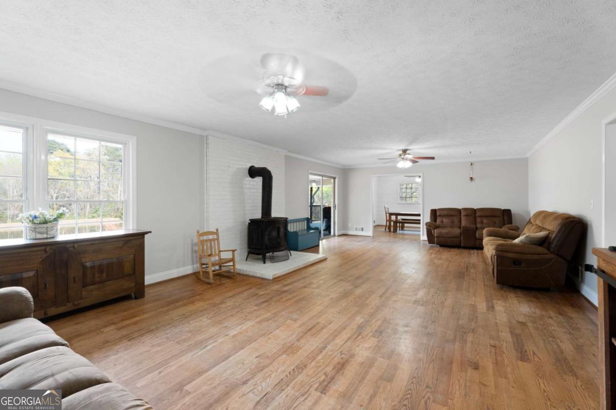 On the main level, you will find Hardwood flooring, fresh paint, and an inviting open-concept design. Wood-burning stove and an expansive covered back deck, where you can relax, entertain, and take in breathtaking views of the pond, the perfect spot for morning coffee or evening sunsets. The fully finished walk-out basement is perfect as a mother-in-law suite, guests, or rental opportunity. This includes a full bath, private bedroom, spacious living area, and stubbed for a kitchen. The boat door and workshop add even more functionality, making this the perfect home for hobbyists, car enthusiasts, and those who love extra storage! This property is a homesteaders dream! Huge chicken coup with brooding area, county water and well available, Spring-fed fishing pond, lush blueberry bushes, muscadine grapes, wild blackberries, and Pecan trees. Spacious goat pasture ideal for livestock or expanding your farmstead. And dont forget the neighbors horses playfully roaming right behind your barn, adding to the peaceful country charm. Plenty of space to roam, garden, and grow, you can truly live off the land while still being just minutes from grocery stores, coffee shops, and dining.